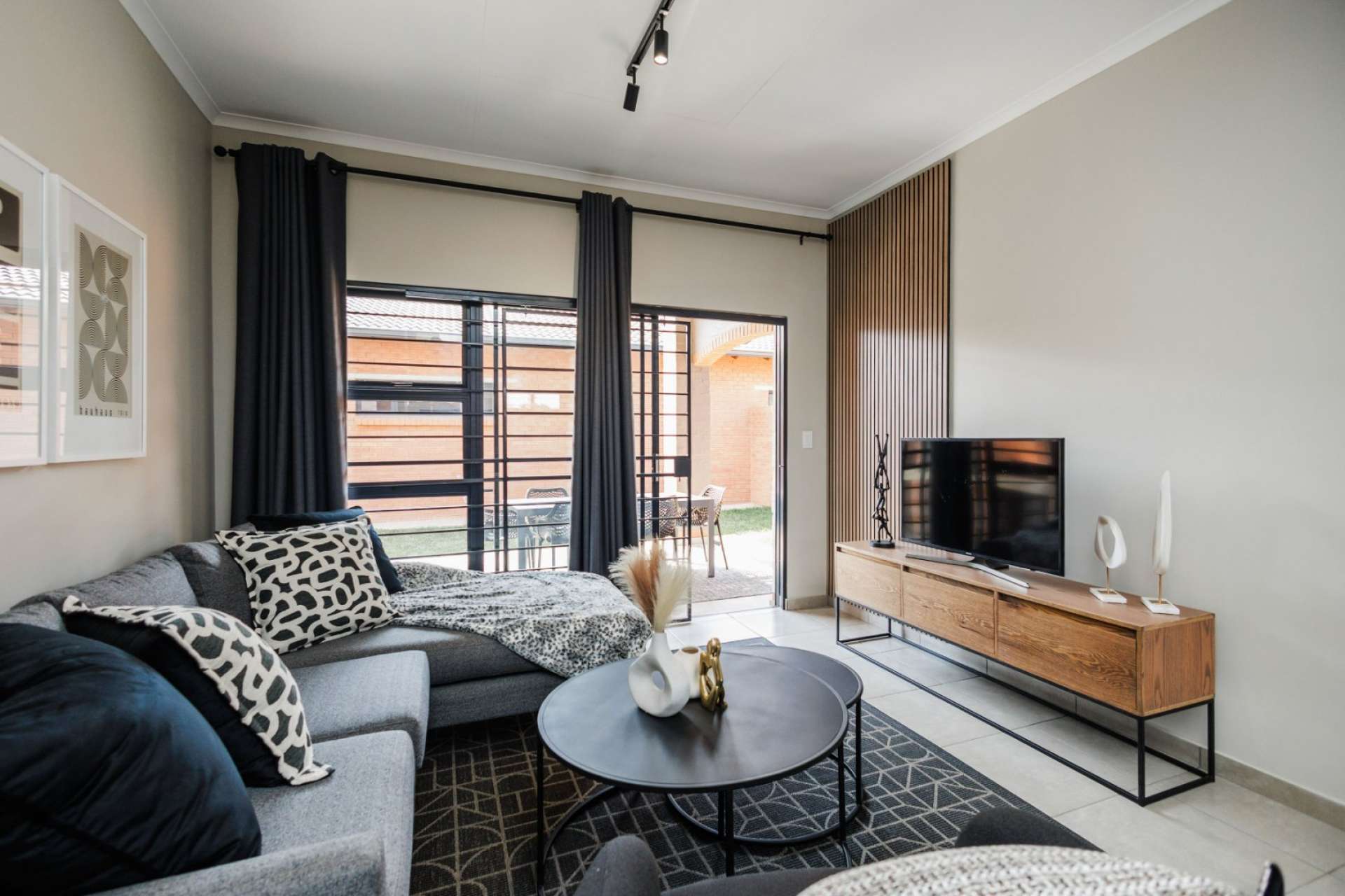 These homes feature open-plan kitchens with granite countertops, gas hobs, electric ovens, and premium fittings. Living areas open onto private patios with built-in braais and access to landscaped communal gardens.