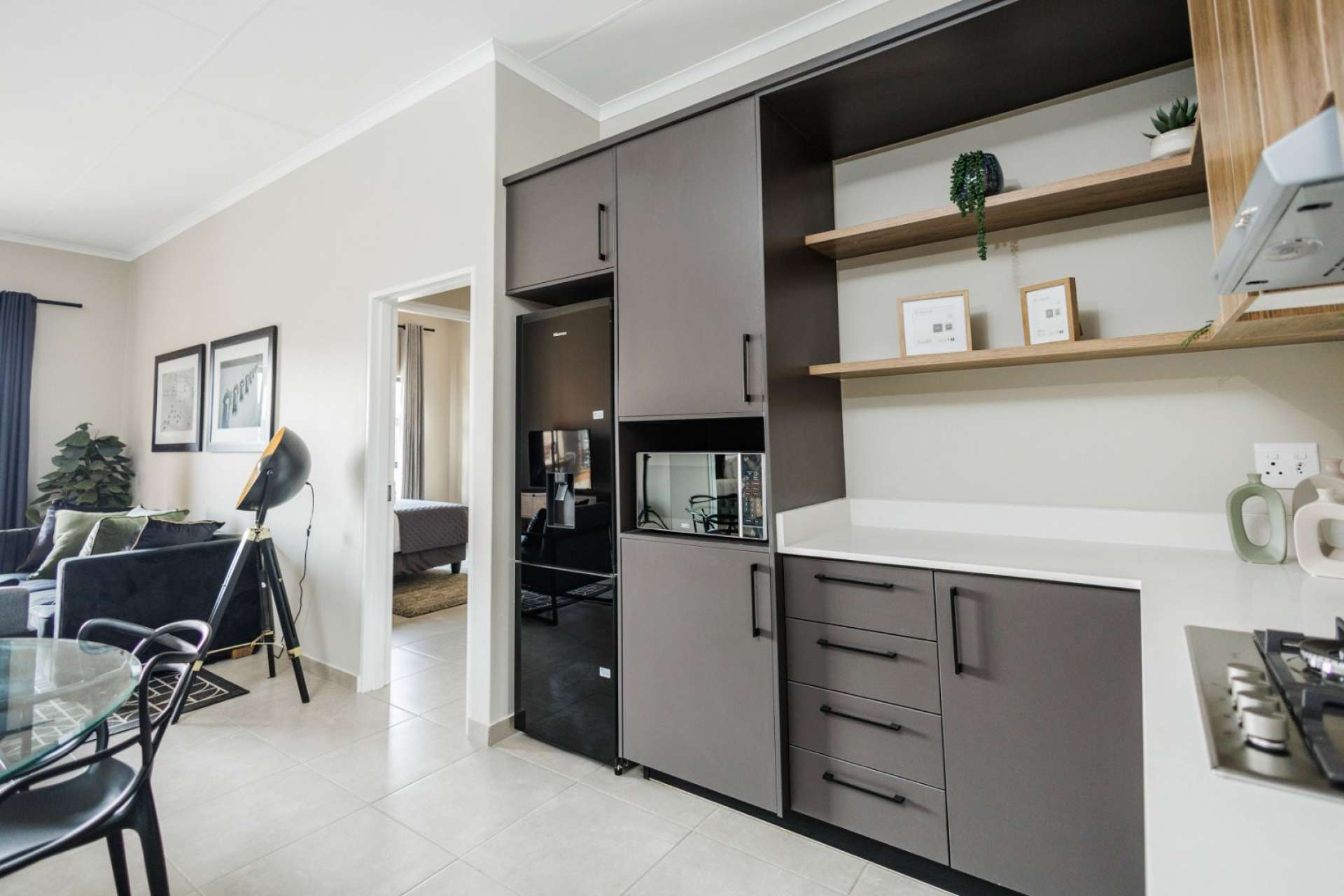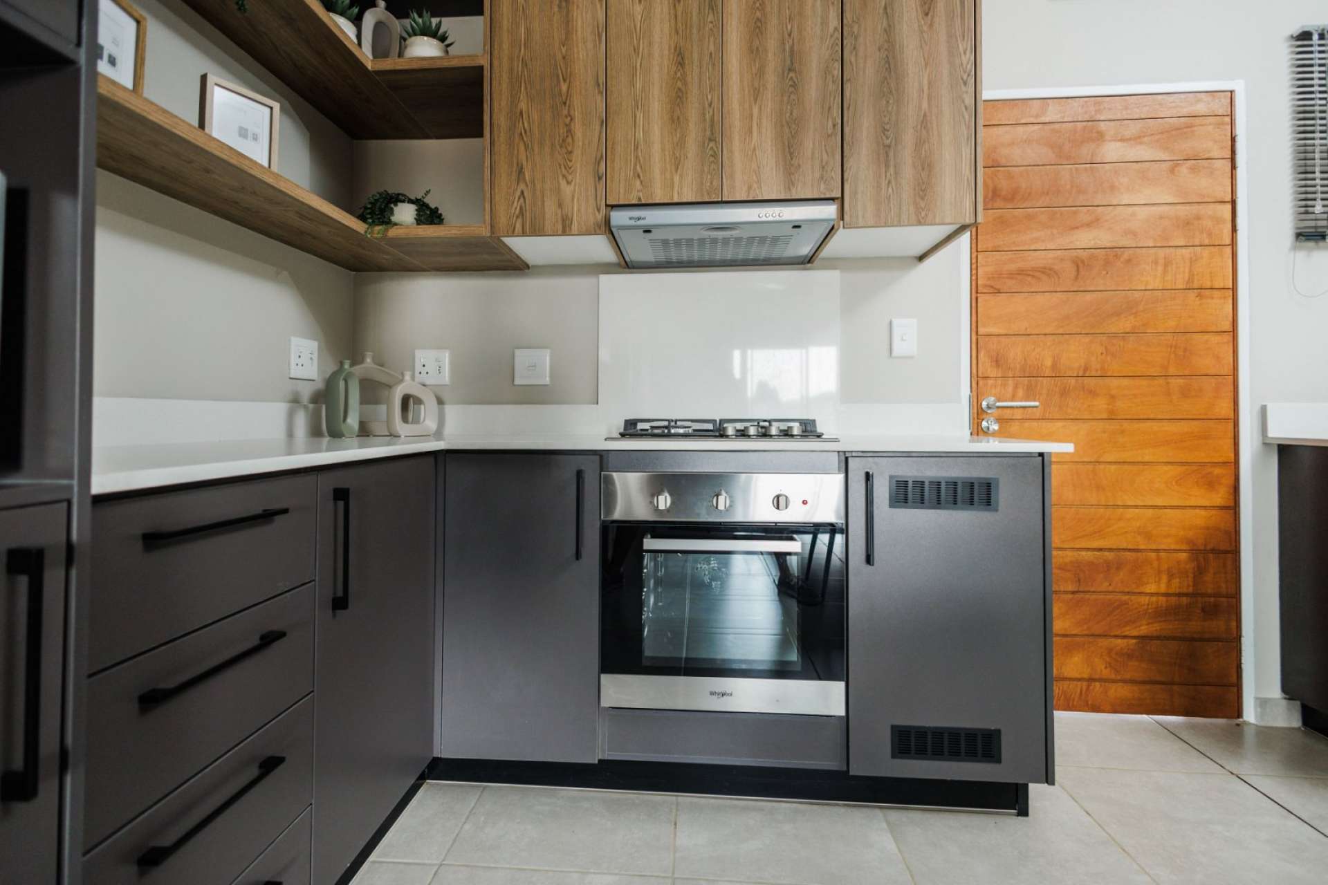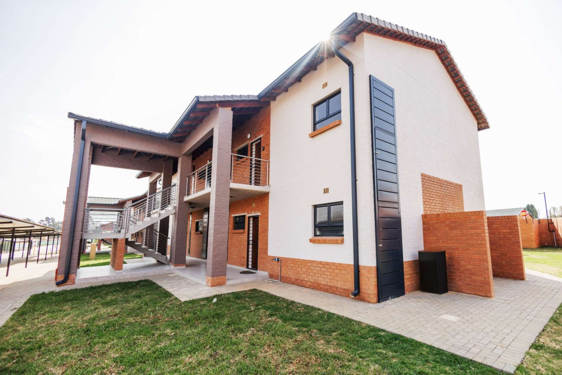 Each home features an open-plan kitchen with granite countertops, gas hob, electric oven, and quality finishes. Living spaces flow seamlessly onto private patios with built-in braais, overlooking landscaped communal gardens.