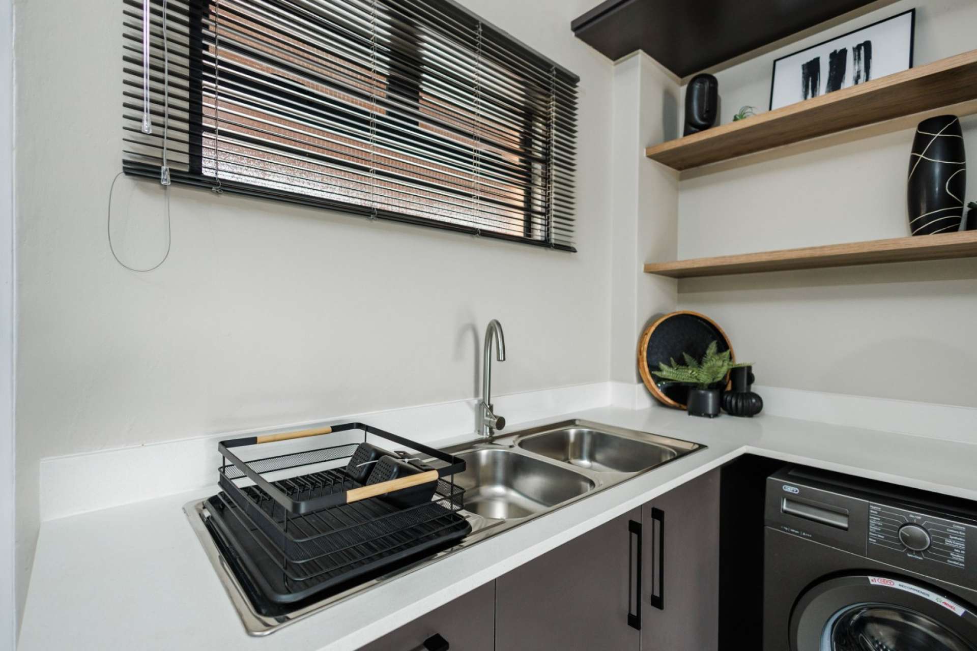 • Space for 3 appliances and single fridge with waterpoint