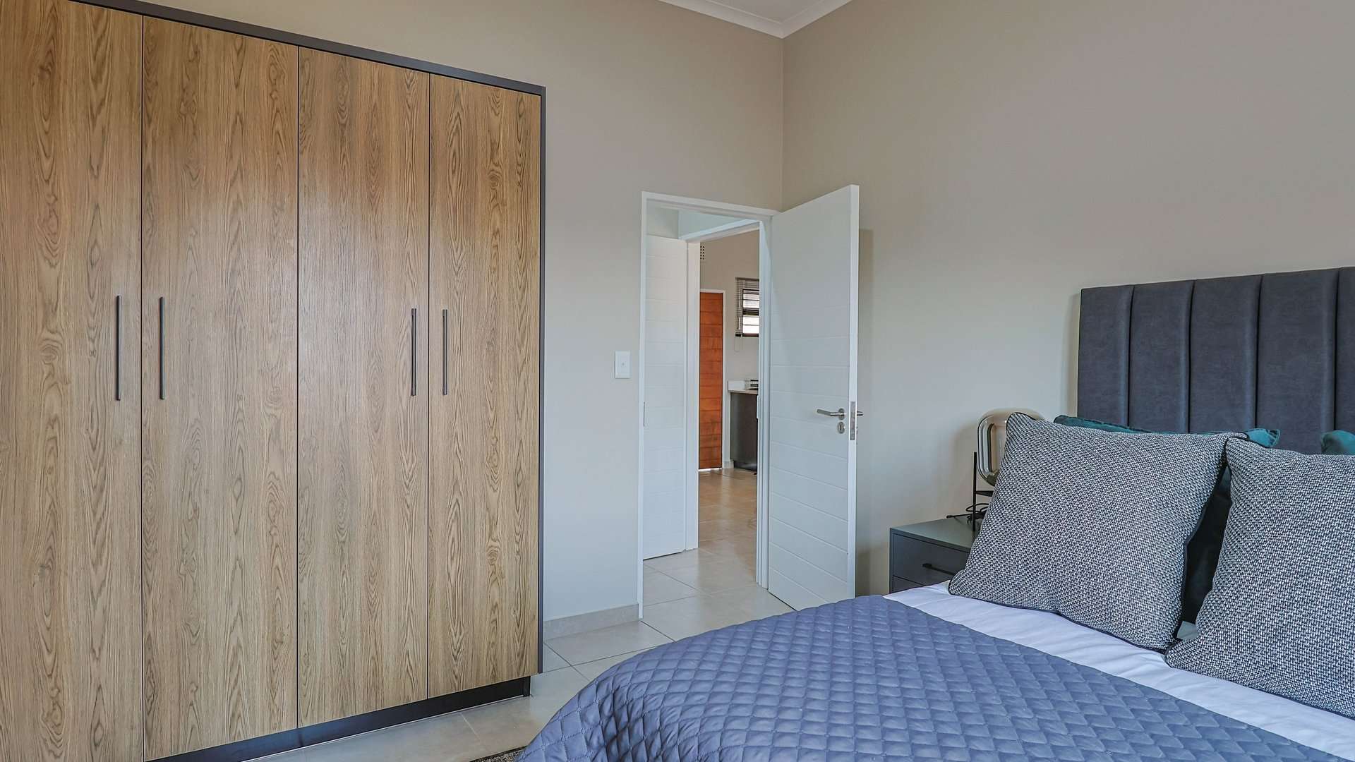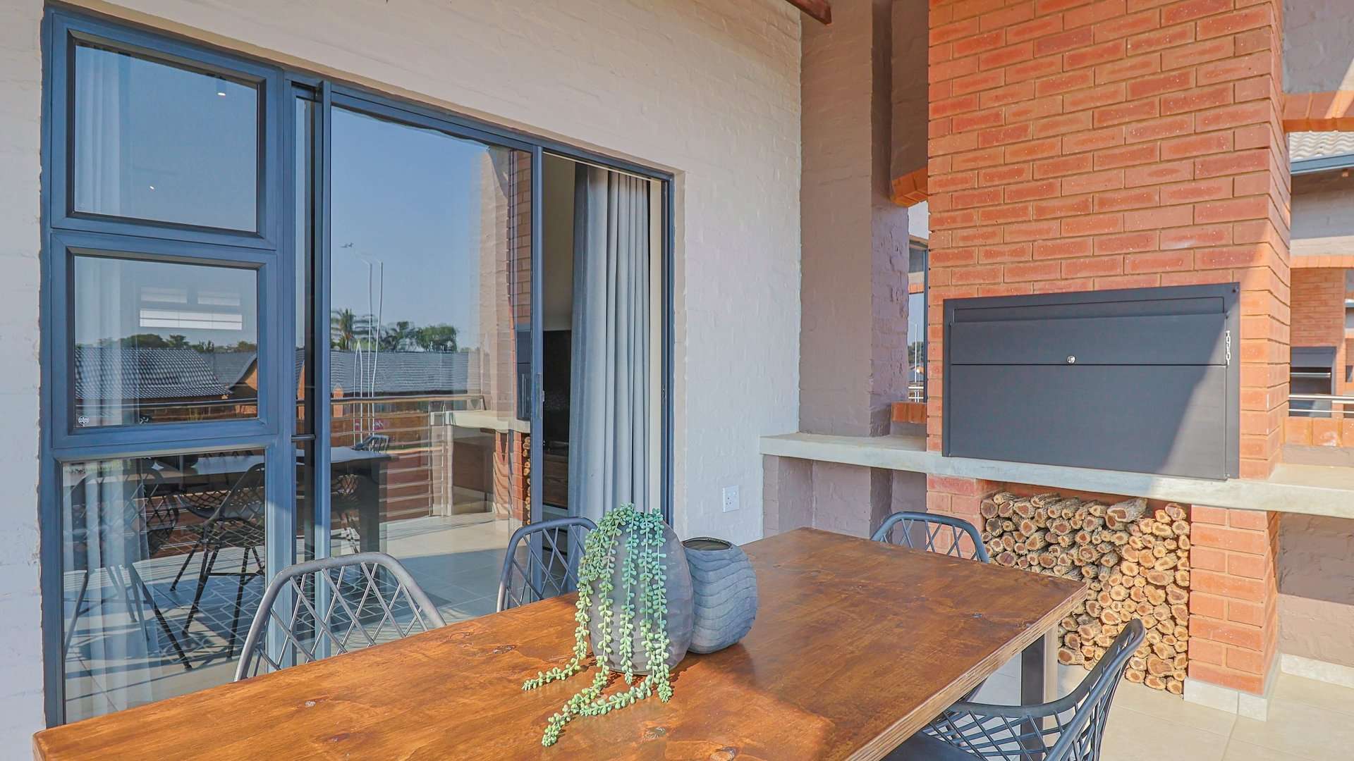 These homes feature open-plan kitchens with granite countertops, gas hobs, electric ovens, and premium fittings. Living areas lead to private patios with built-in braais and landscaped communal gardens.