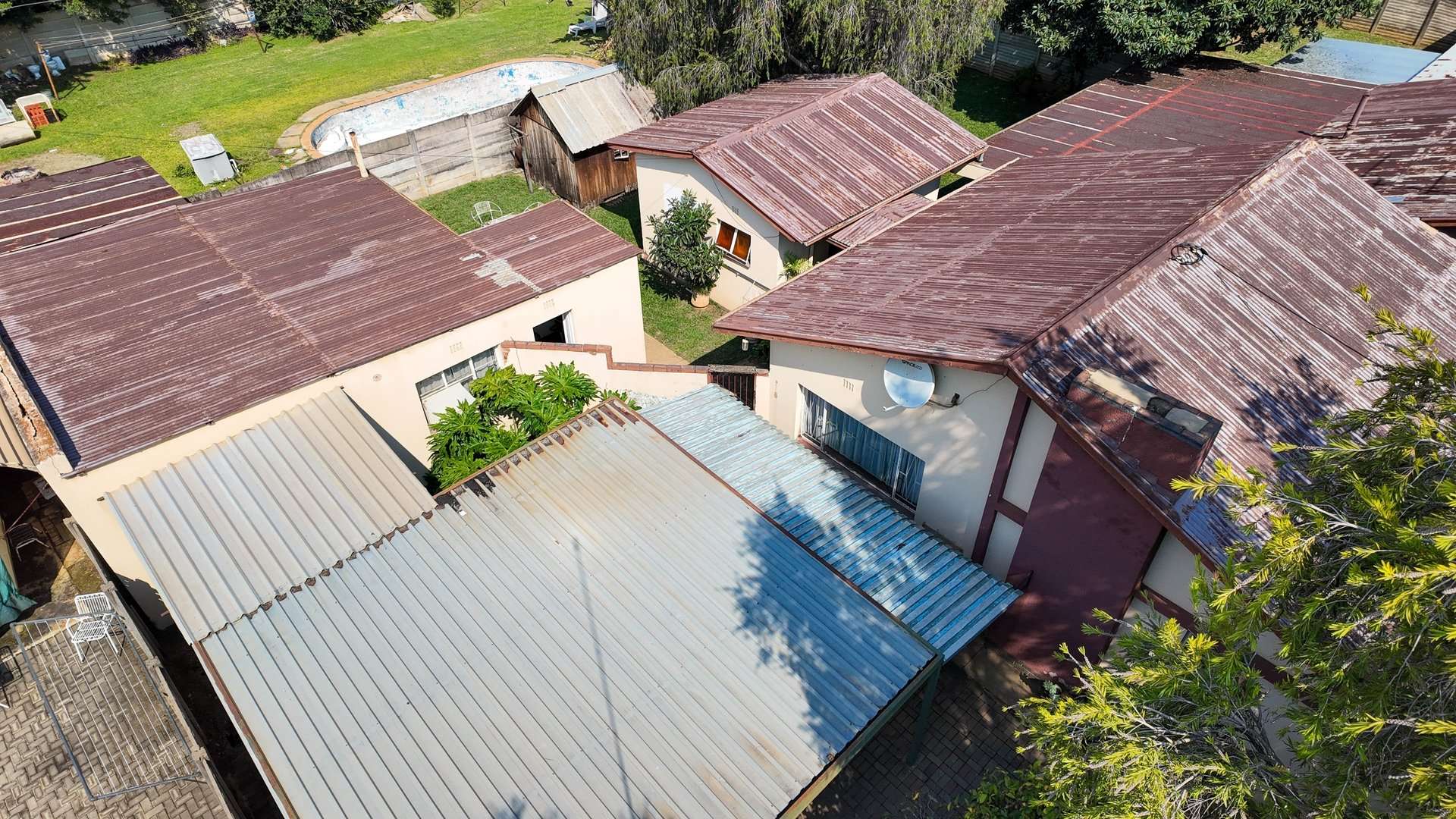 The opportunities on this property are endless as the property offers 2 houses, the main house of 165sqm with 3 bedrooms, 1 bathroom with separate toilet, living room, dining room, extra big single garage with workspace, staff quarters, big entertainment area and a 1bed apartment that can be rented out for an additional income.