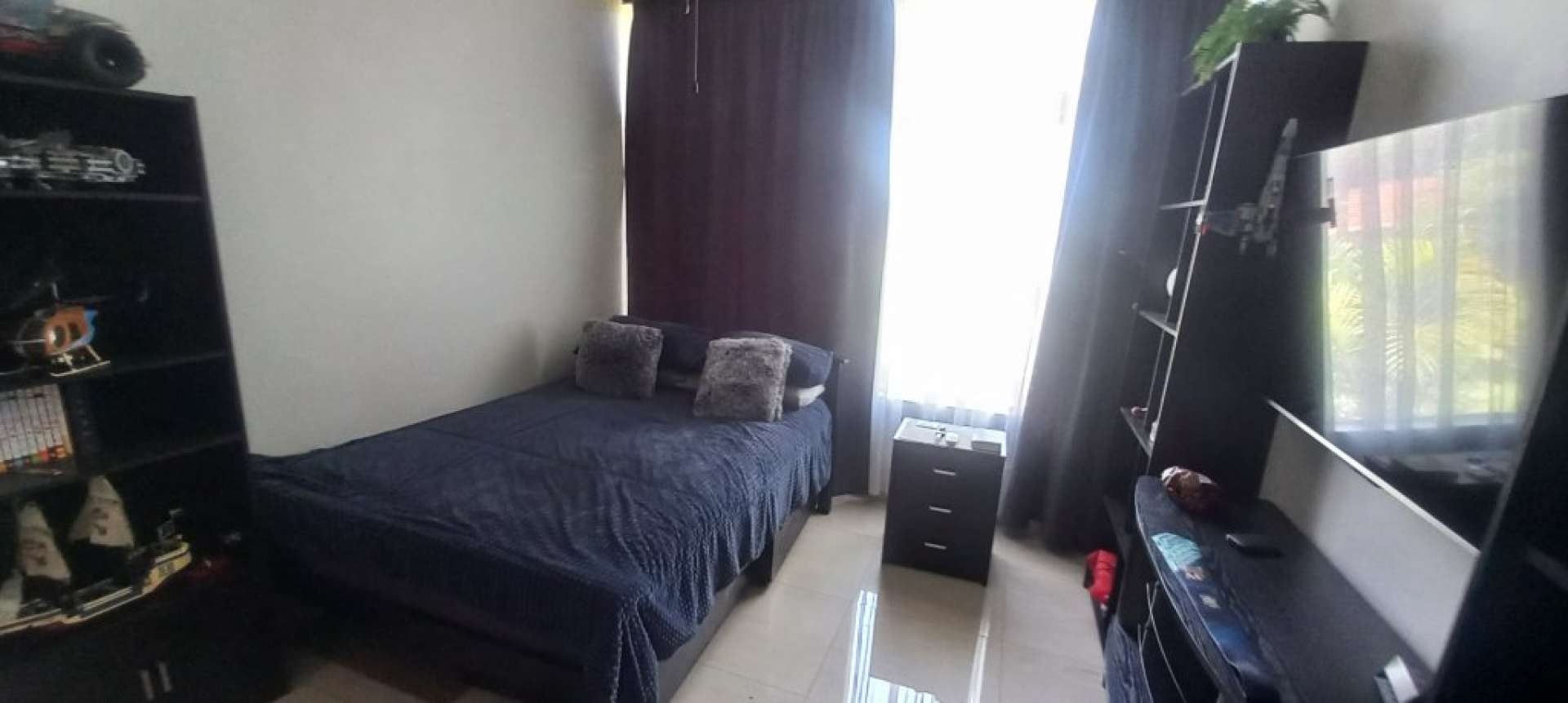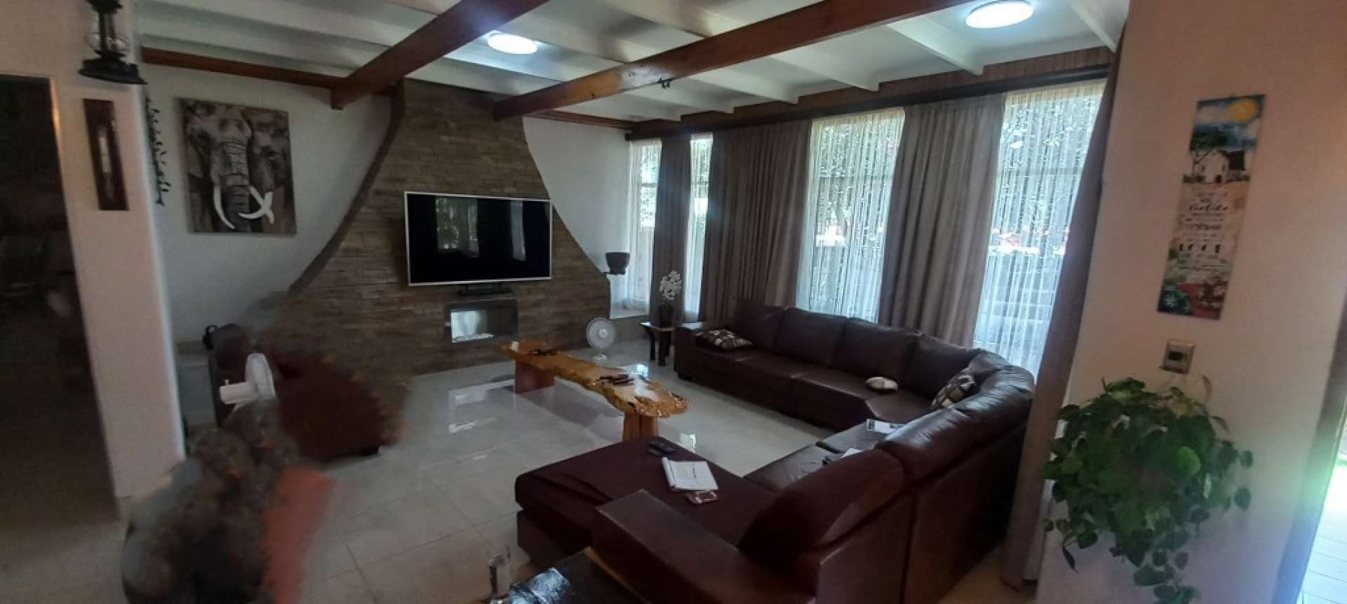 * Curtains + big screen TVs included