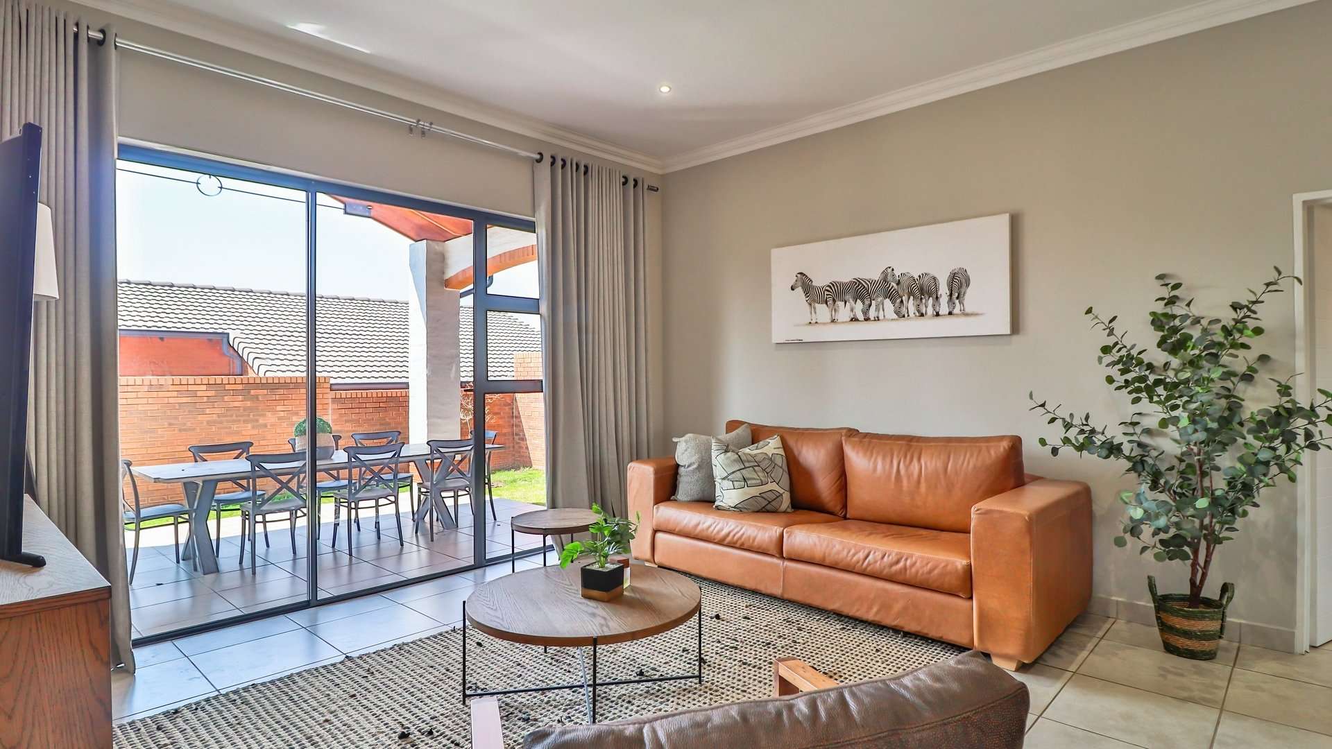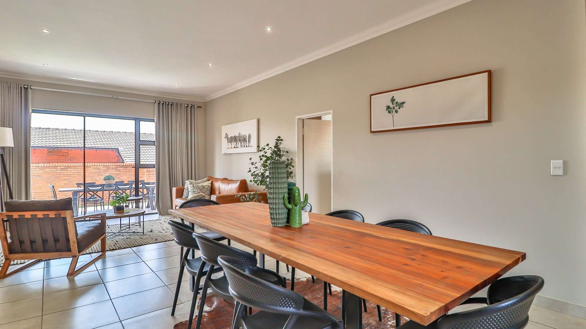 * Spacious lounge and dining area leading to a covered patio with built-in braai and private garden