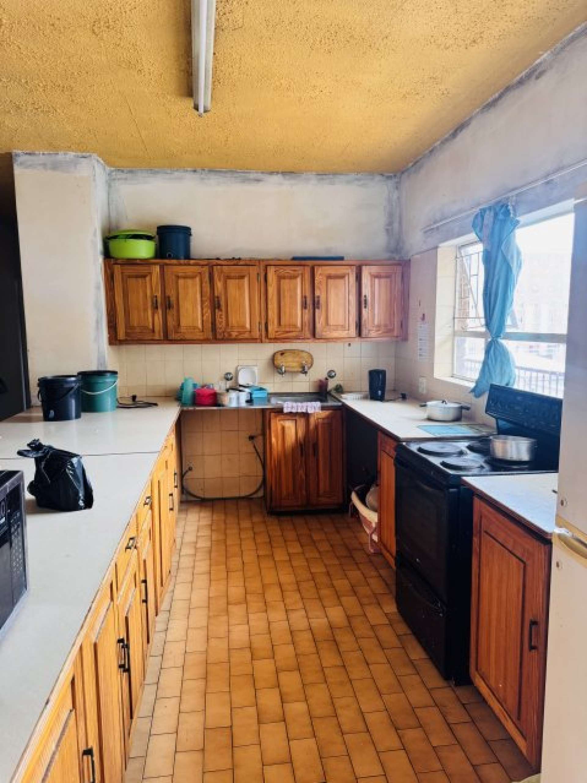 The property features one bathroom and a large, functional kitchen with ample built-in cupboard space, ideal for shared living.
