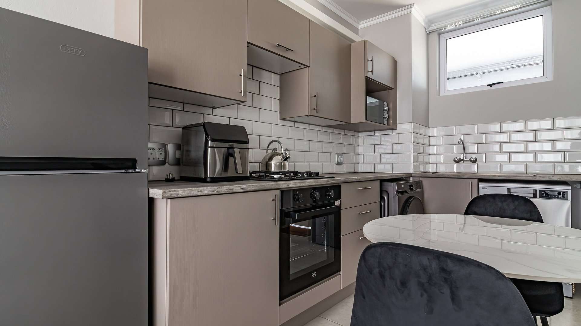 Each apartment features spacious interiors and a modern open-plan kitchen, thoughtfully designed to accommodate up to three appliances. The kitchen is fitted with a gas hob and electric oven, making it a functional and inviting space for cooking and entertaining.