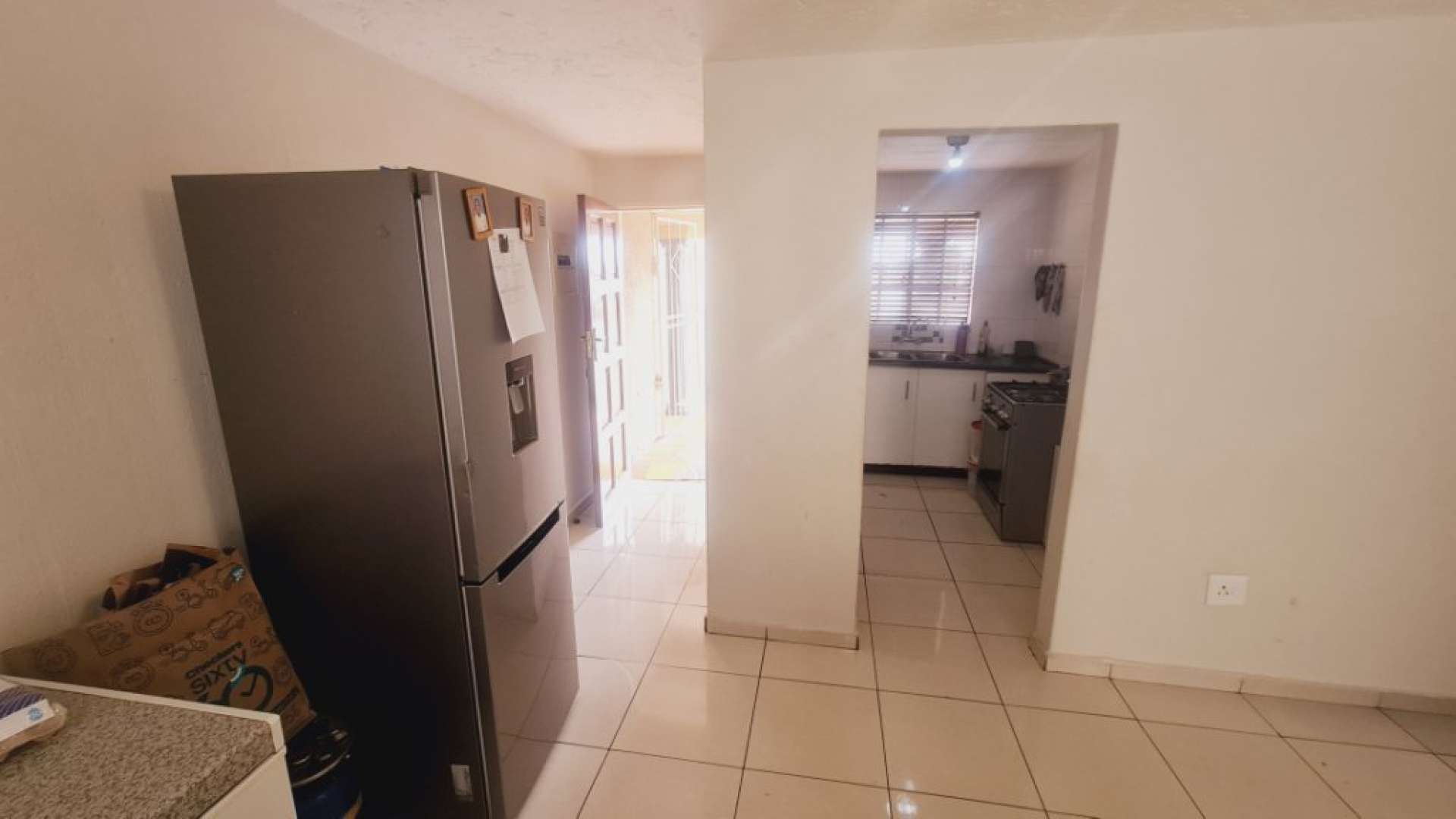 The unit features a spacious open-plan lounge and dining area that flows into a well-equipped kitchen with ample cupboard space.