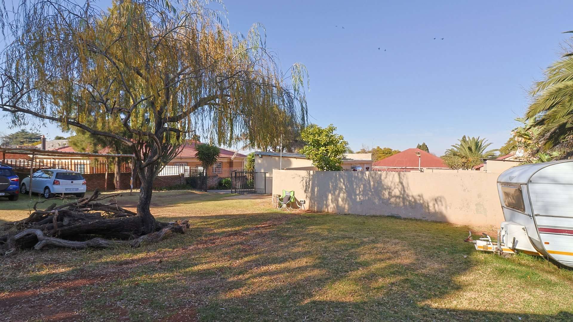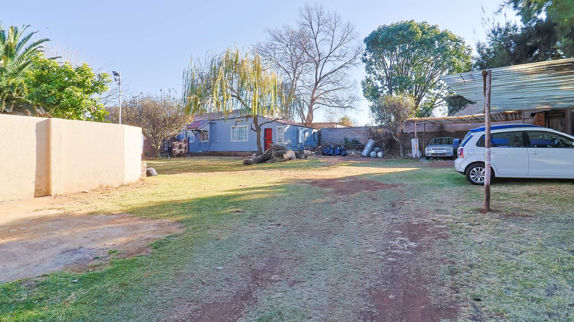 Additional land beyond the back driveway offers potential for further development. Six carports provide ample parking.