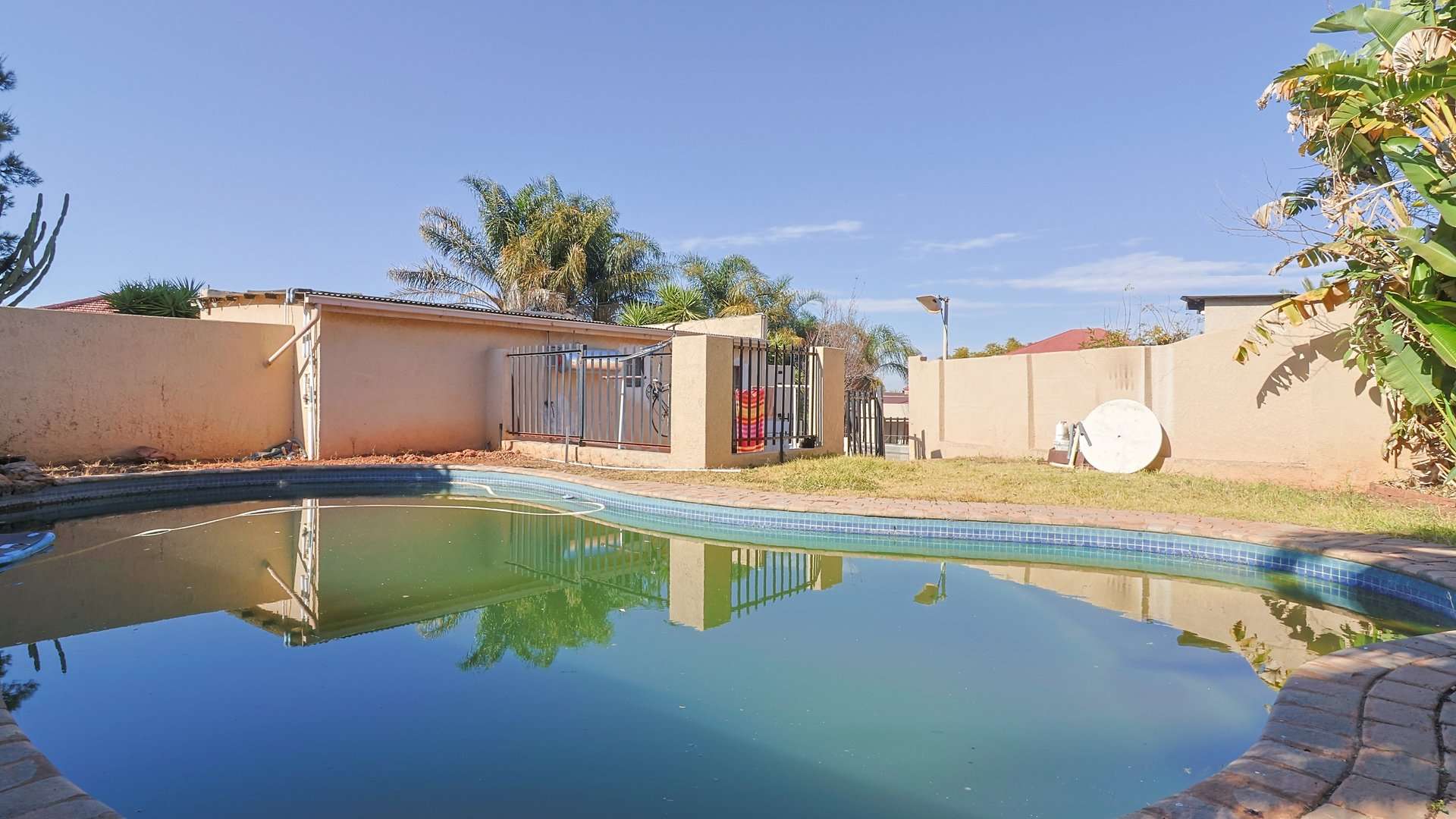 Residents can enjoy a shared pool, and the property is securely fenced with two entrances.