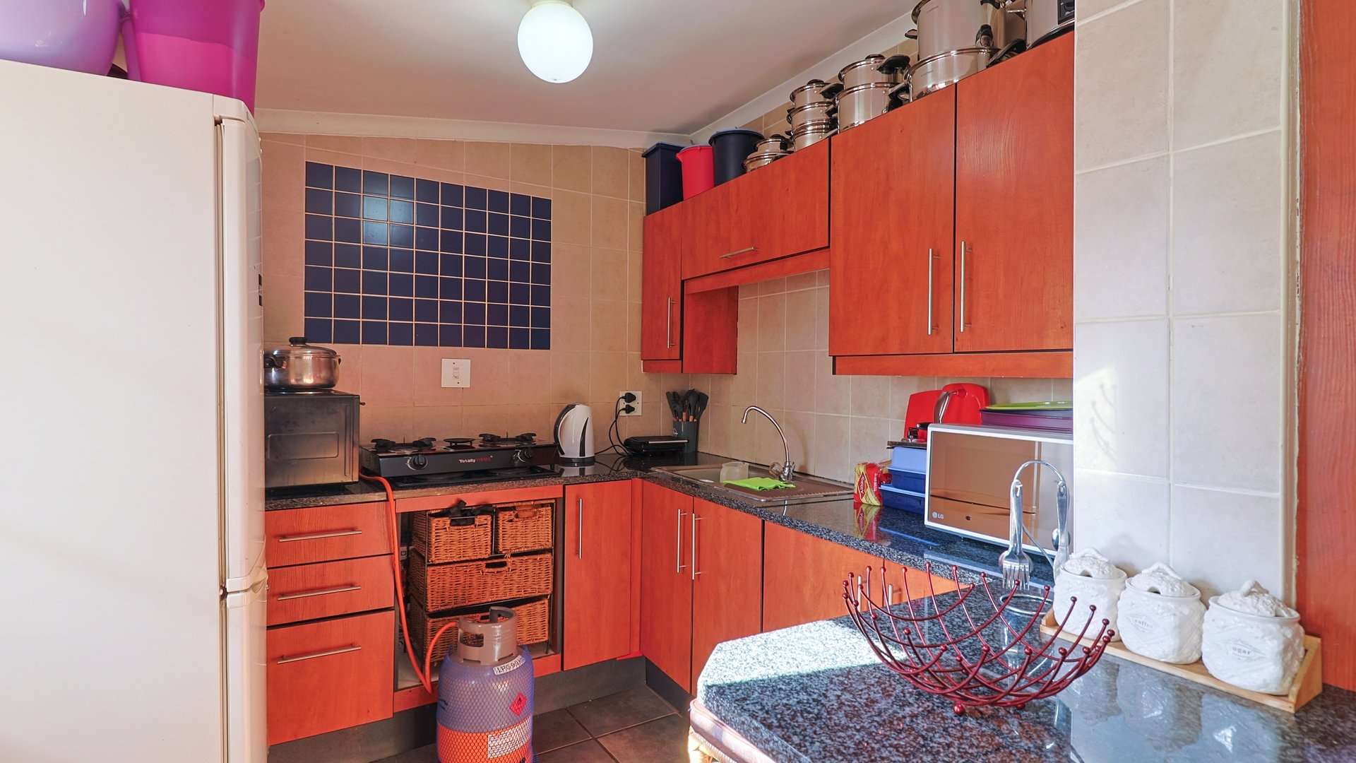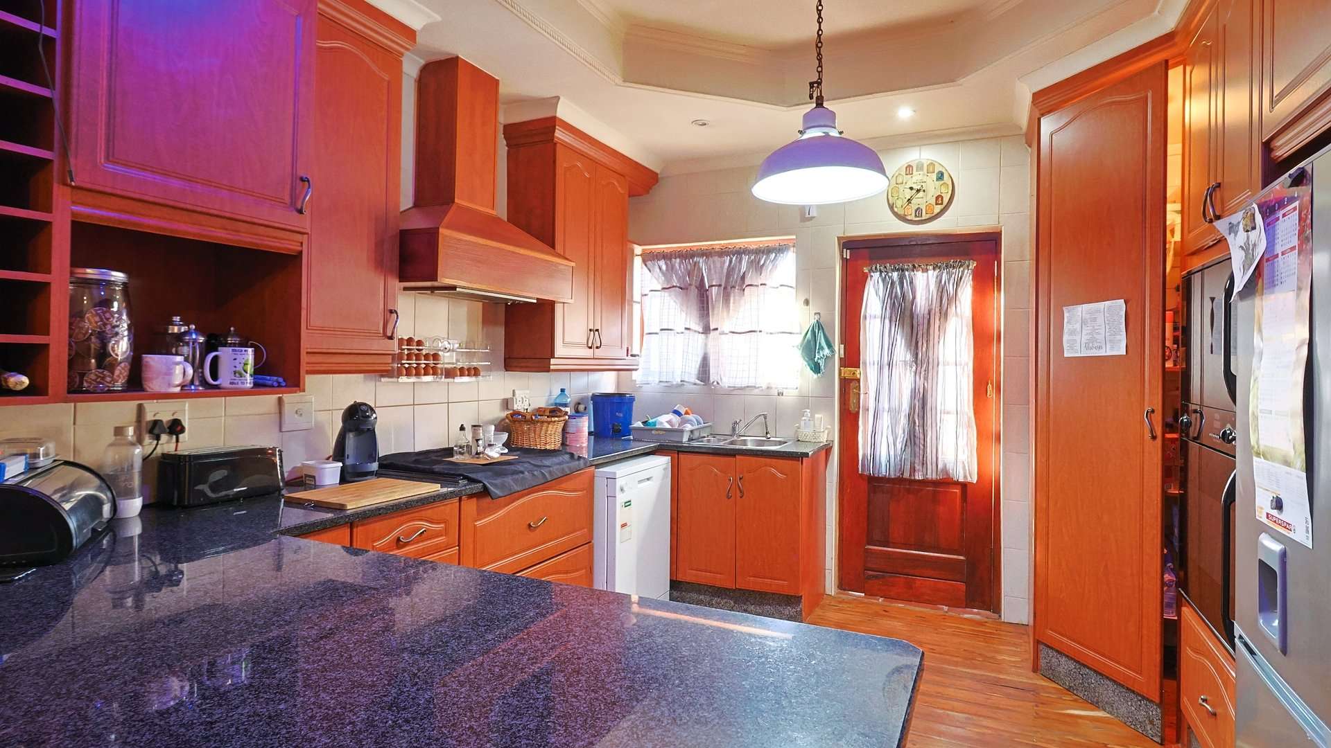 The master bedroom features a walk-in wardrobe, and the kitchen is well-appointed with an eye-level oven, granite work surfaces, and plentiful storage.