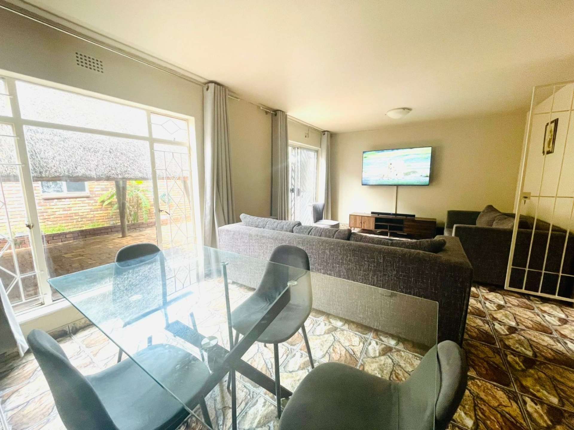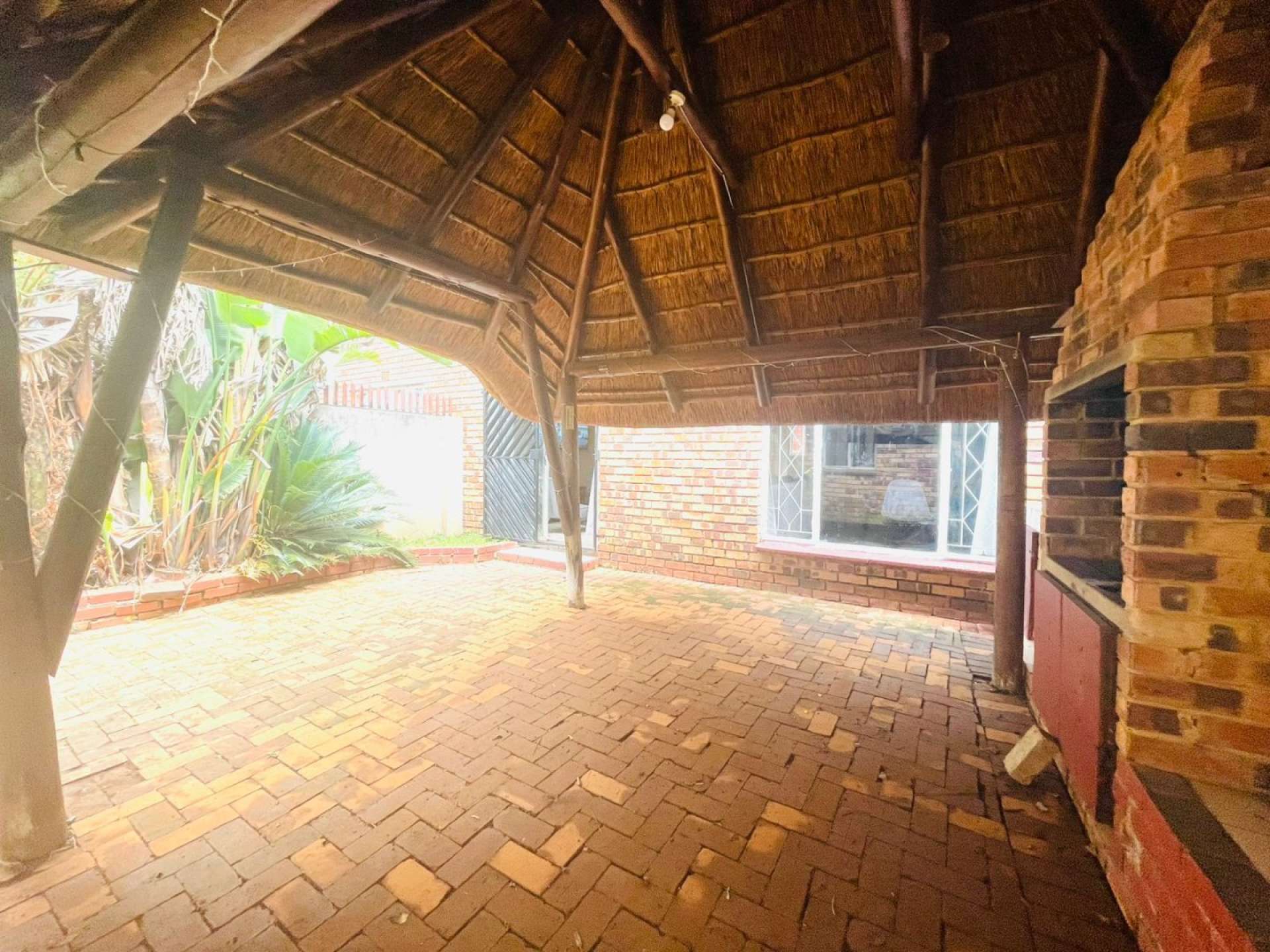 A standout feature is the thatch lapa, perfect for relaxed gatherings and weekend braais in a peaceful setting.