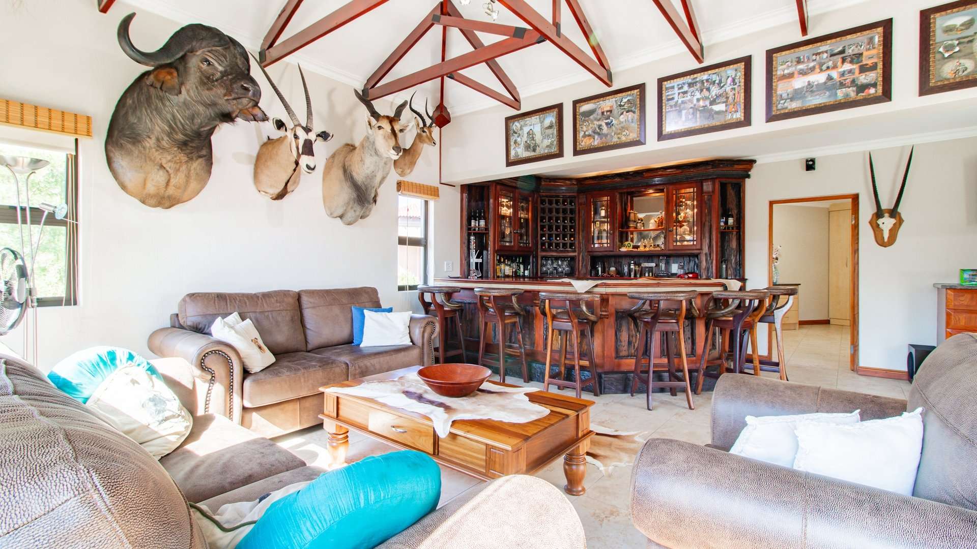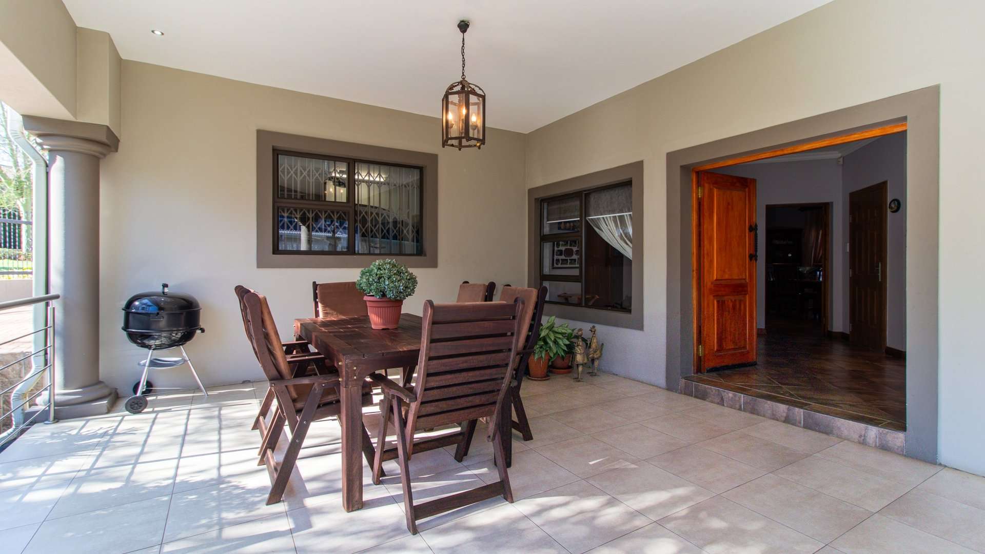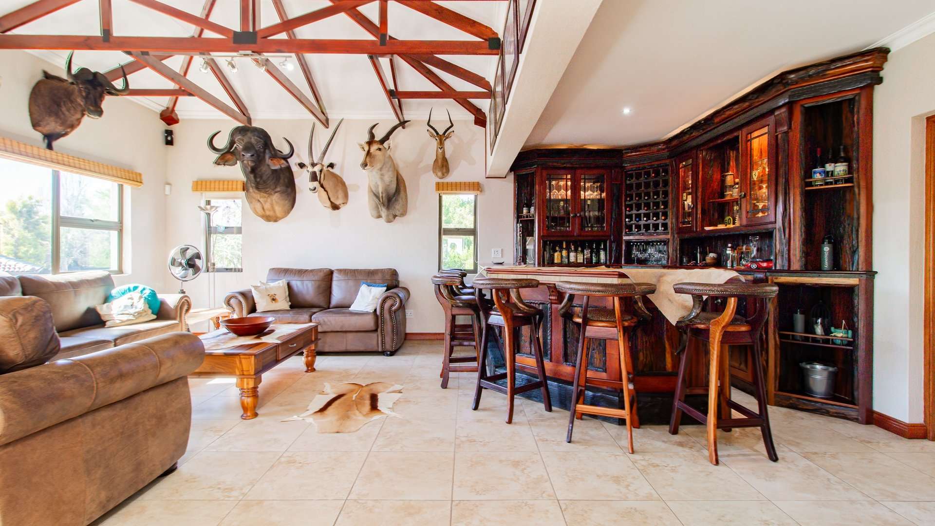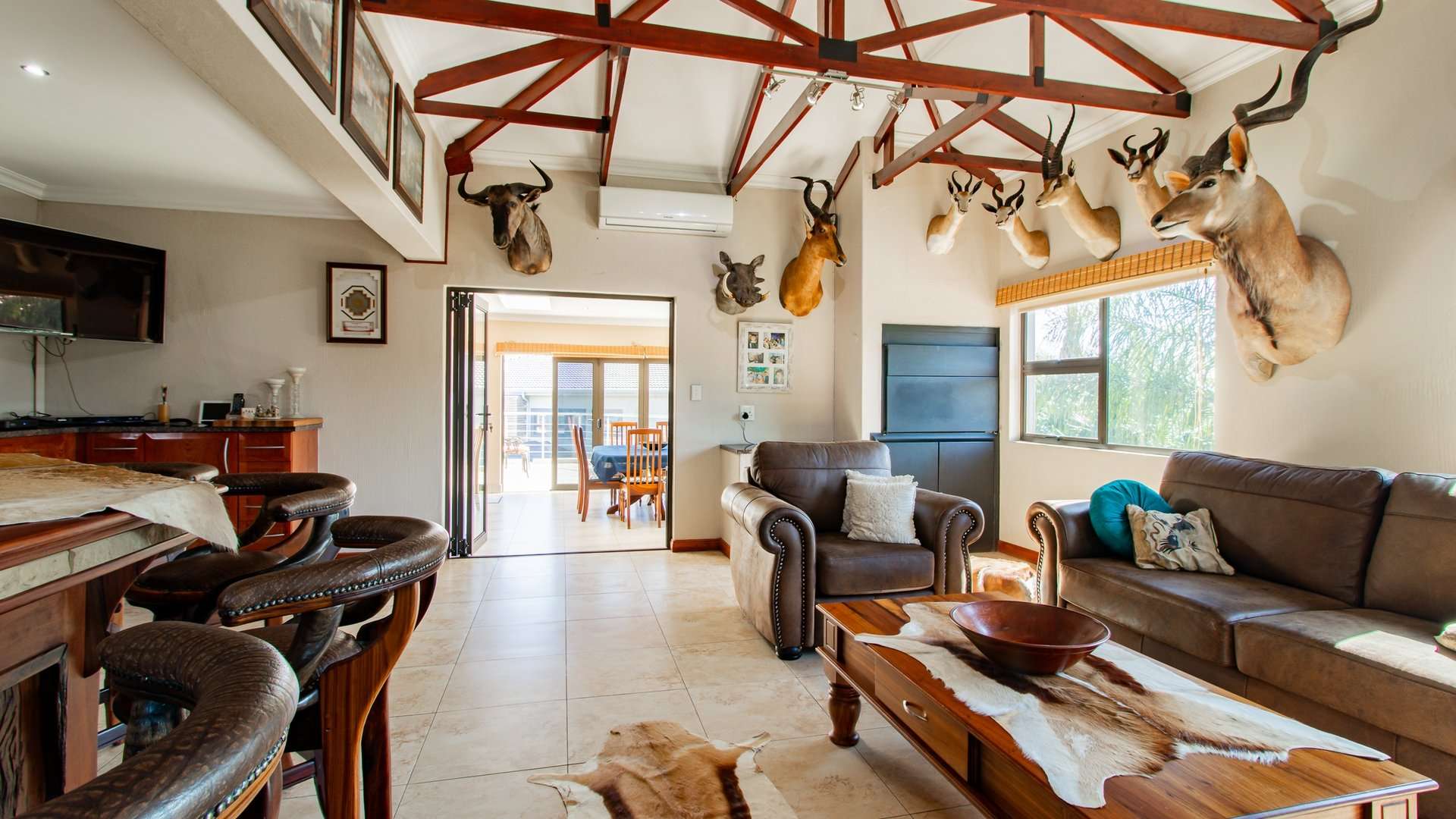 Entertaining is effortless with a sophisticated bar and entertainment area, a built-in braai, and a convenient prep space.