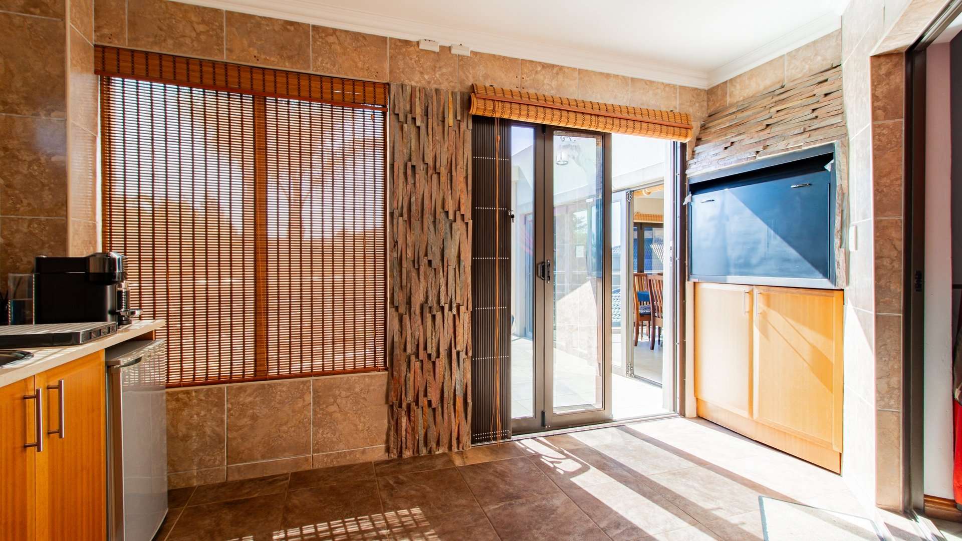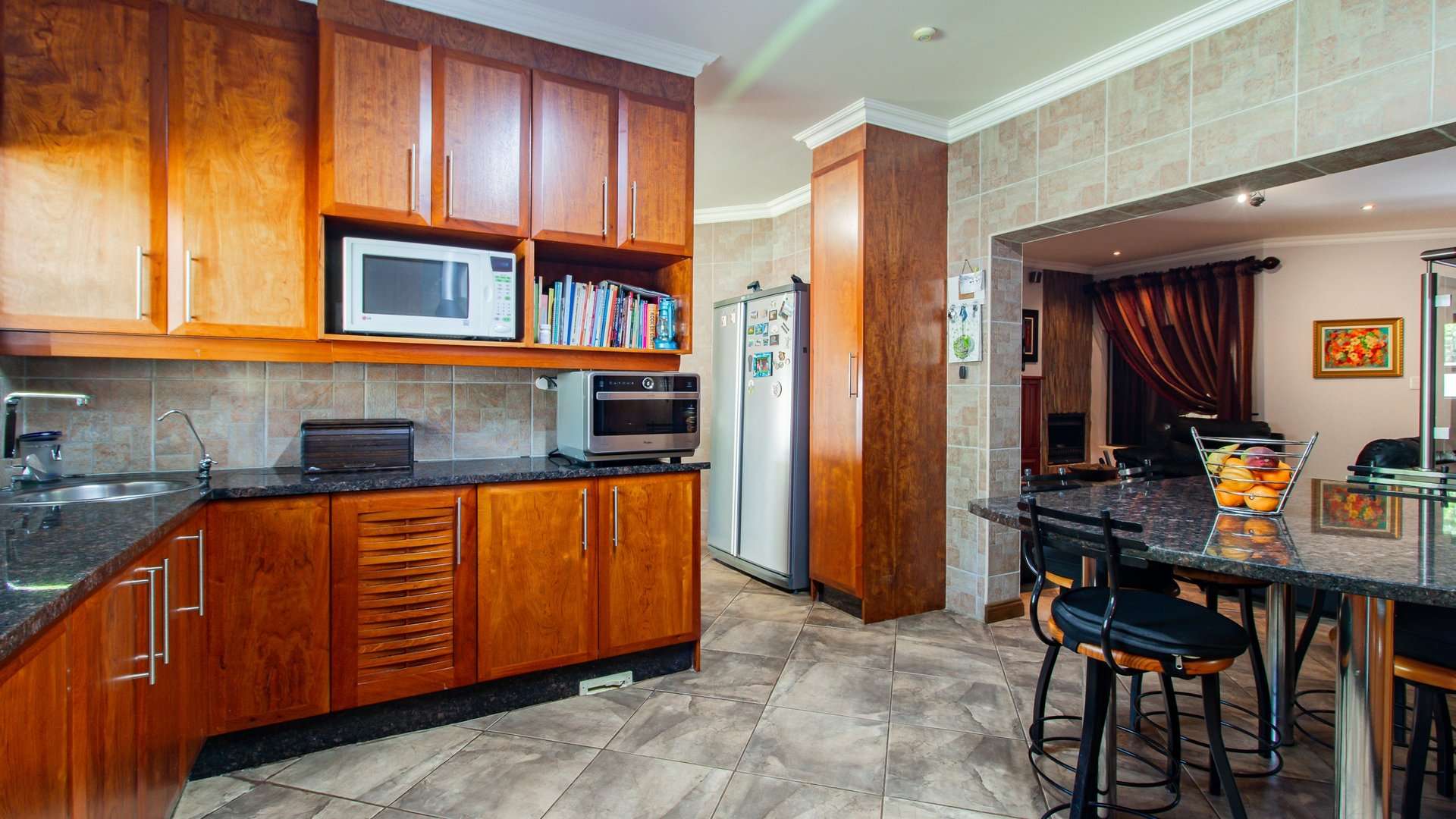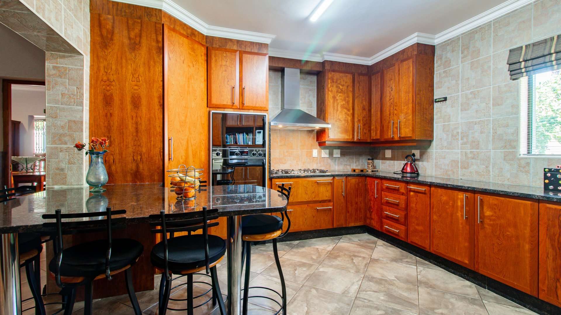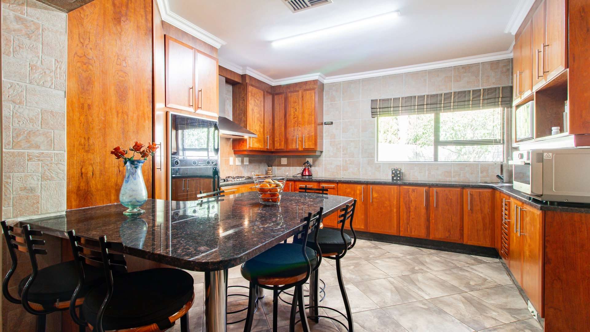 Entertaining is effortless with a sophisticated bar and entertainment area, a built-in braai, and a convenient prep space.