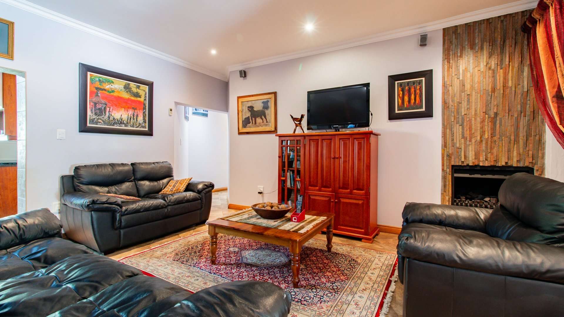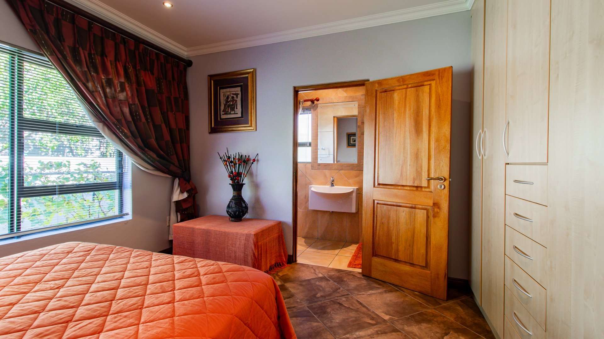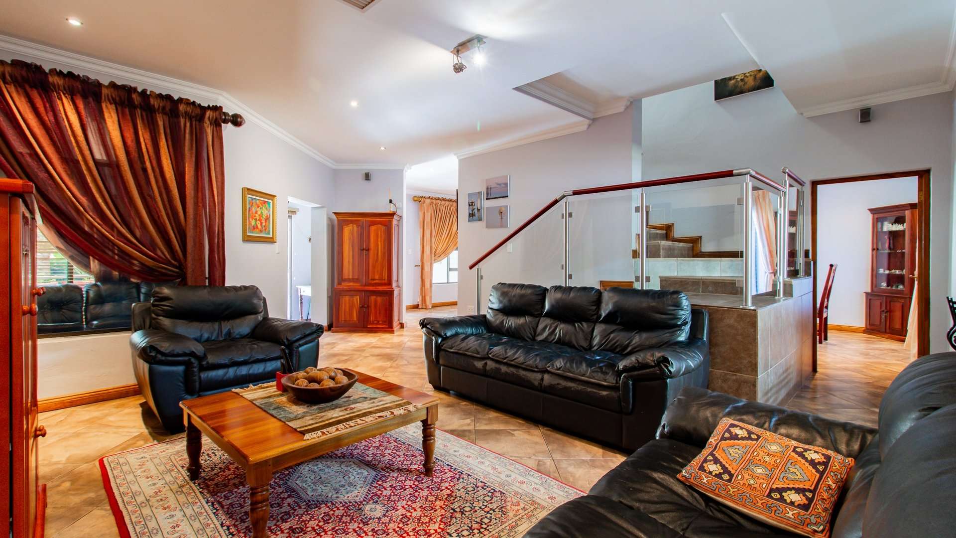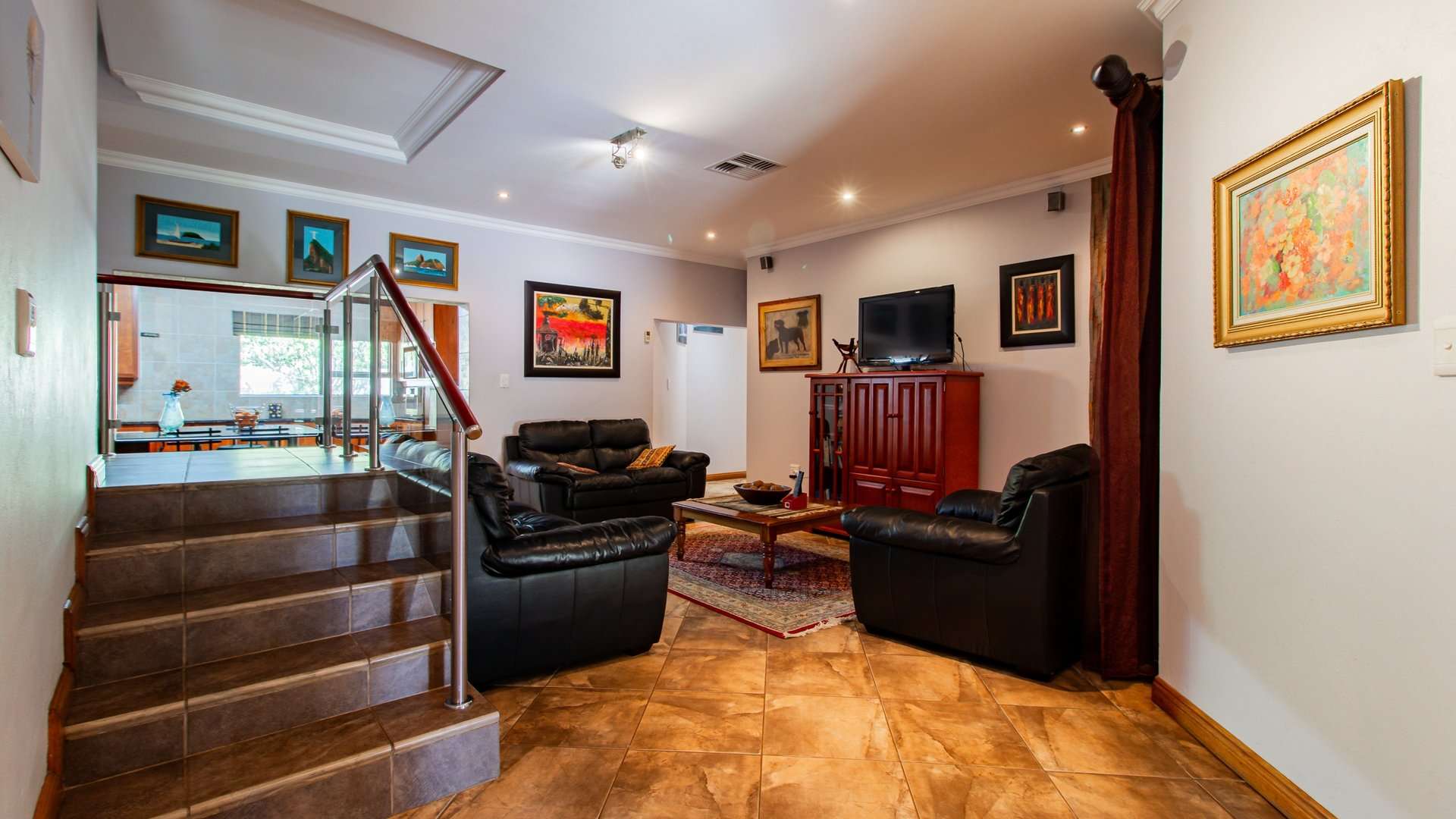 Entertaining is effortless with a sophisticated bar and entertainment area, a built-in braai, and a convenient prep space.