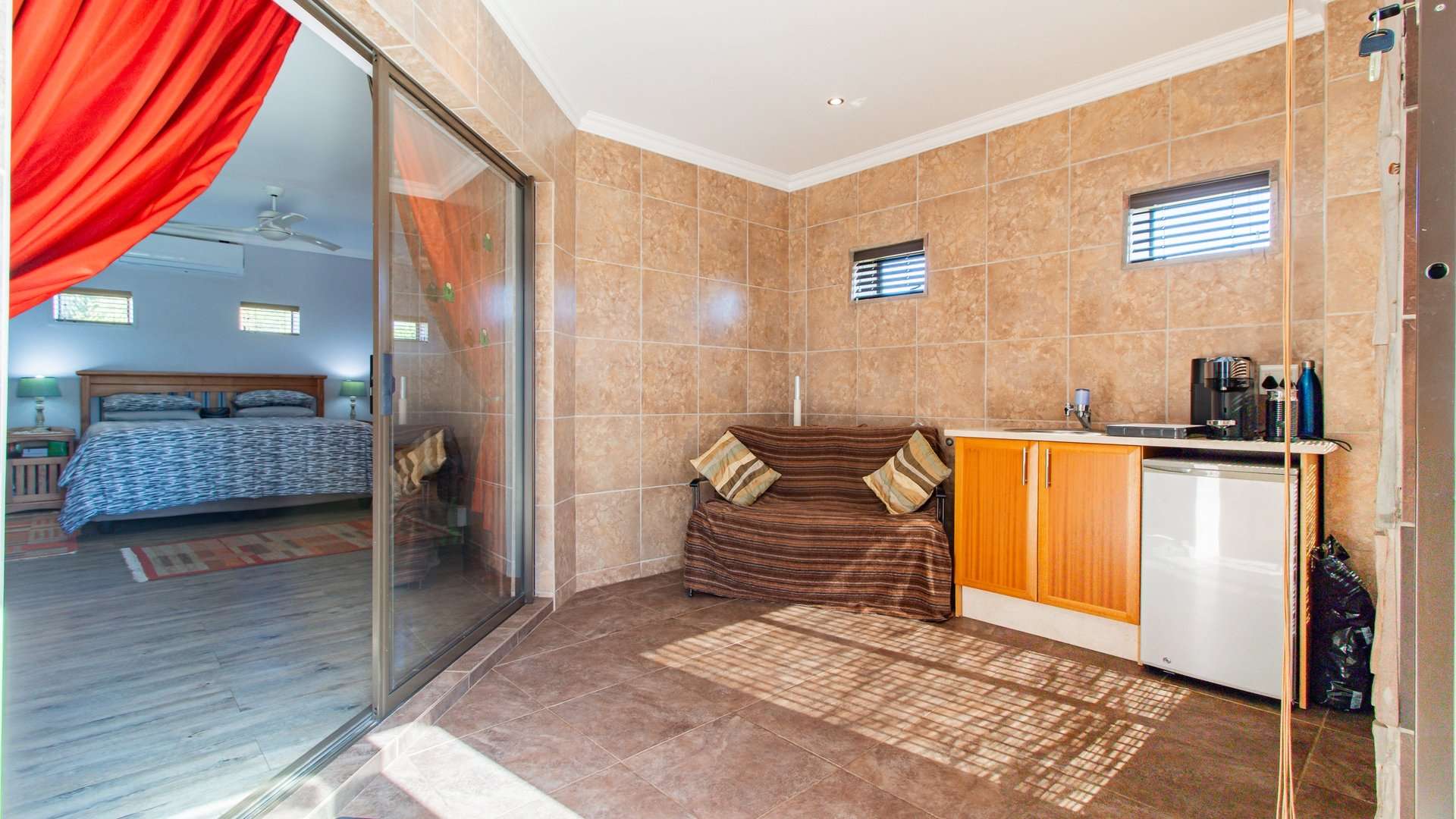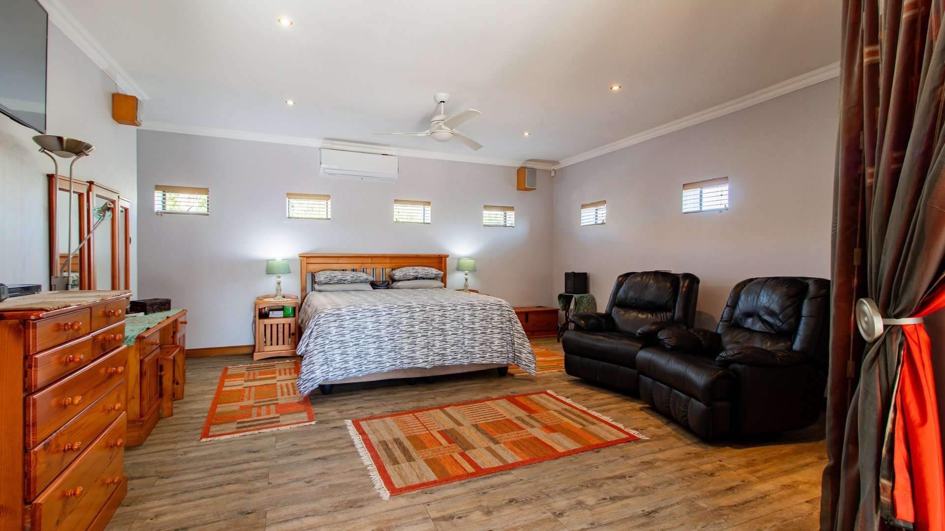 The home stays perfectly temperate year-round, thanks to a breeze air cooling system throughout and additional air conditioning in the master suite and study.