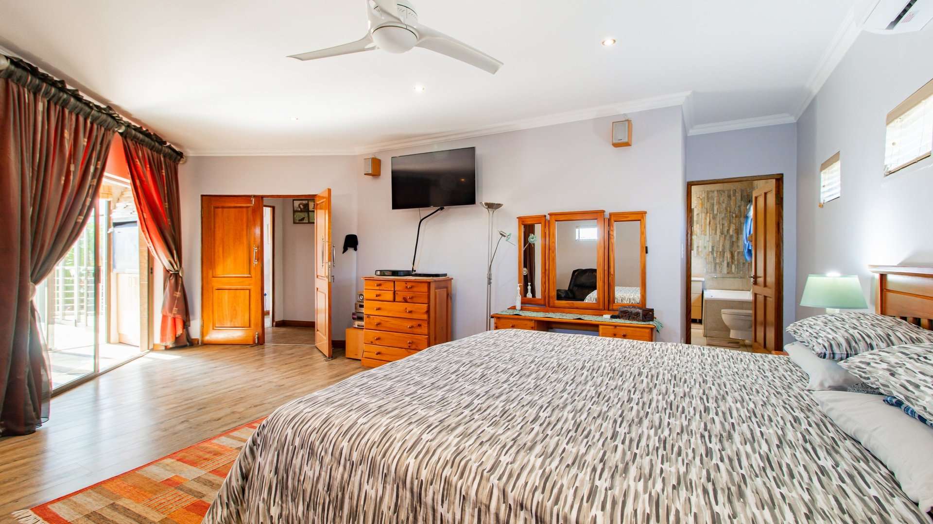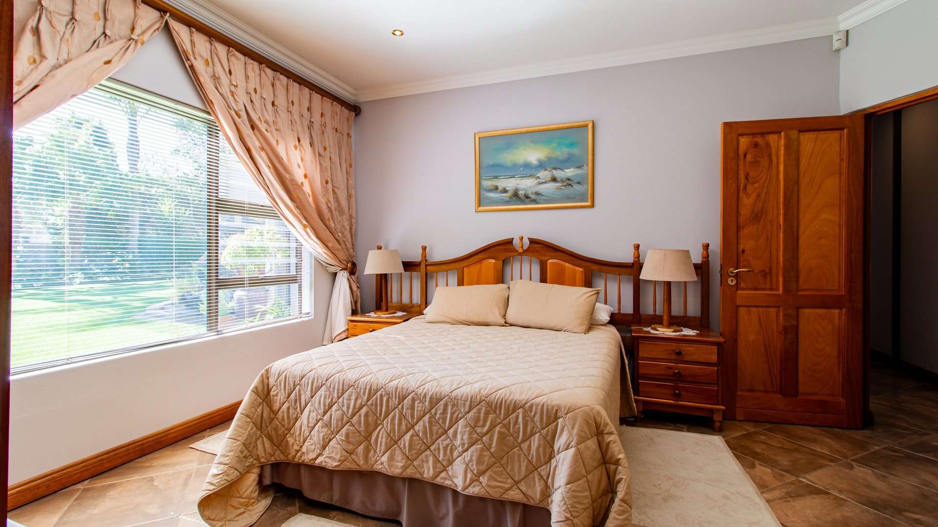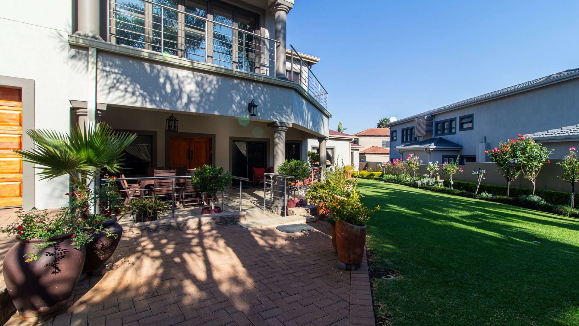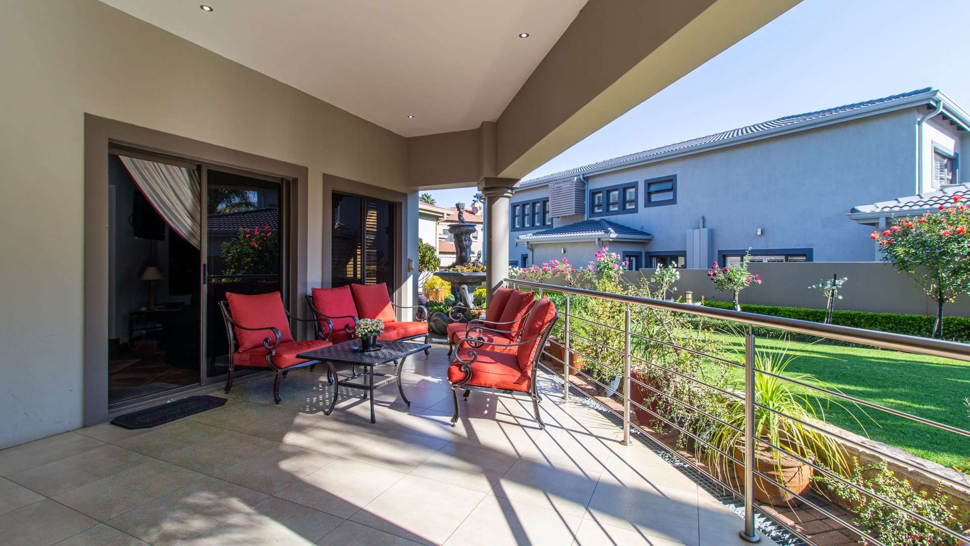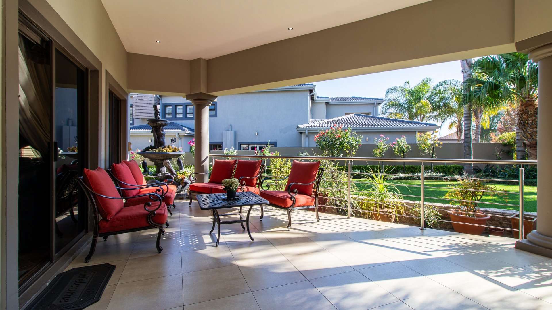 Step onto the private veranda to take in panoramic views of the immaculately landscaped garden below — an ideal space for morning coffee or sunset relaxation.
