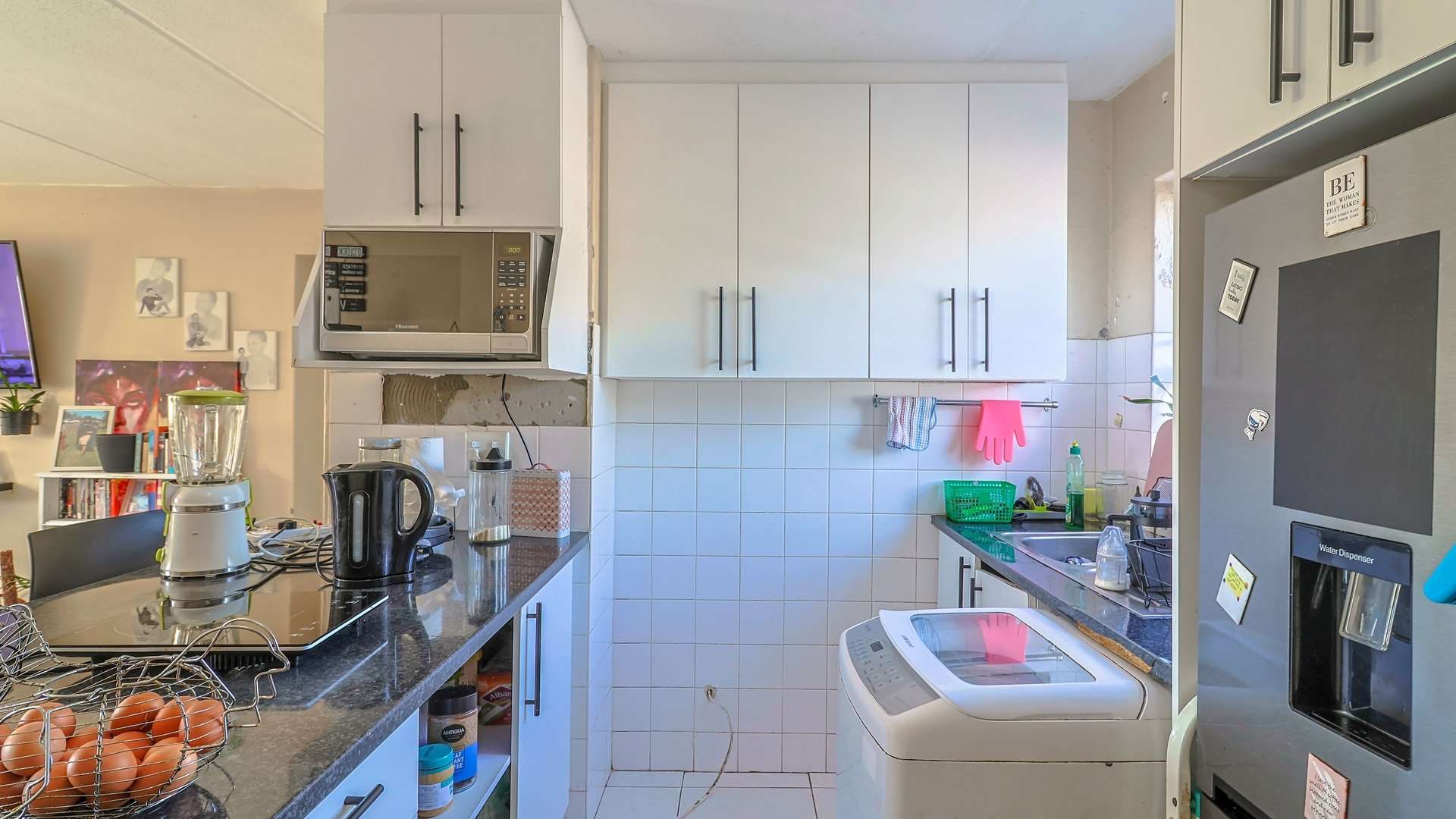Enjoy a bright and airy open-plan living and dining area, a spacious kitchen with ample cupboard space, and two cozy bedrooms that create an inviting atmosphere.