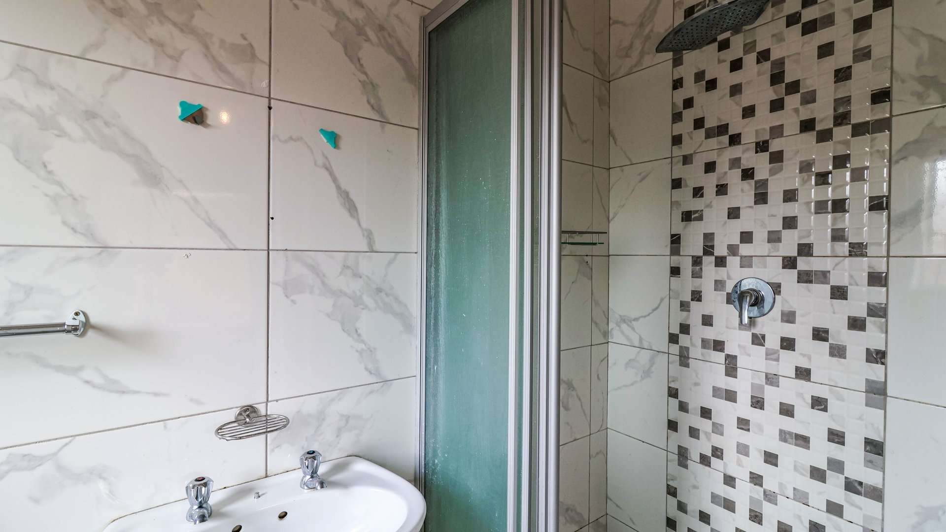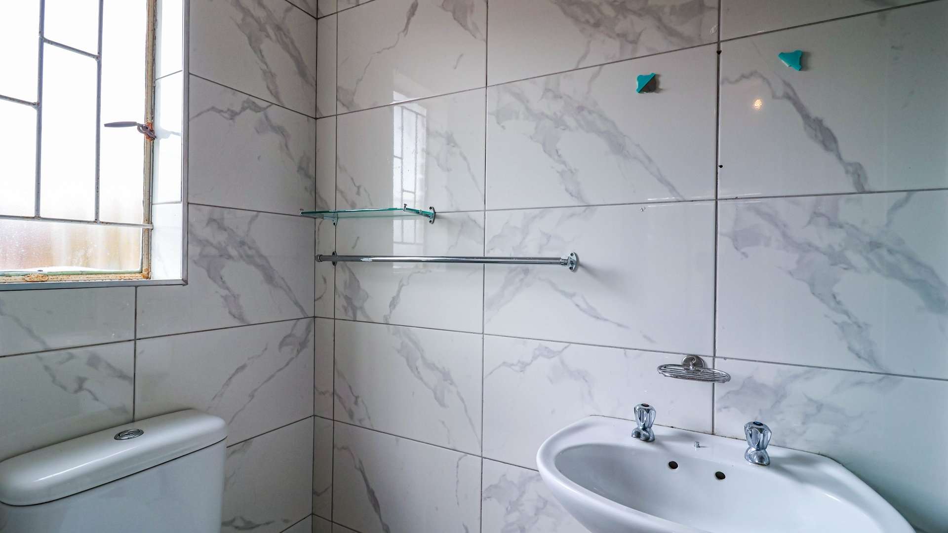 2 beautiful bathrooms, including a main en-suite with shower and toilet. The main bedroom comfortably fits a queen-sized bed with ample walking space.