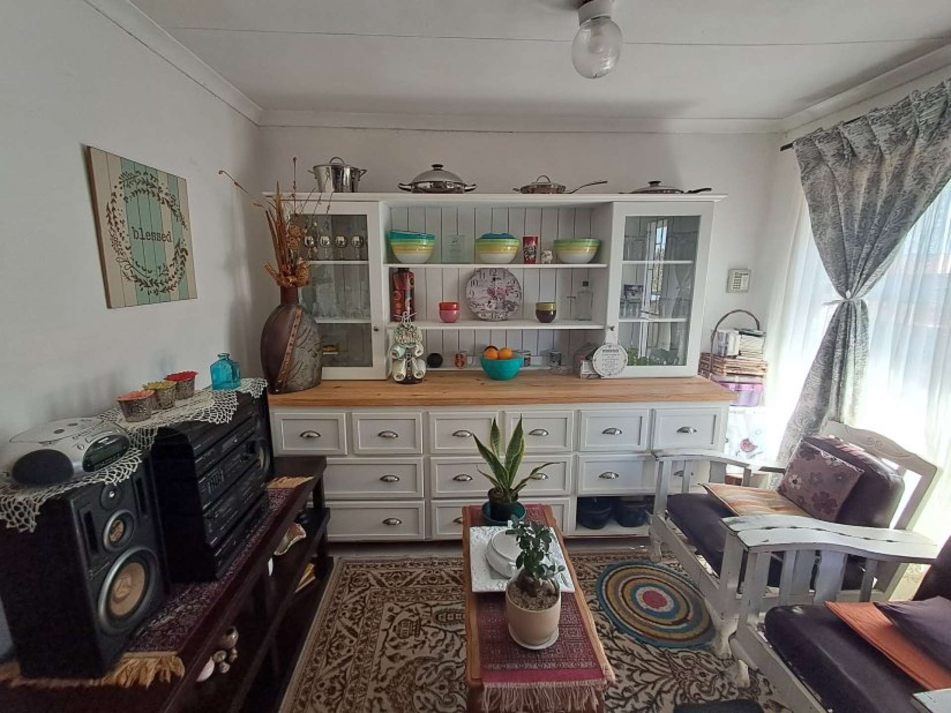 This cozy home features a compact kitchen with a simple, functional layout—ideal for those looking to add their personal touch.