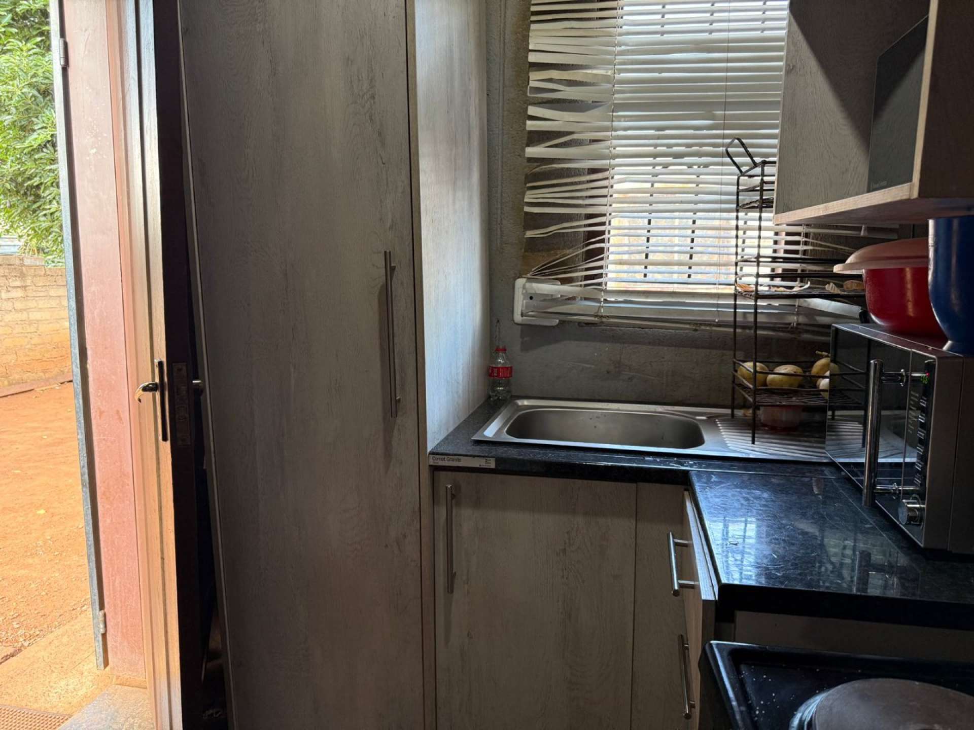 The home features a functional kitchen fitted with beautiful cupboards and a sink, providing a practical and welcoming space for everyday use.
