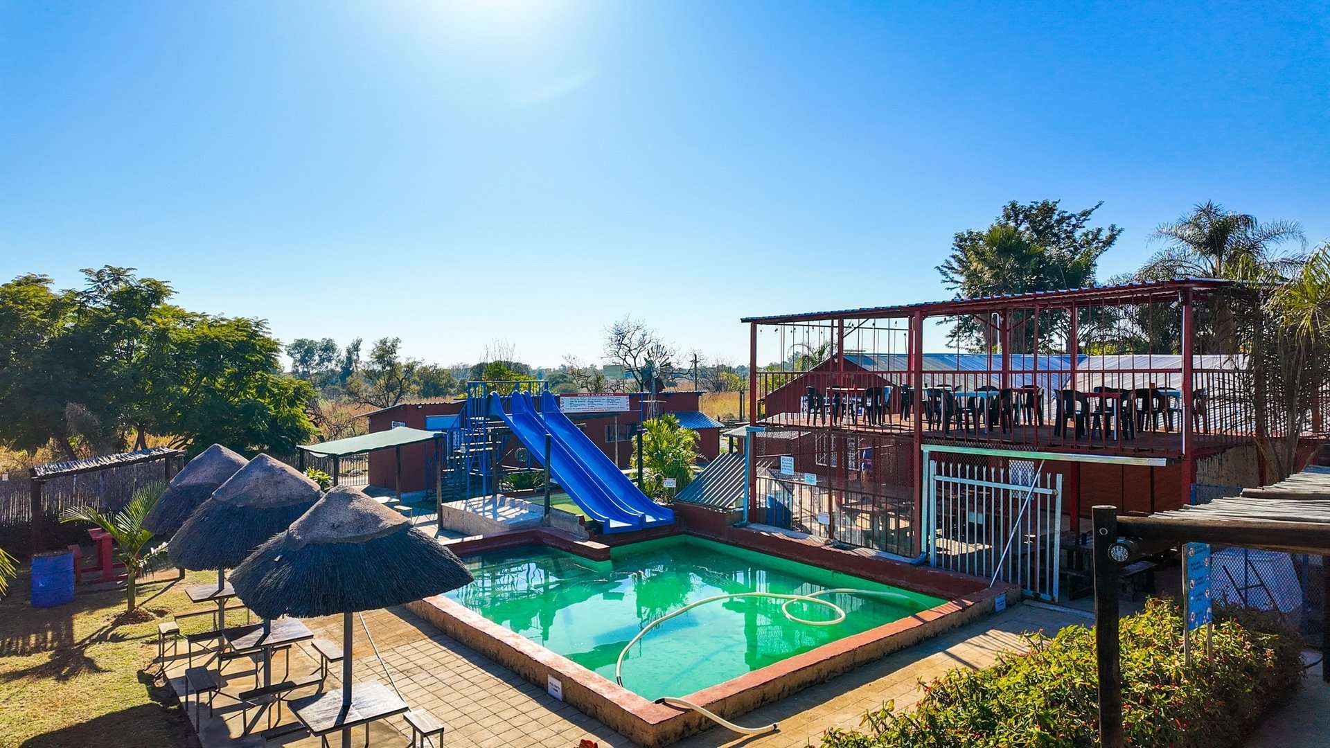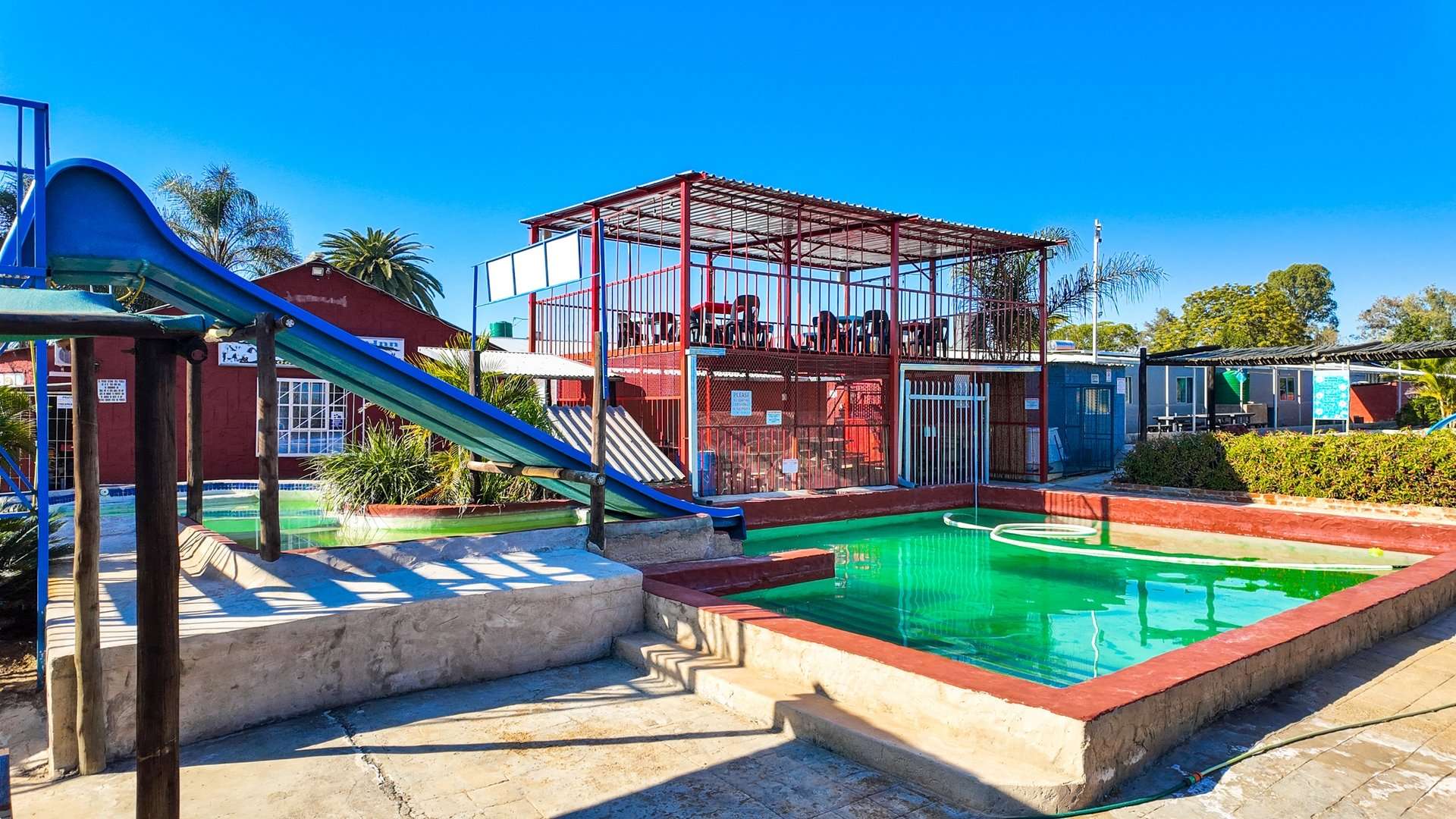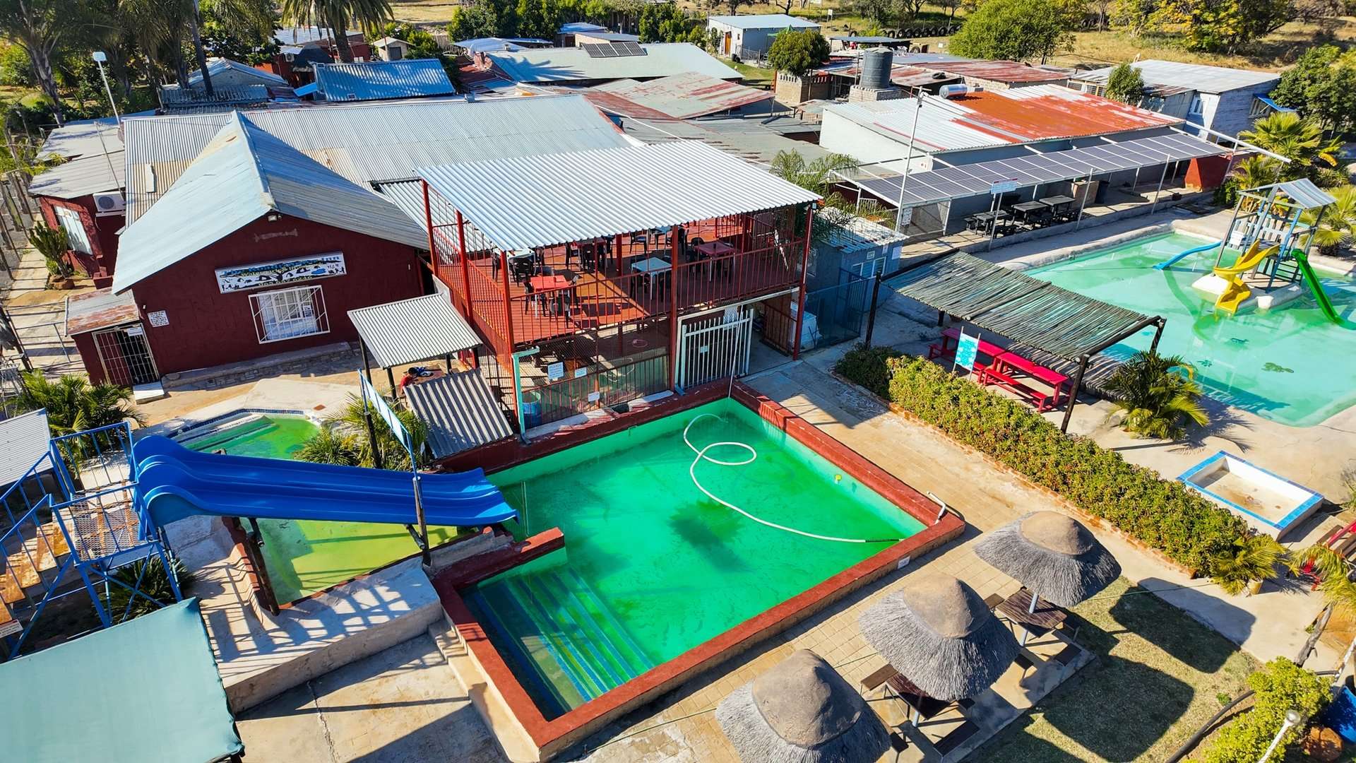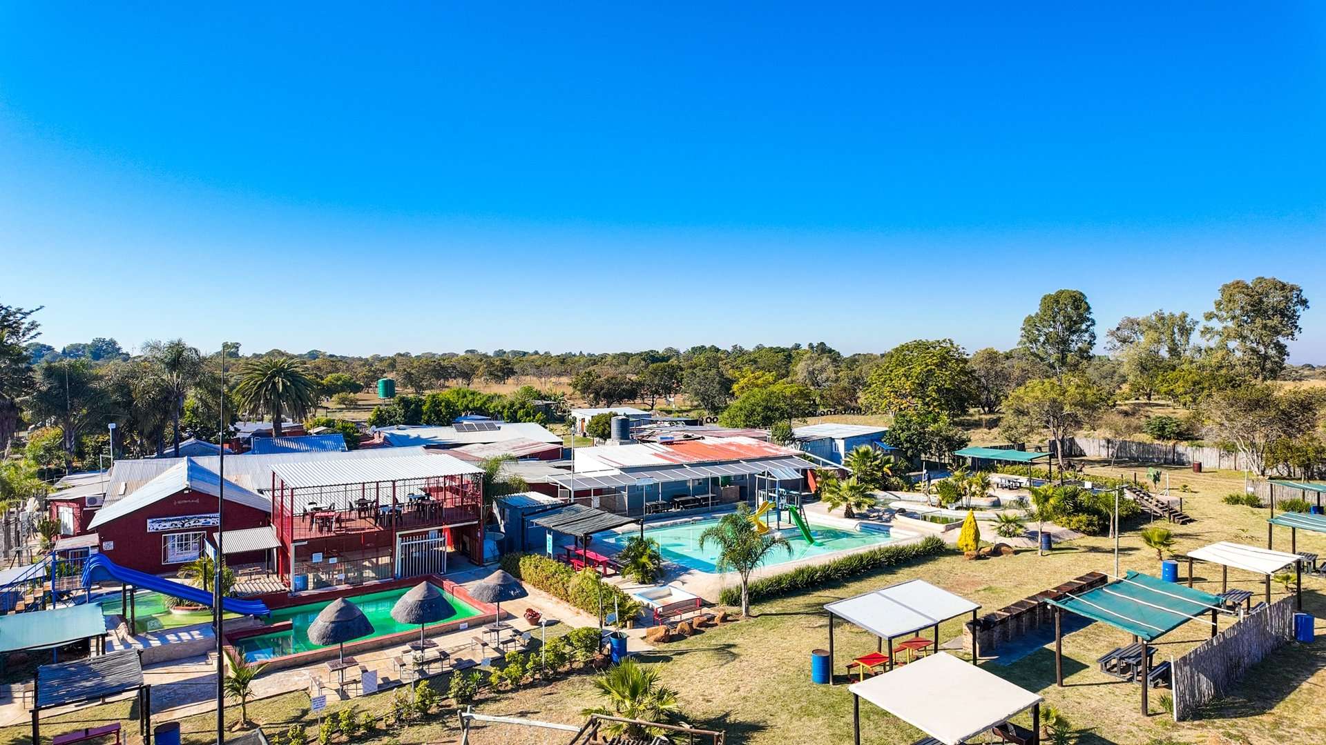 Besides a 4 bedroom and 3-bathroom house this property 10ha is mainly known for the water park entertainment area complete with swimming pools and water slides, a restaurant/pub/casino with the best pub lunches in the area. It also has single rooms as overnight facilities, apartments for additional rental income and a caravan park with permanent residents.