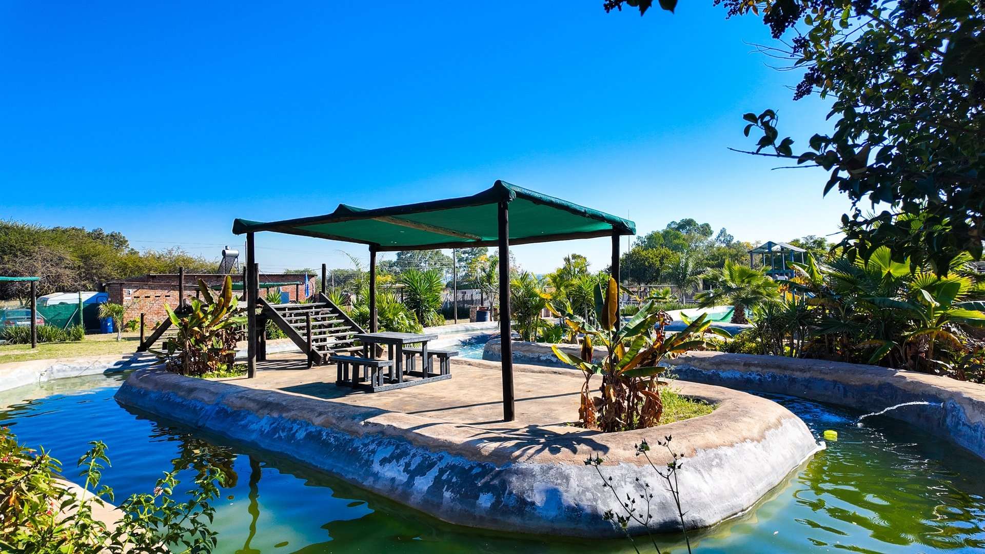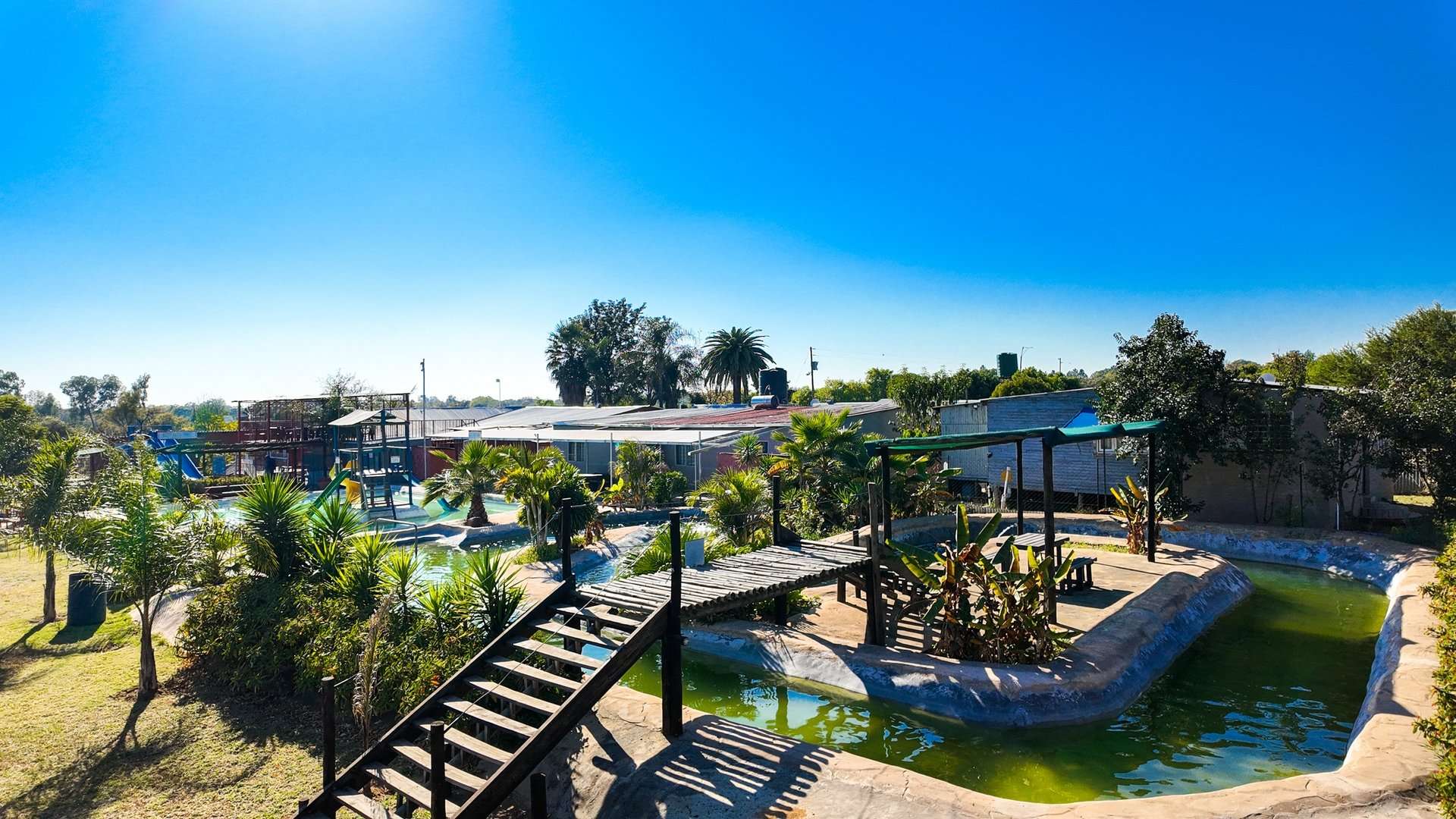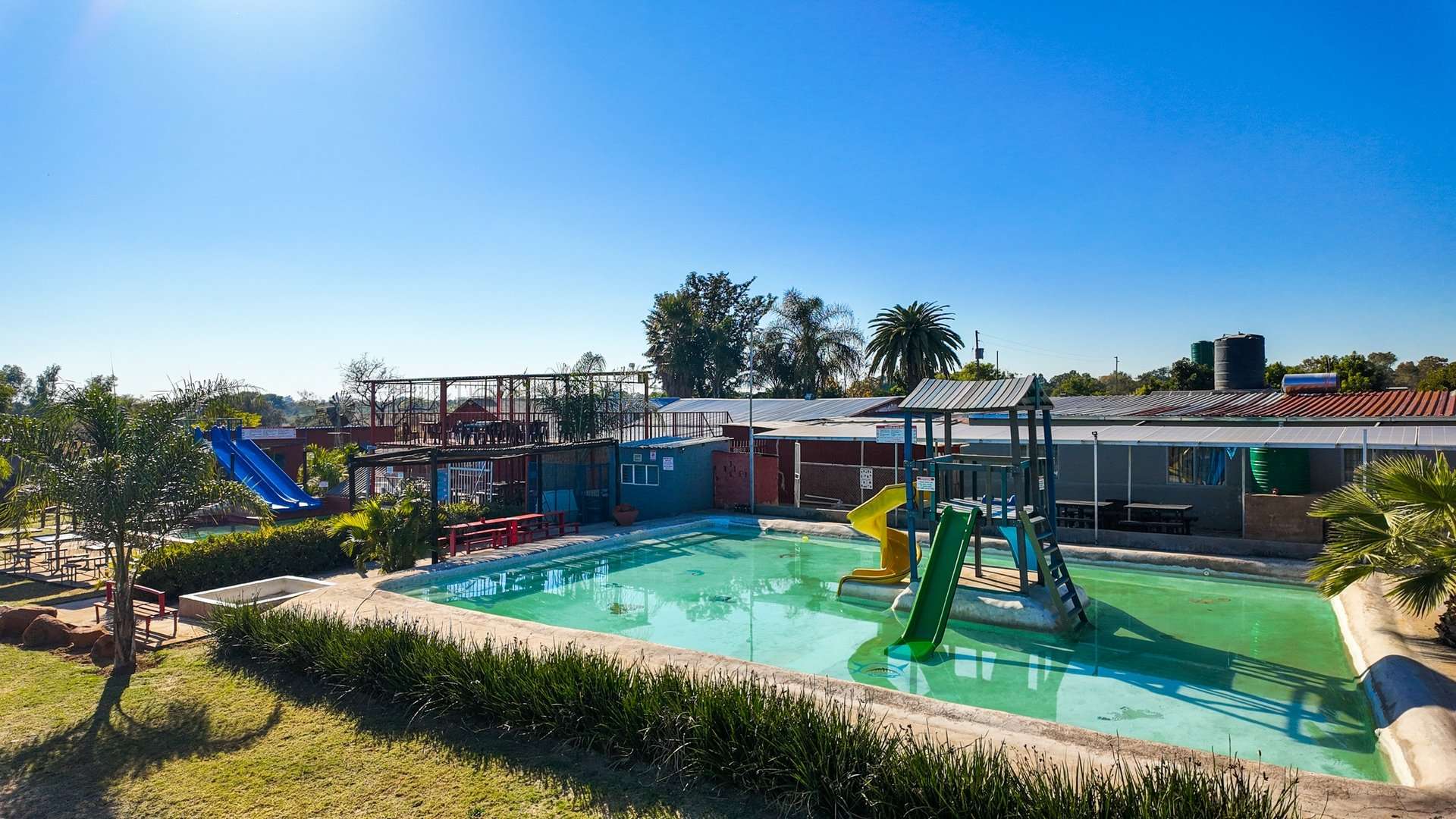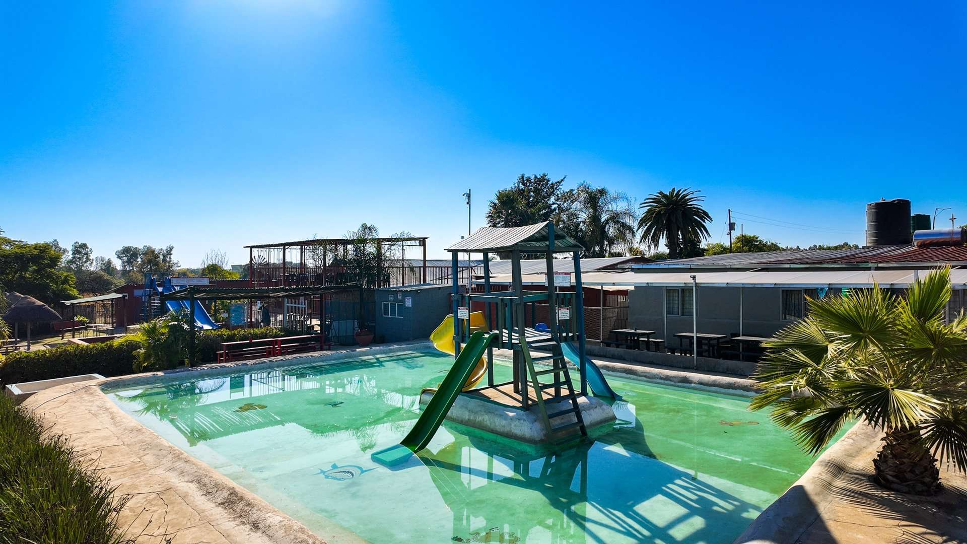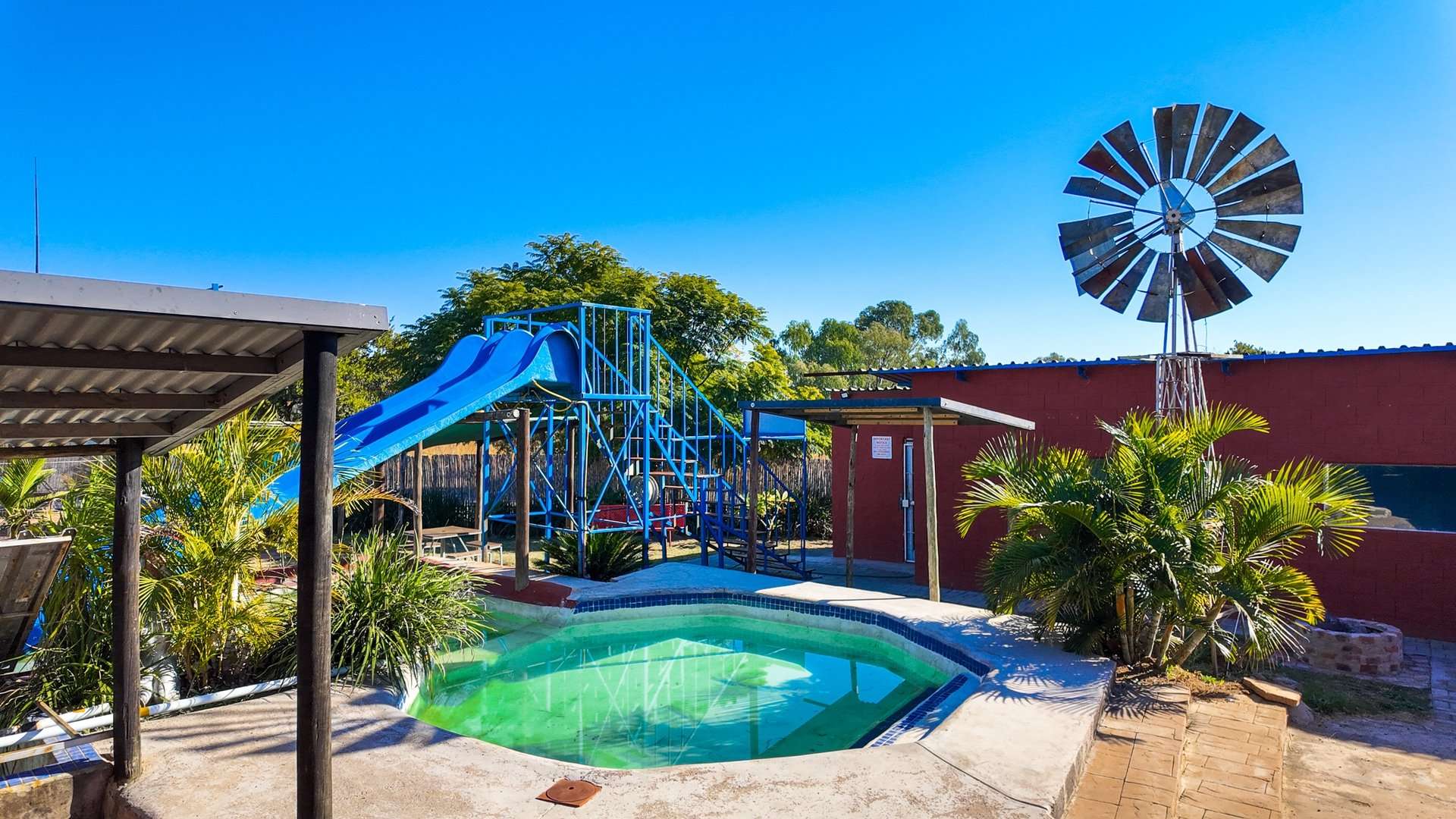 Besides a 4 bedroom and 3-bathroom house this property 10ha is mainly known for the water park entertainment area complete with swimming pools and water slides, a restaurant/pub/casino with the best pub lunches in the area. It also has single rooms as overnight facilities, apartments for additional rental income and a caravan park with permanent residents.