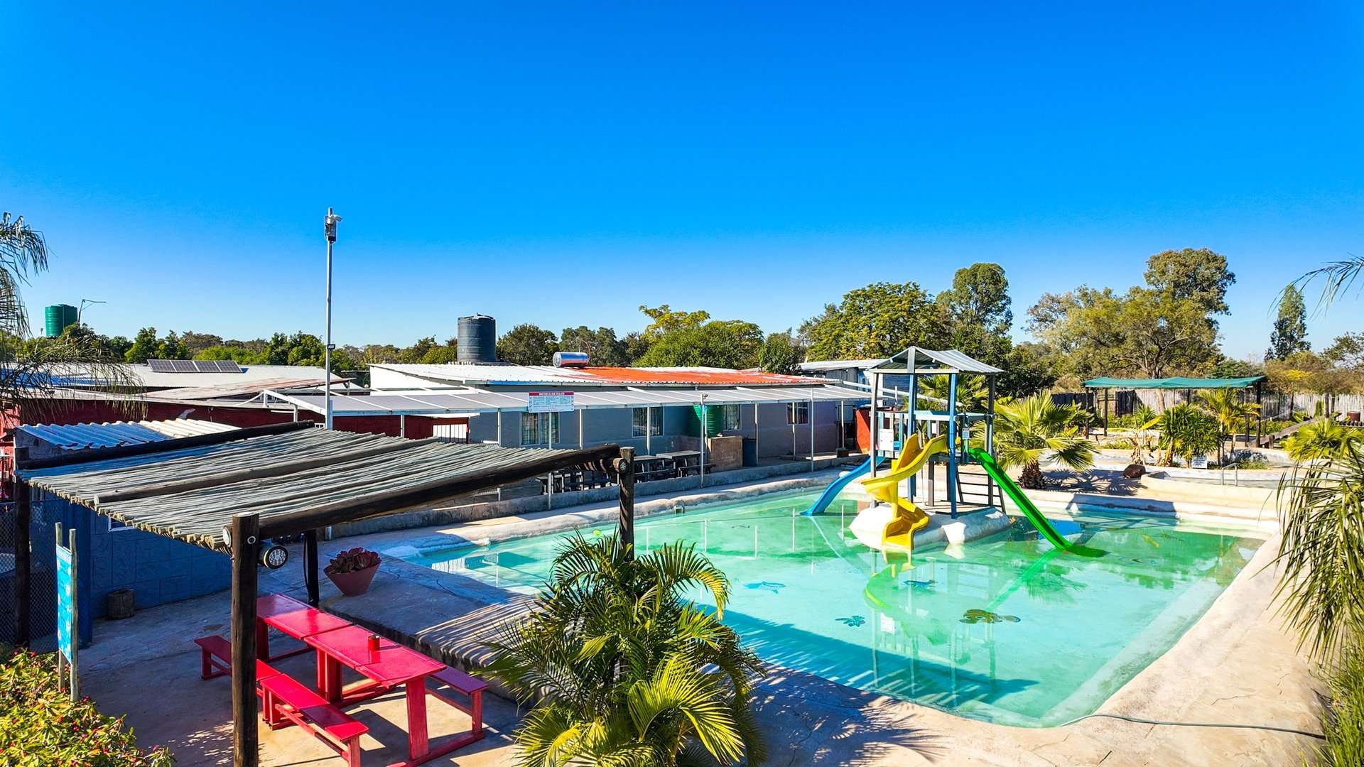 The entertainment opportunities on this property are endless as besides the water park it also has a quad track with lots of room to expand and a fully equipped gym and it is very popular with primary school groups in summer because of the water park and the refreshments provided by the restaurant.