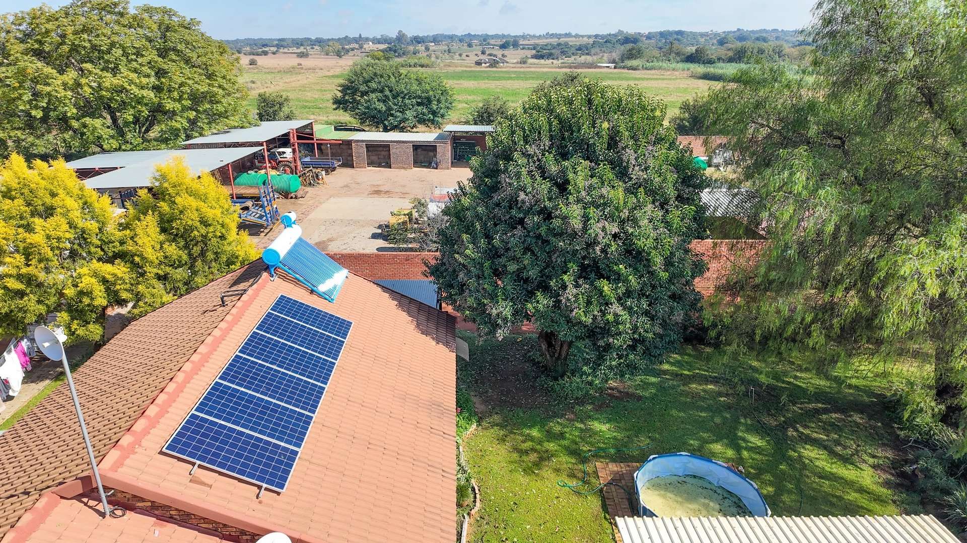 The farm is easy to access from the M35 Soutpan Road and the outbuildings and carports makes it ideal for any business that requires a lot of space, storage and workshops.