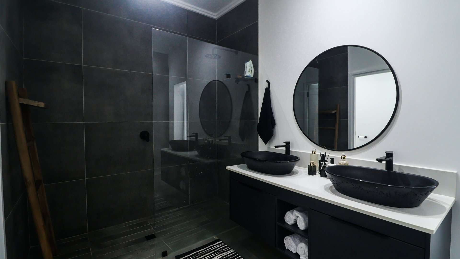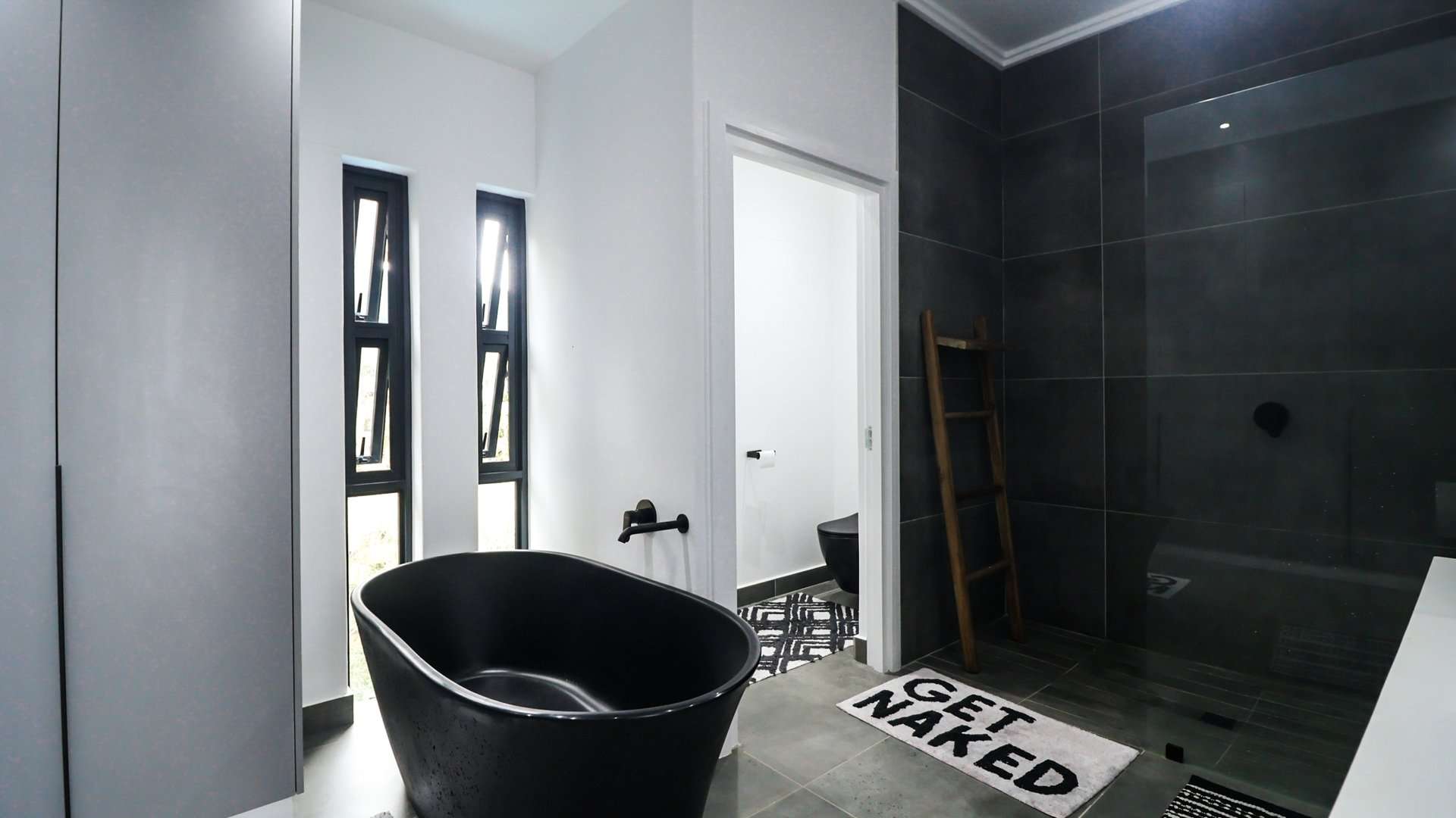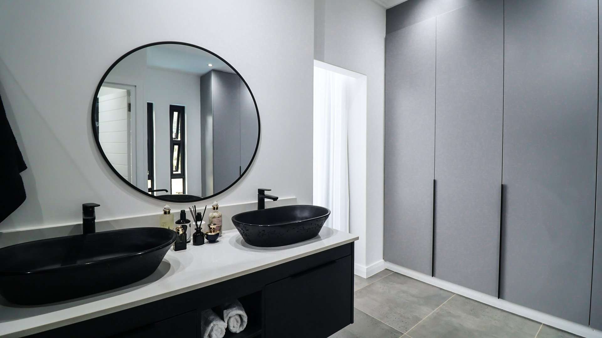 The **master bedroom** is a true retreat, offering a **black standalone tub** for the ultimate relaxation experience, along with a **his & her vanity** for added luxury.