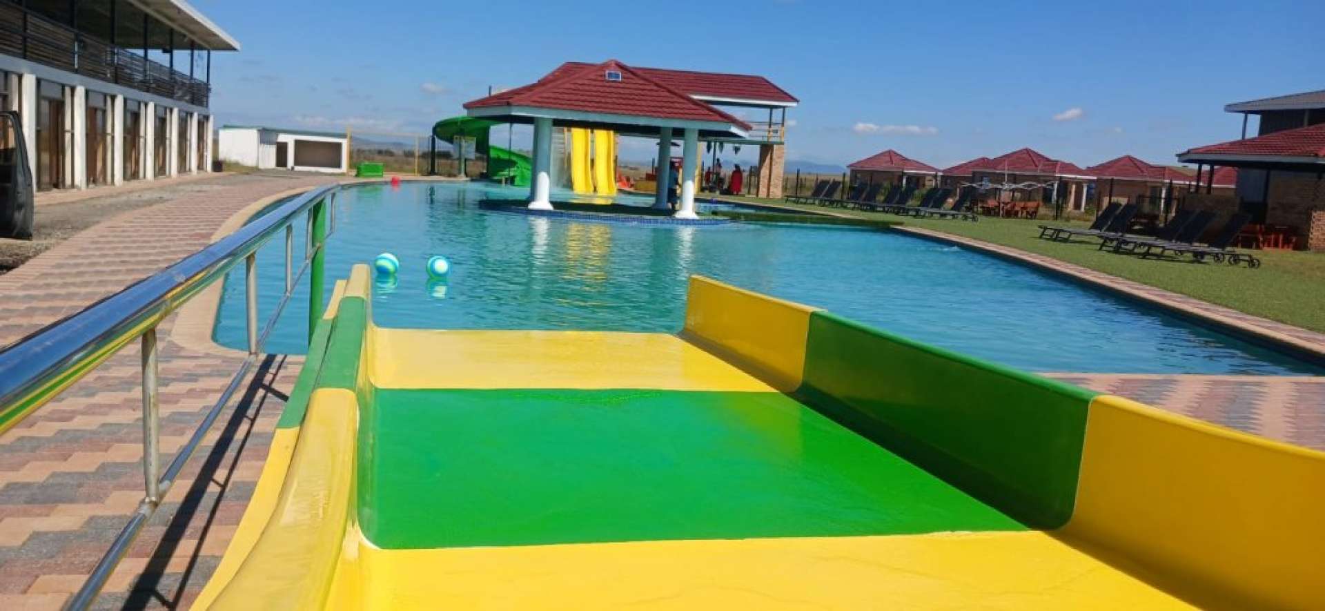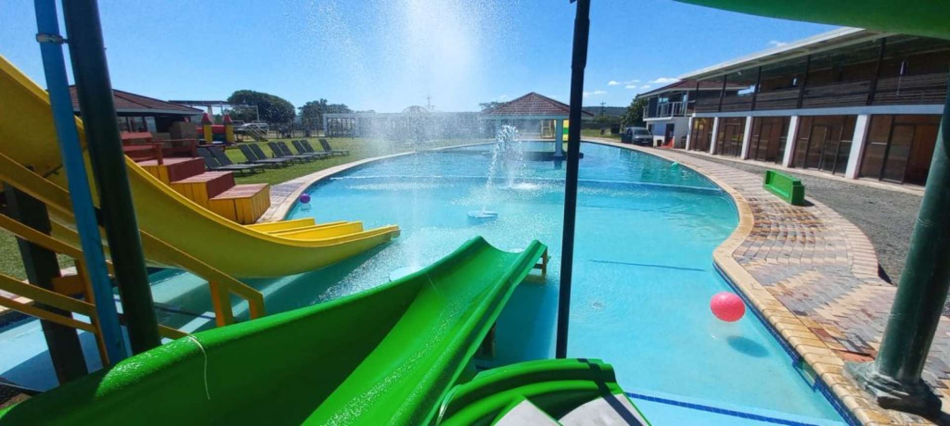 * Swimming pool with exciting water slides for all ages