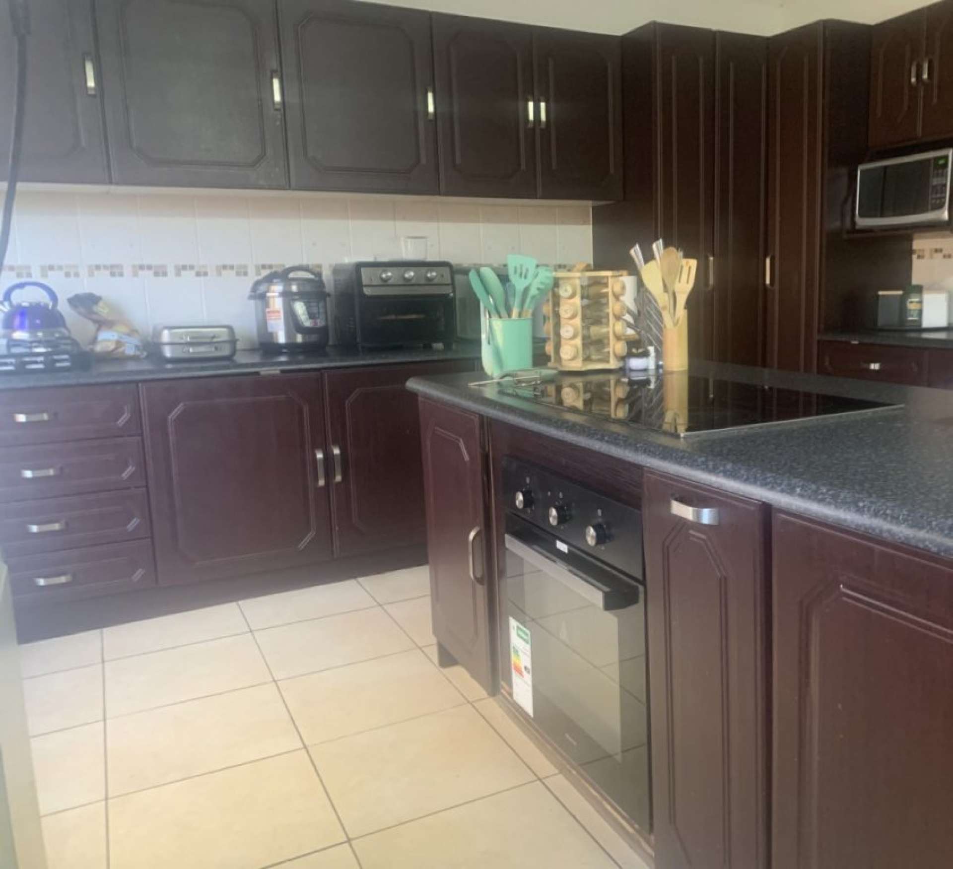 * Modern kitchen with built-in cupboards and ample workspace