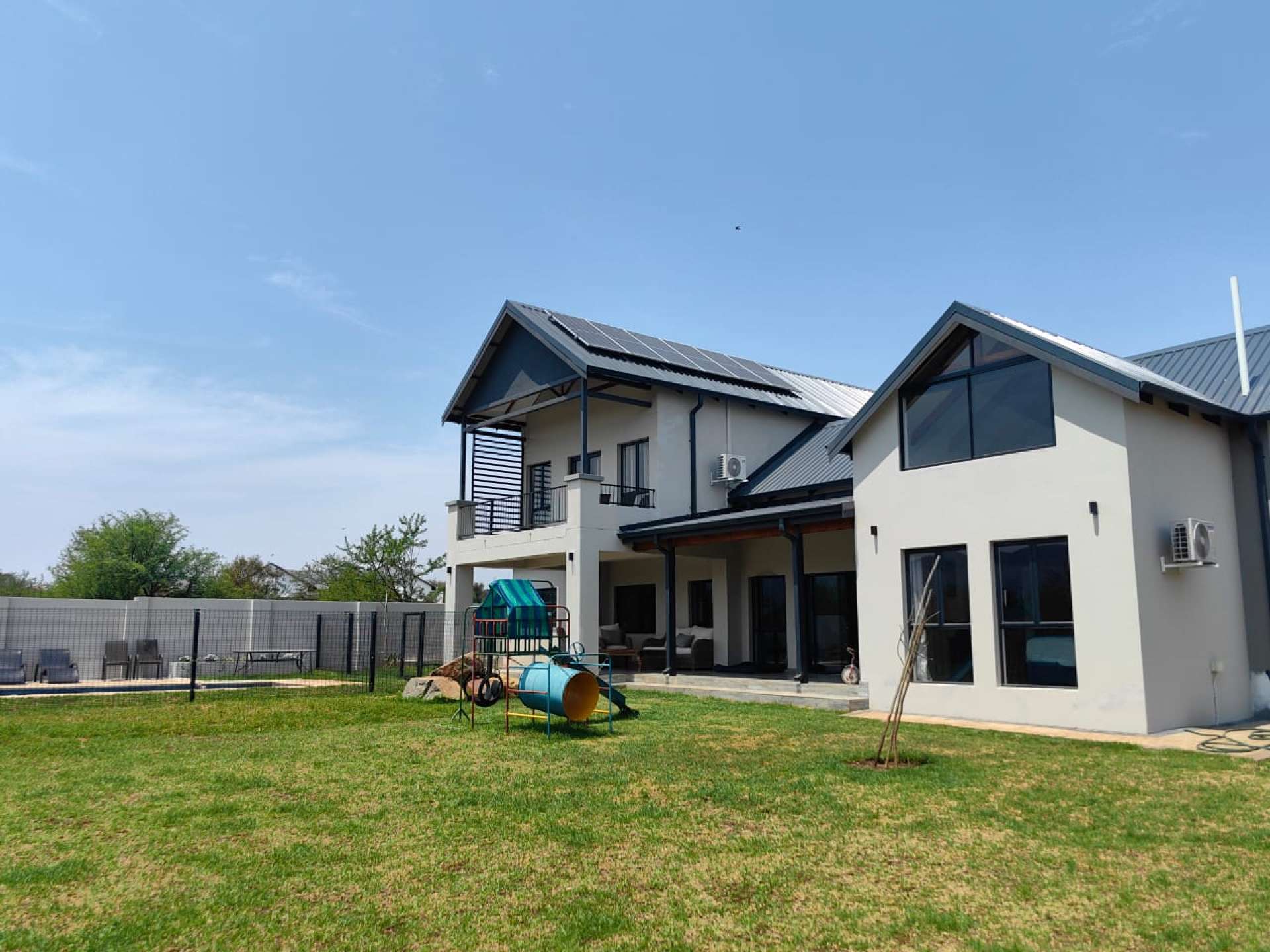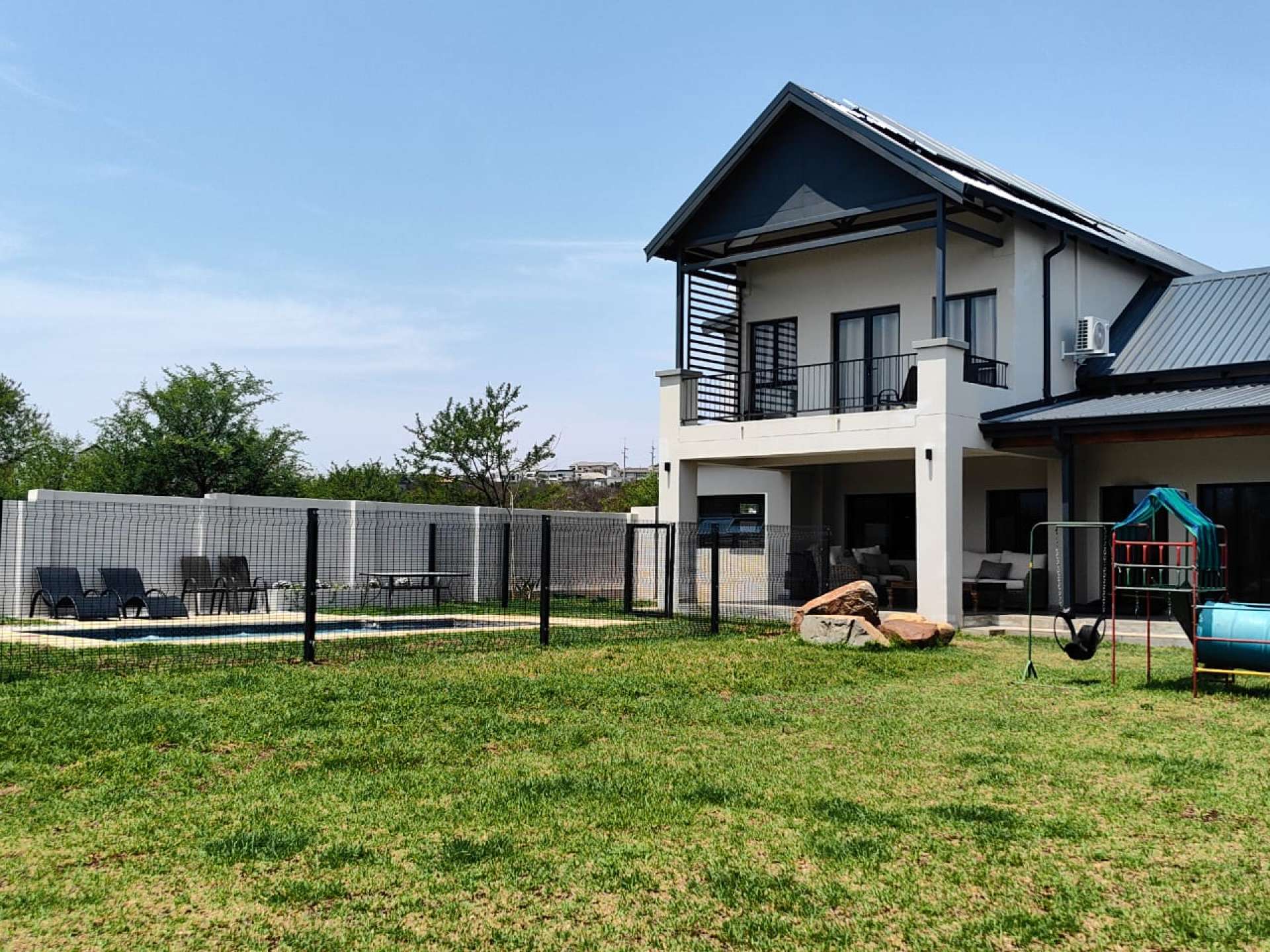 Step into this elegant and functional double-storey home, designed for modern family living. The inviting covered patio with a built-in grid braai is perfect for entertaining friends and family, while the spacious garden features a fenced swimming pool and beautiful northern mountain views.