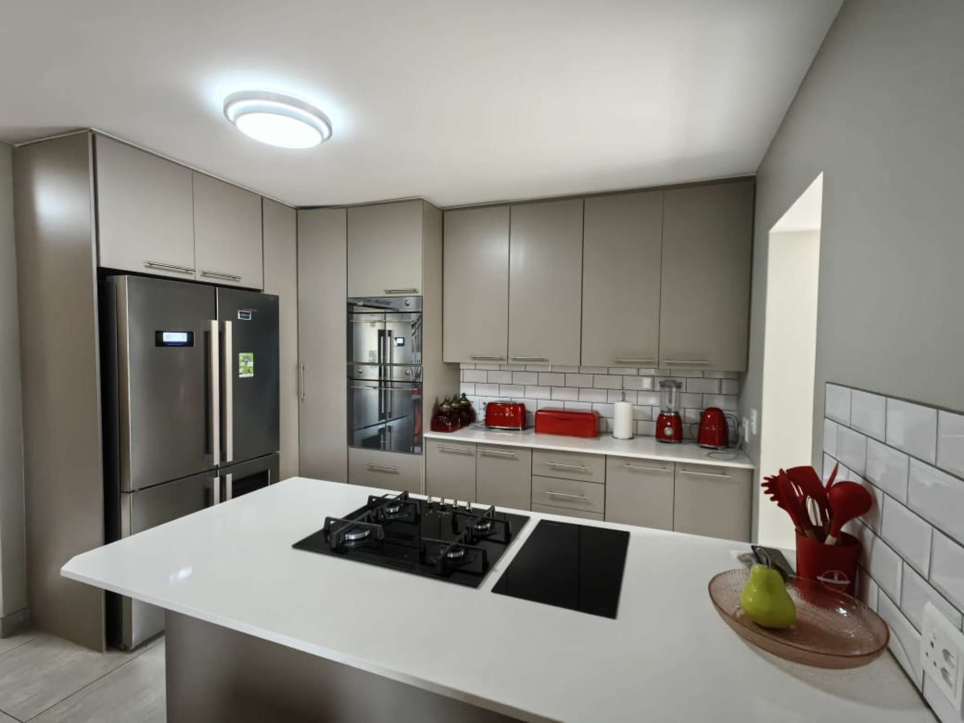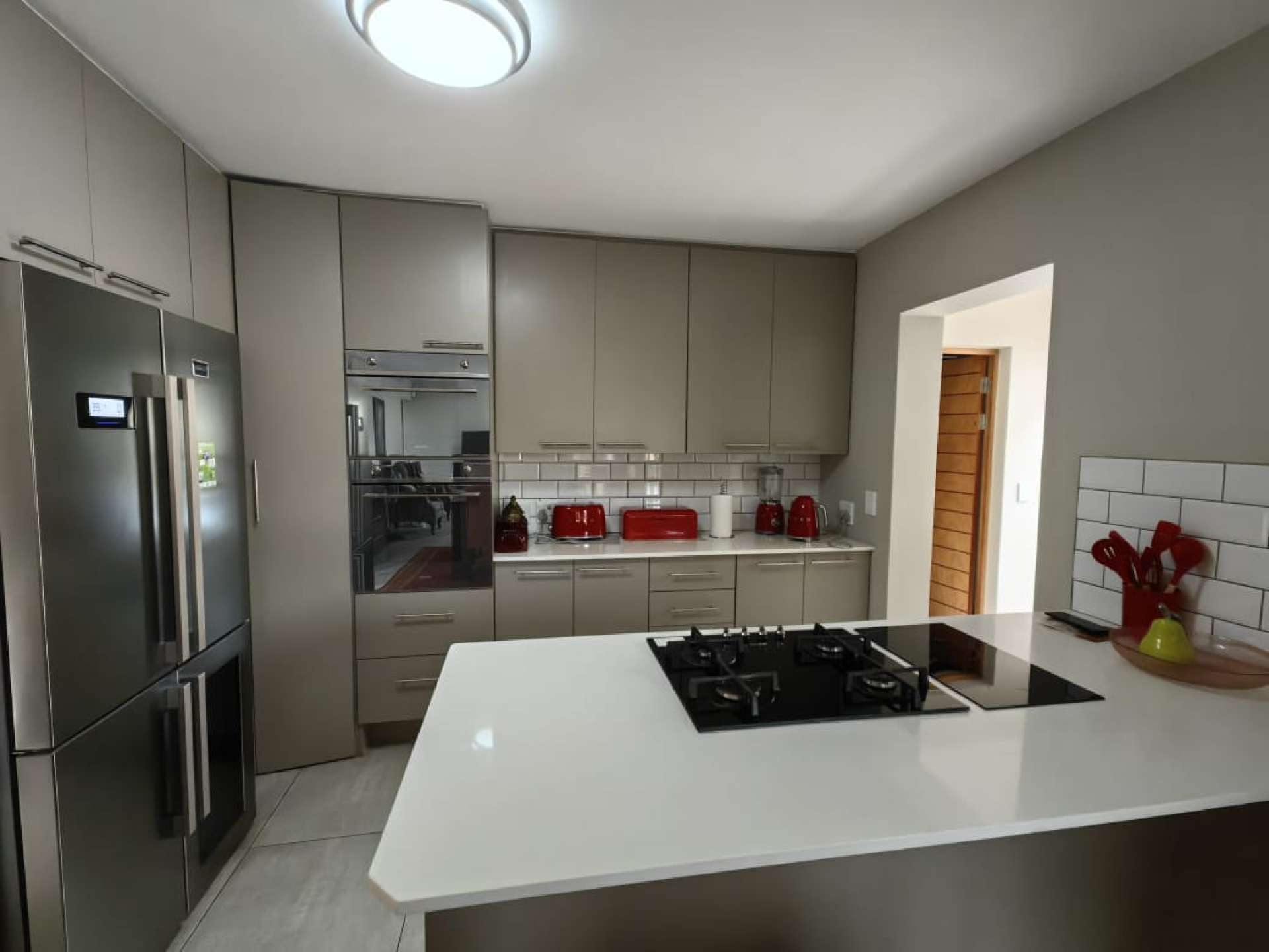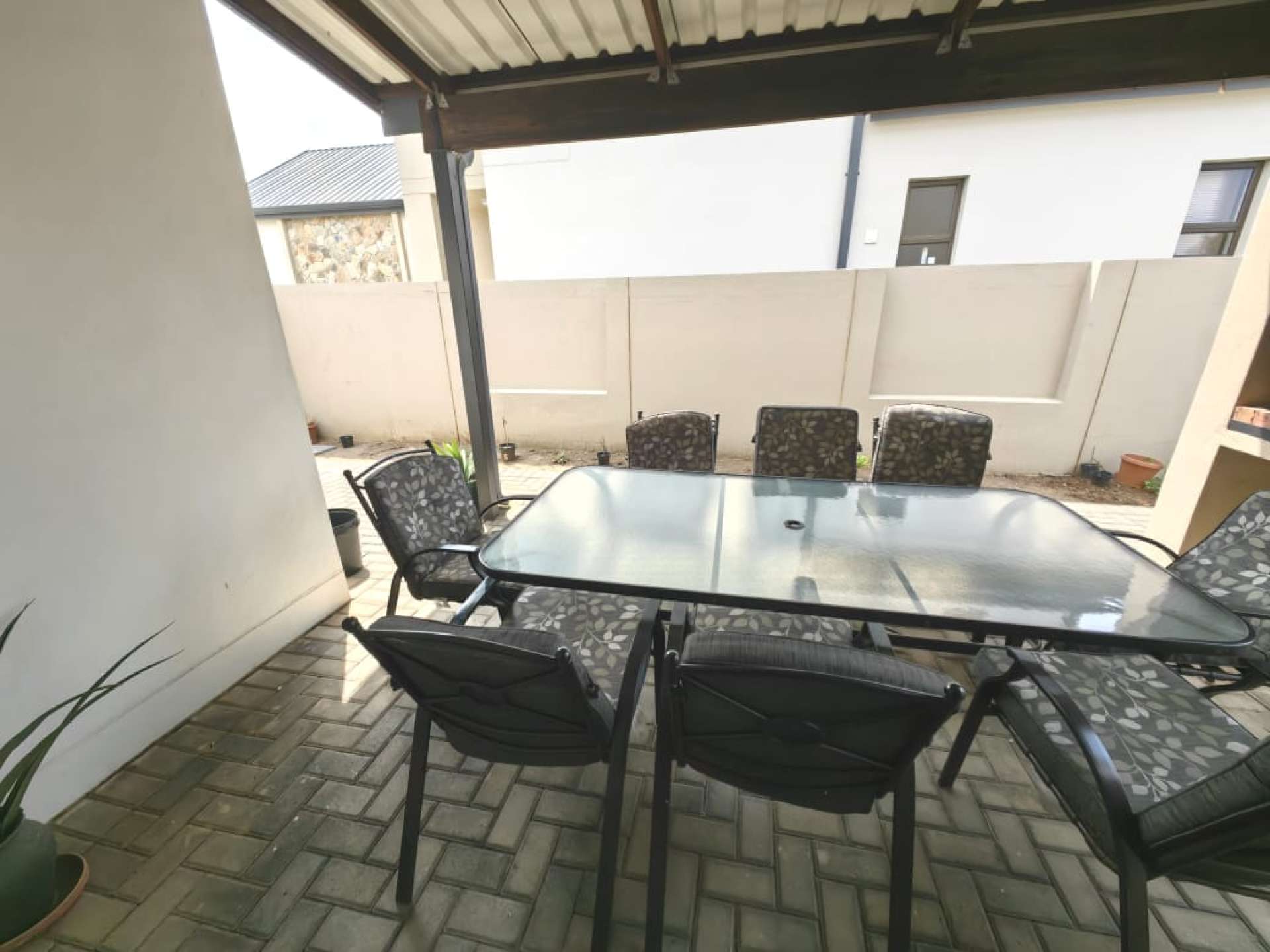 Entertain with ease on the covered patio featuring a built-in grid braai, ideal for family gatherings and memorable barbecues. Inside, the contemporary kitchen is fitted with sleek built-in cupboards, a gas and induction stove, and a separate scullery, while the open-plan lounge and dining area includes a gas fireplace and aluminium sliding doors that open onto the patio and private garden.