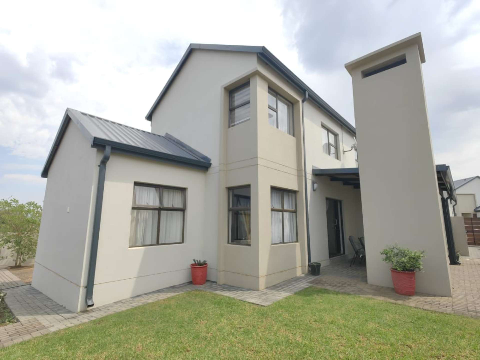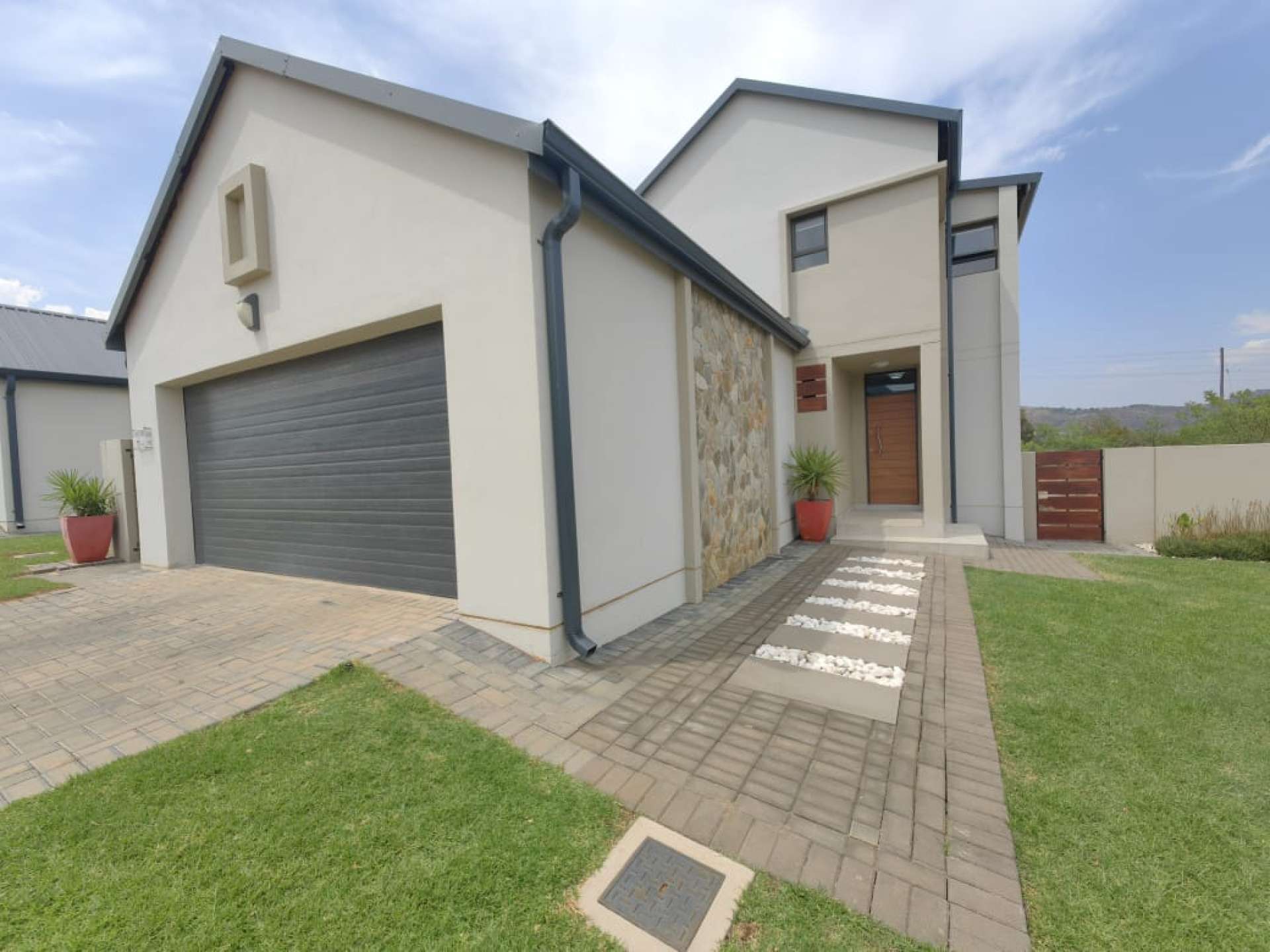 Residents enjoy a host of premium amenities, including a borehole, solar system for energy efficiency, swimming pool, and beautifully landscaped parks perfect for children. Parking includes a double garage and two additional open spaces, with occupation available upon registration.