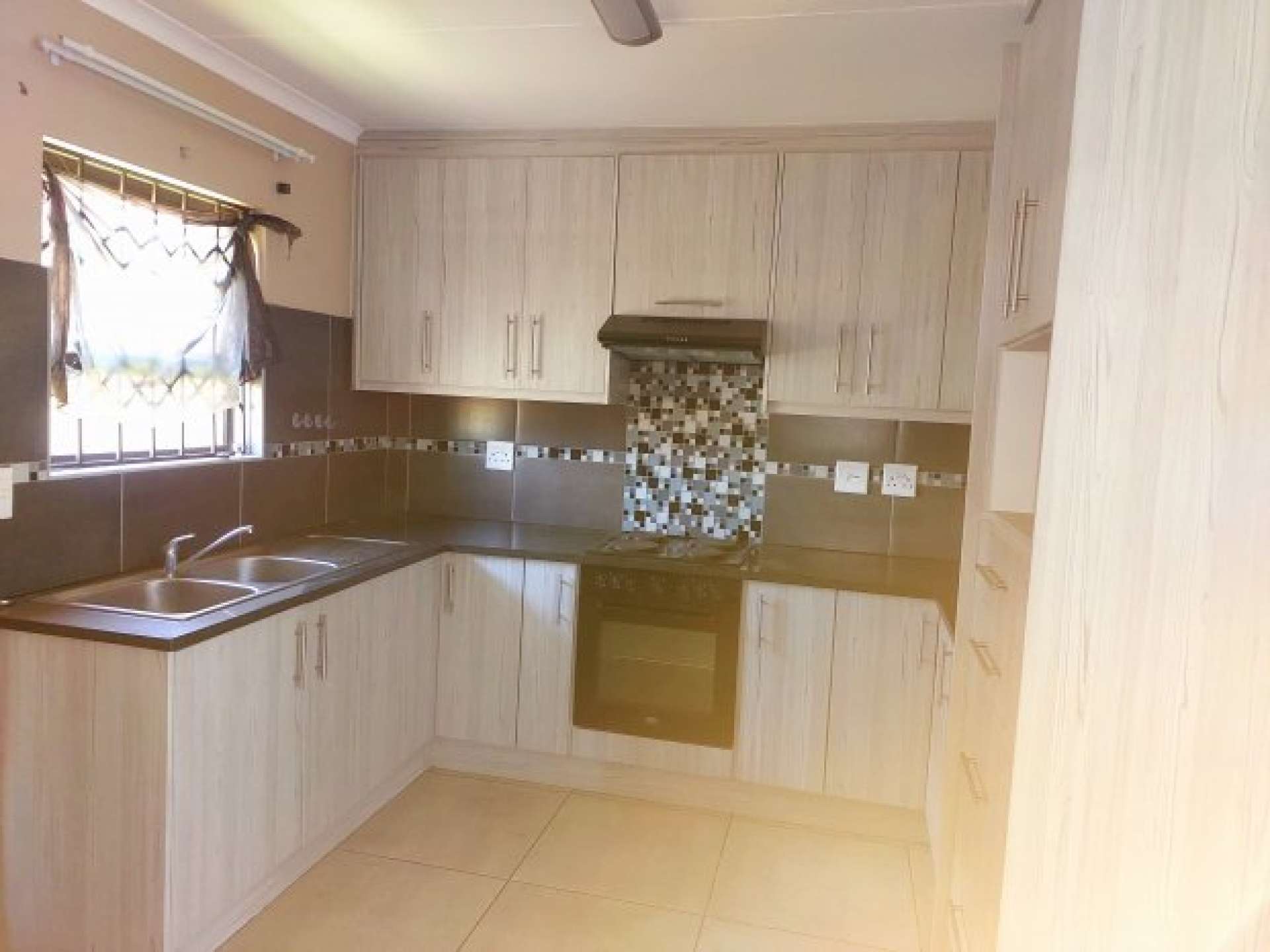 - Beautiful kitchen with ample built-in cupboards, stove, hob, and oven