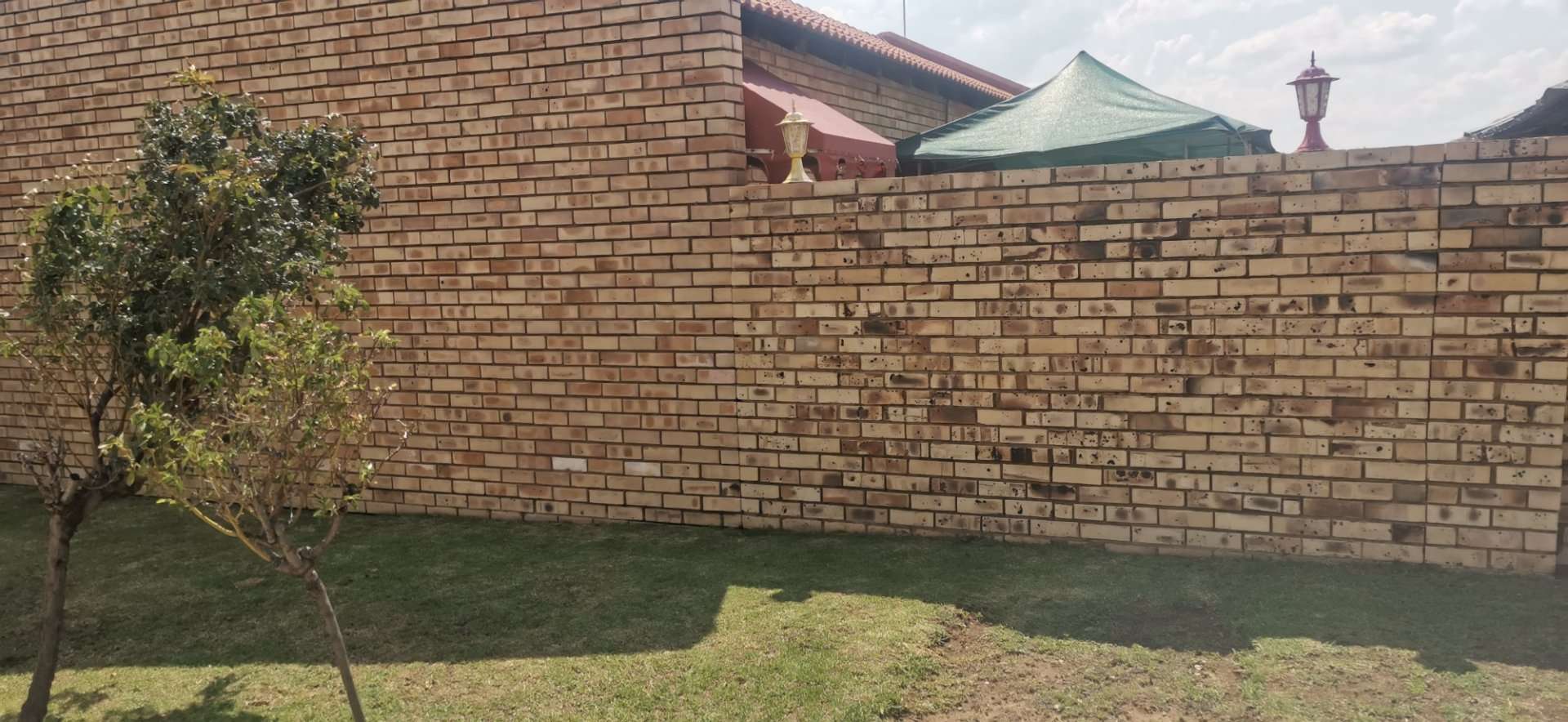 The surrounding wall ensures privacy and security, while the electric gate, fence, and garage door provide added convenience and safety.