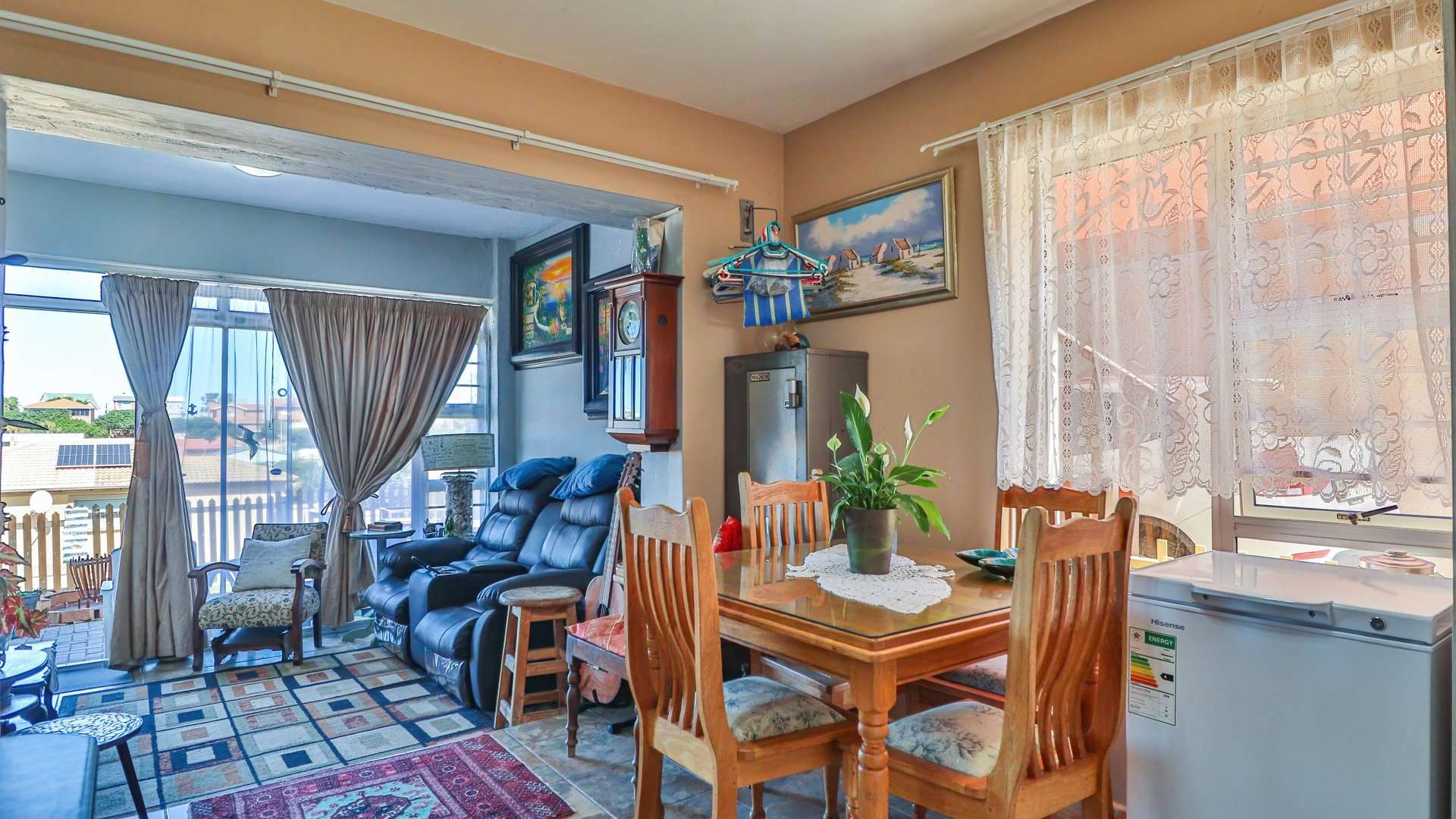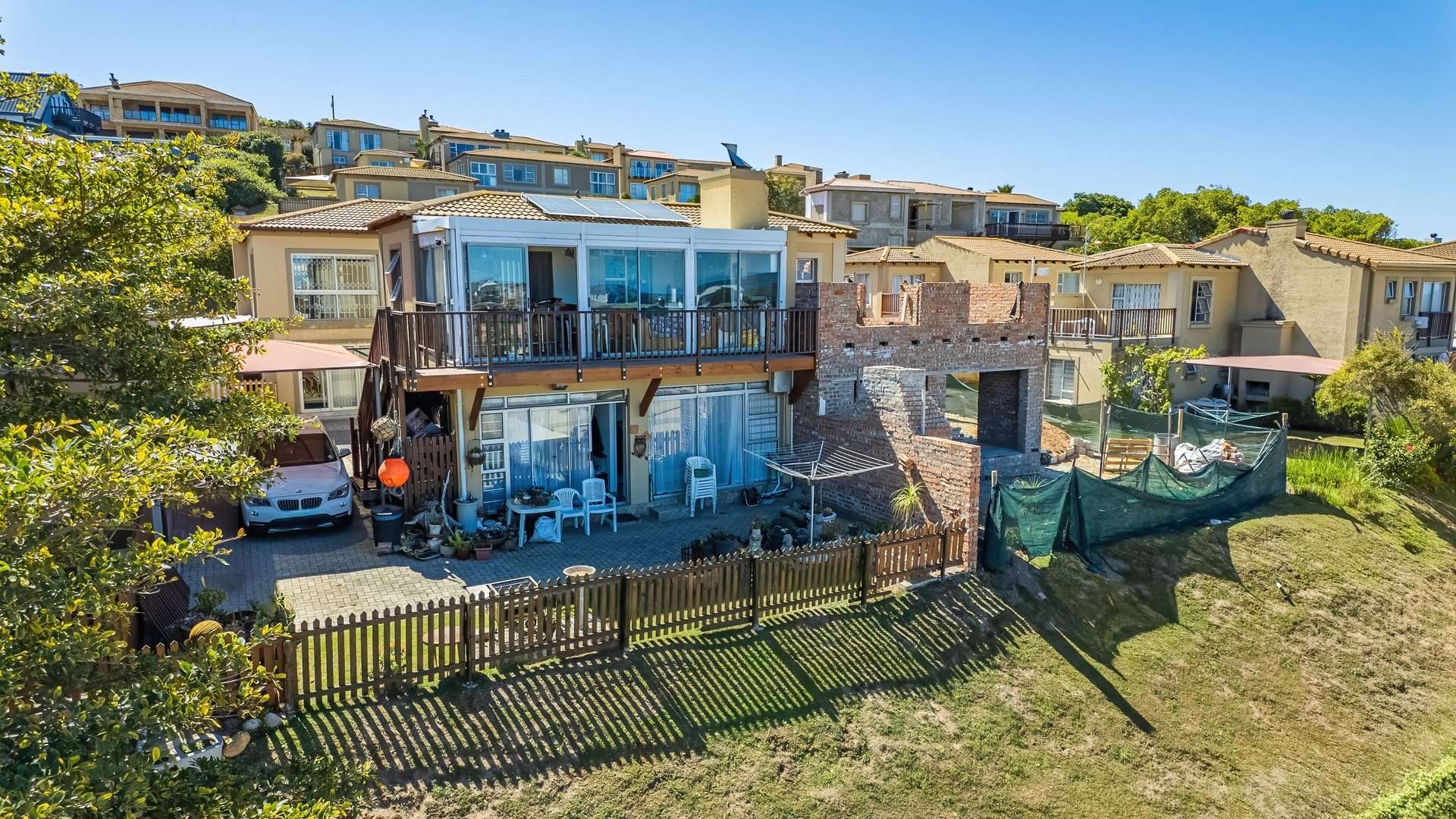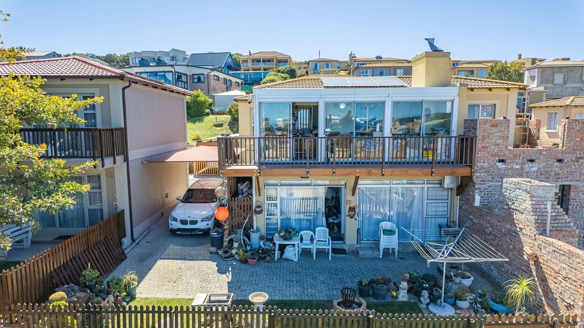 Enjoy seamless indoor-outdoor living on the covered patio with a built-in braai, the perfect spot to entertain or unwind while taking in stunning ocean views. The home also includes 2 covered carports, a private pet-friendly garden (no cats), and solar backup power for added assurance.