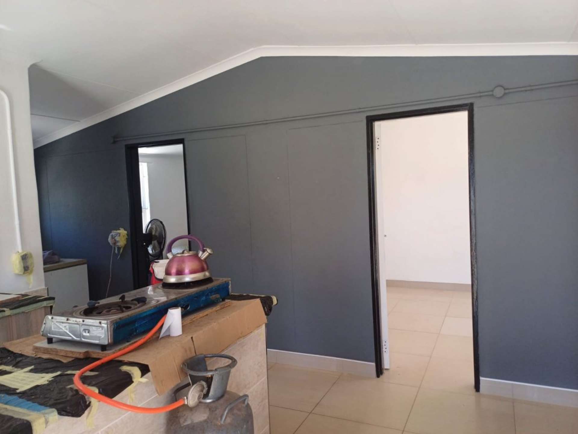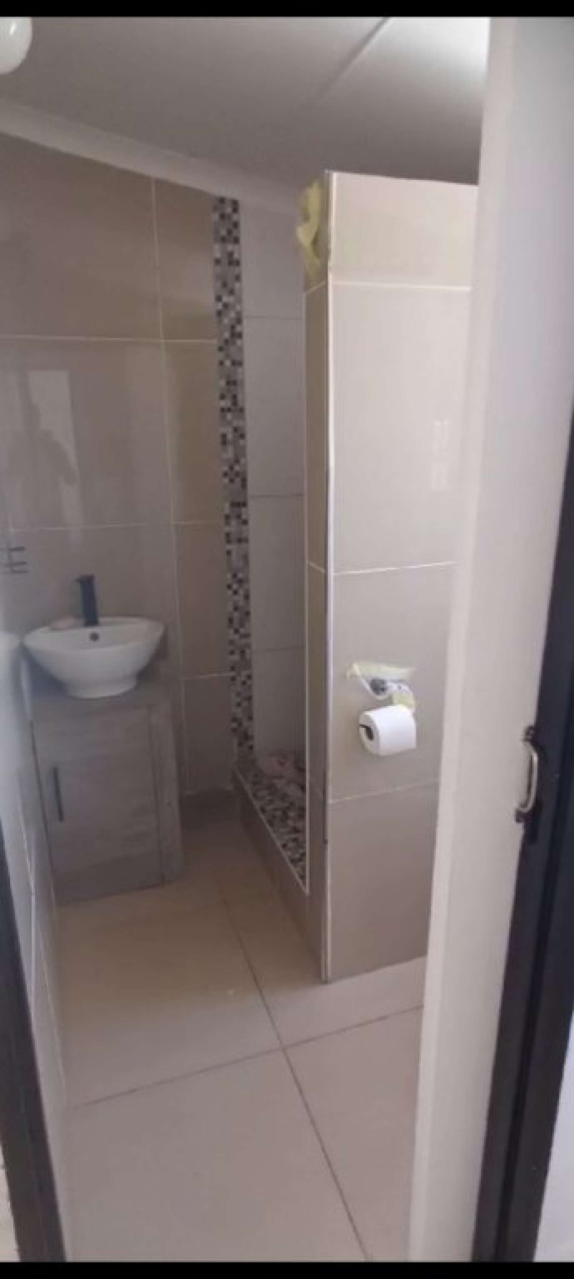The kitchen is both practical and cozy, fitted with built-in cupboards and space for a gas stove and cylinder. An instant geyser is connected to the shower and kitchen, providing hot water efficiently and helping you save on energy costs.