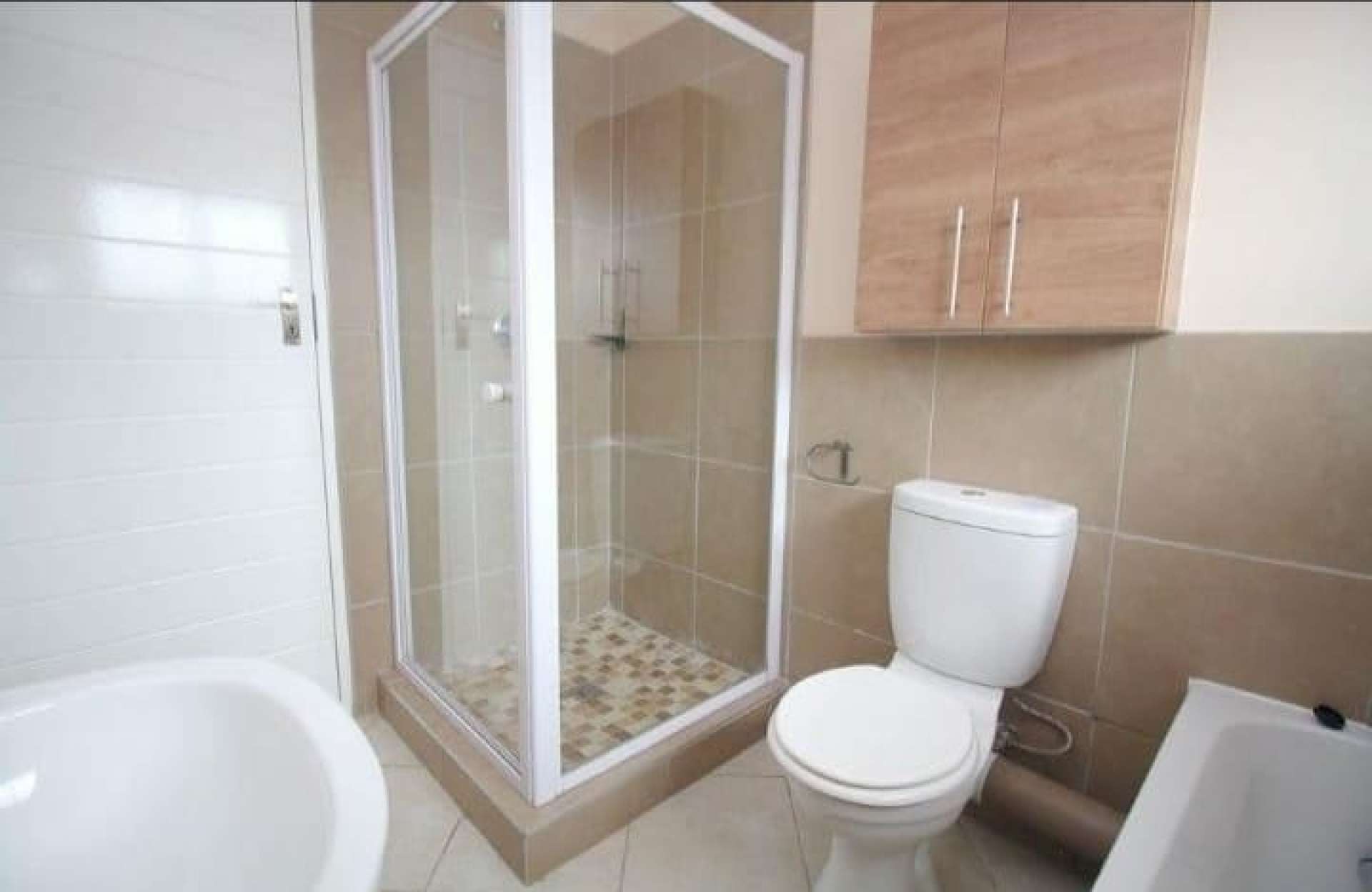 This 1st floor apartment offers 2 spacious bedrooms, fully tiled with built-in cupboards.