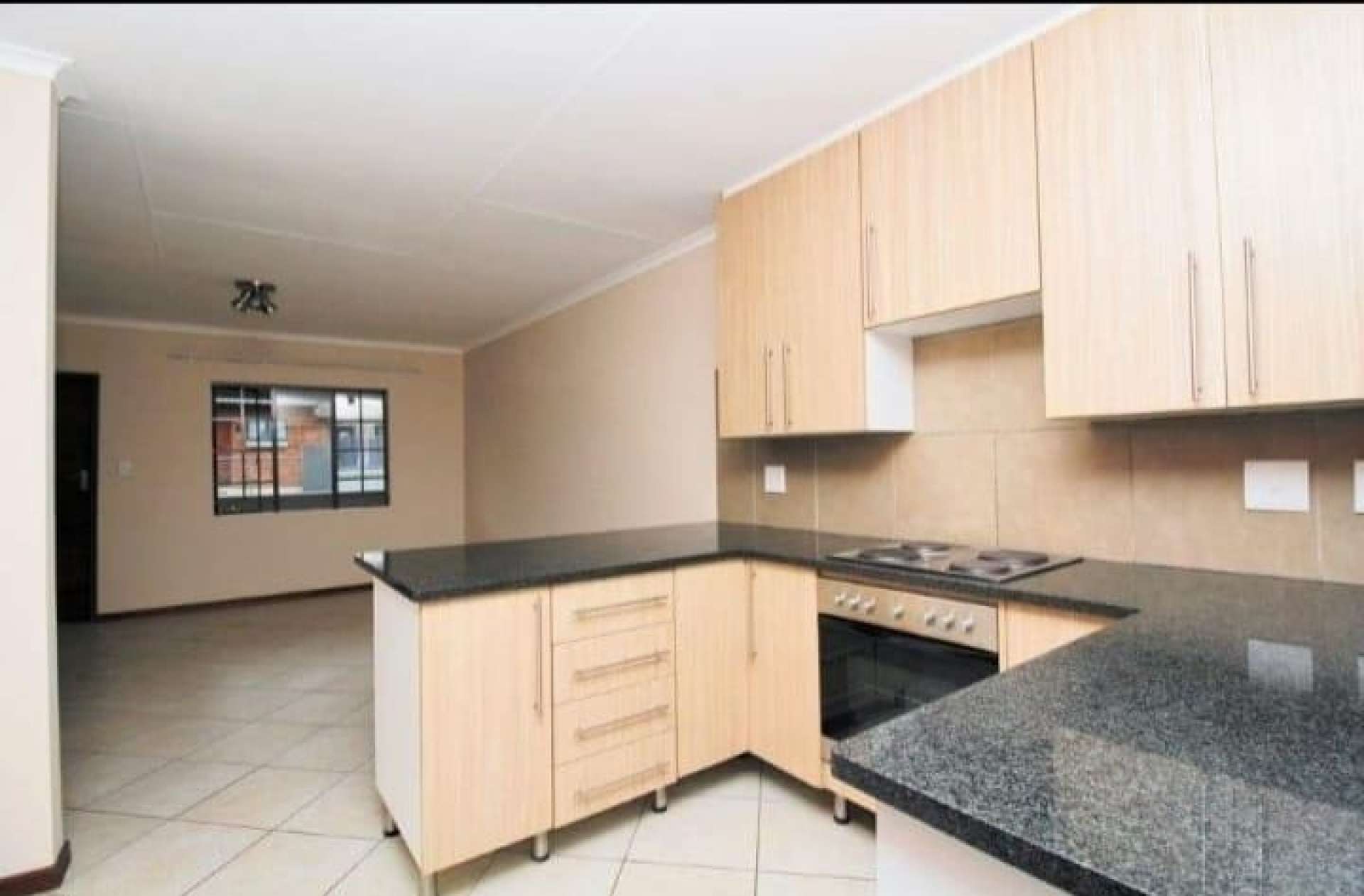 The kitchen and living area are open plan, with the kitchen having plenty of cupboard space, 2 appliance spaces (dishwasher and washing machine) as well as a breakfast nook. The living area is rather spacious and opens to the balcony.