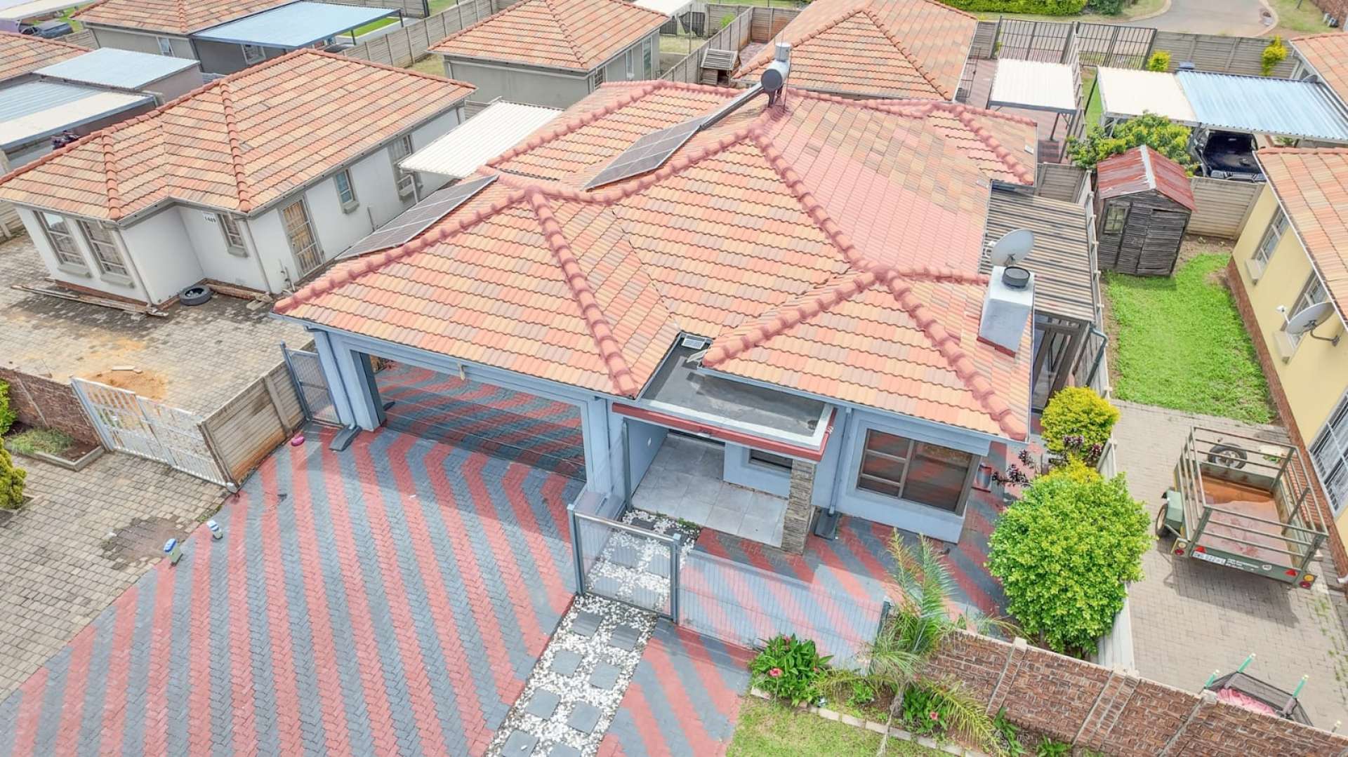 A double garage provides secure parking and additional storage, adding to the home’s practicality.