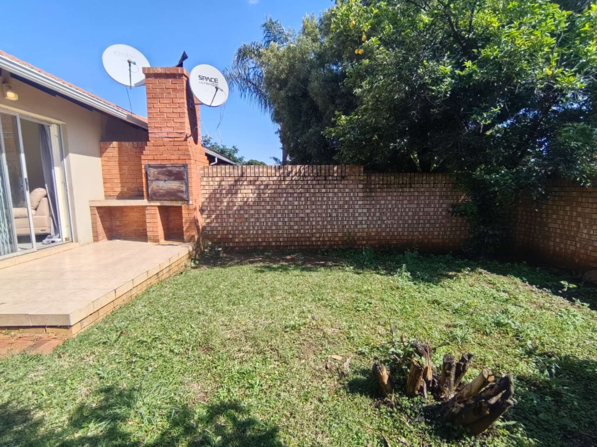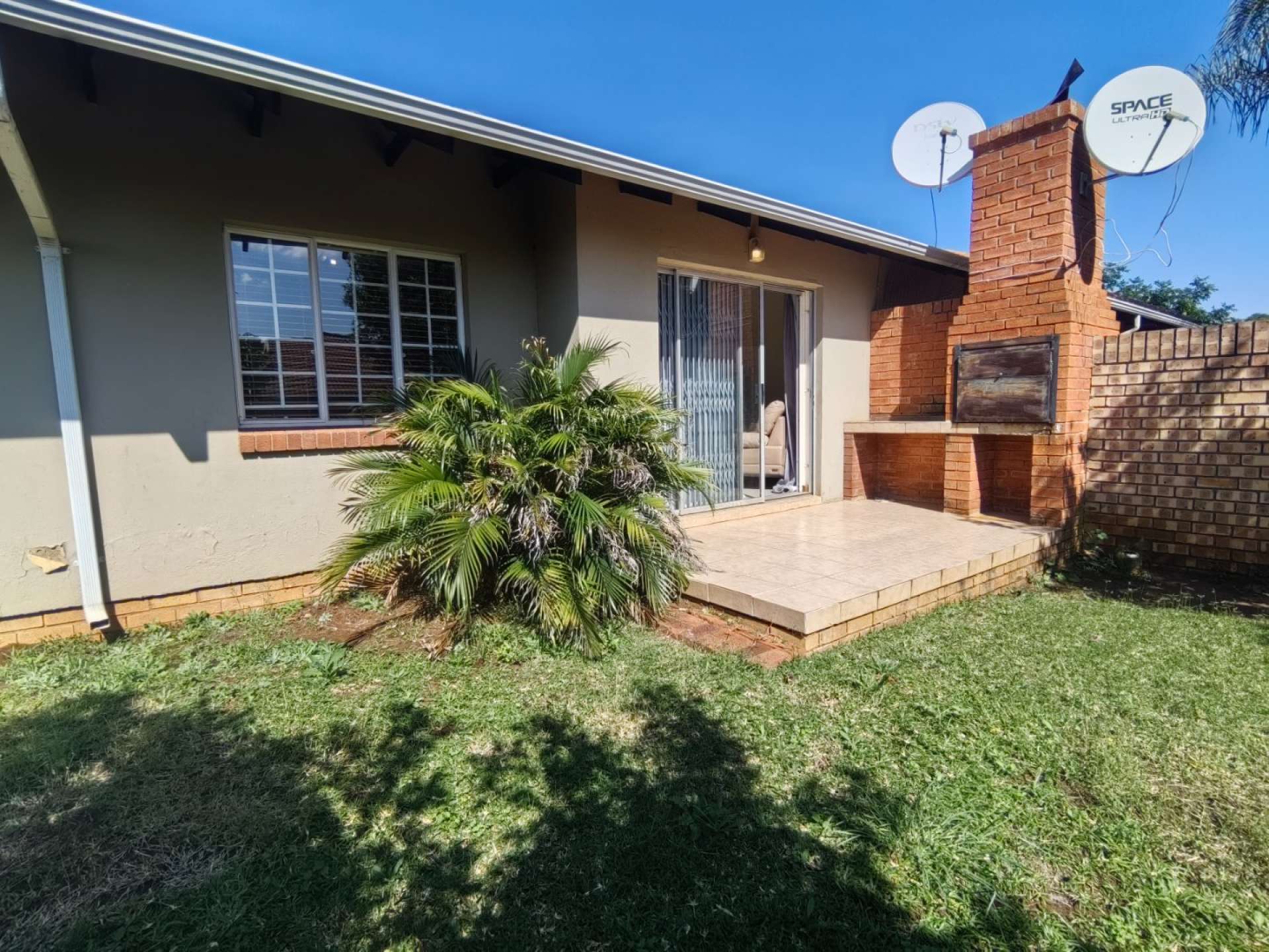 For entertainment, there's a patio at the back with a built-in braai and enough garden to entertain guests or for kids to play.