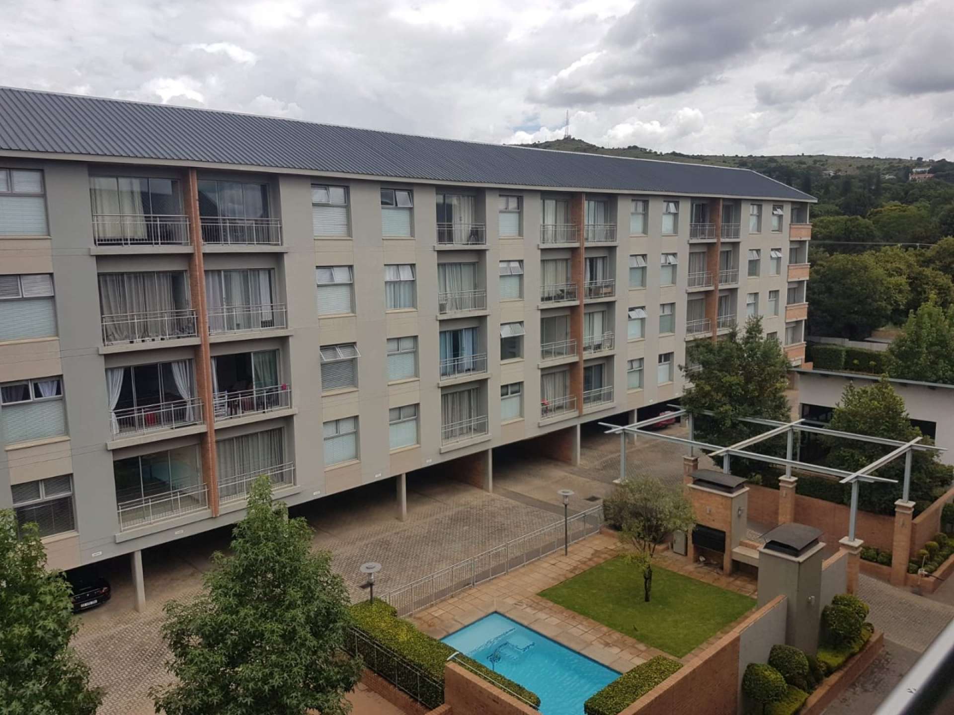 This unit is well situated in New Muckleneuk, close to the universities and the complex has a gym, swimming pool, built-in braais at the pool and close to Brooklyn Mall, Groenkloof