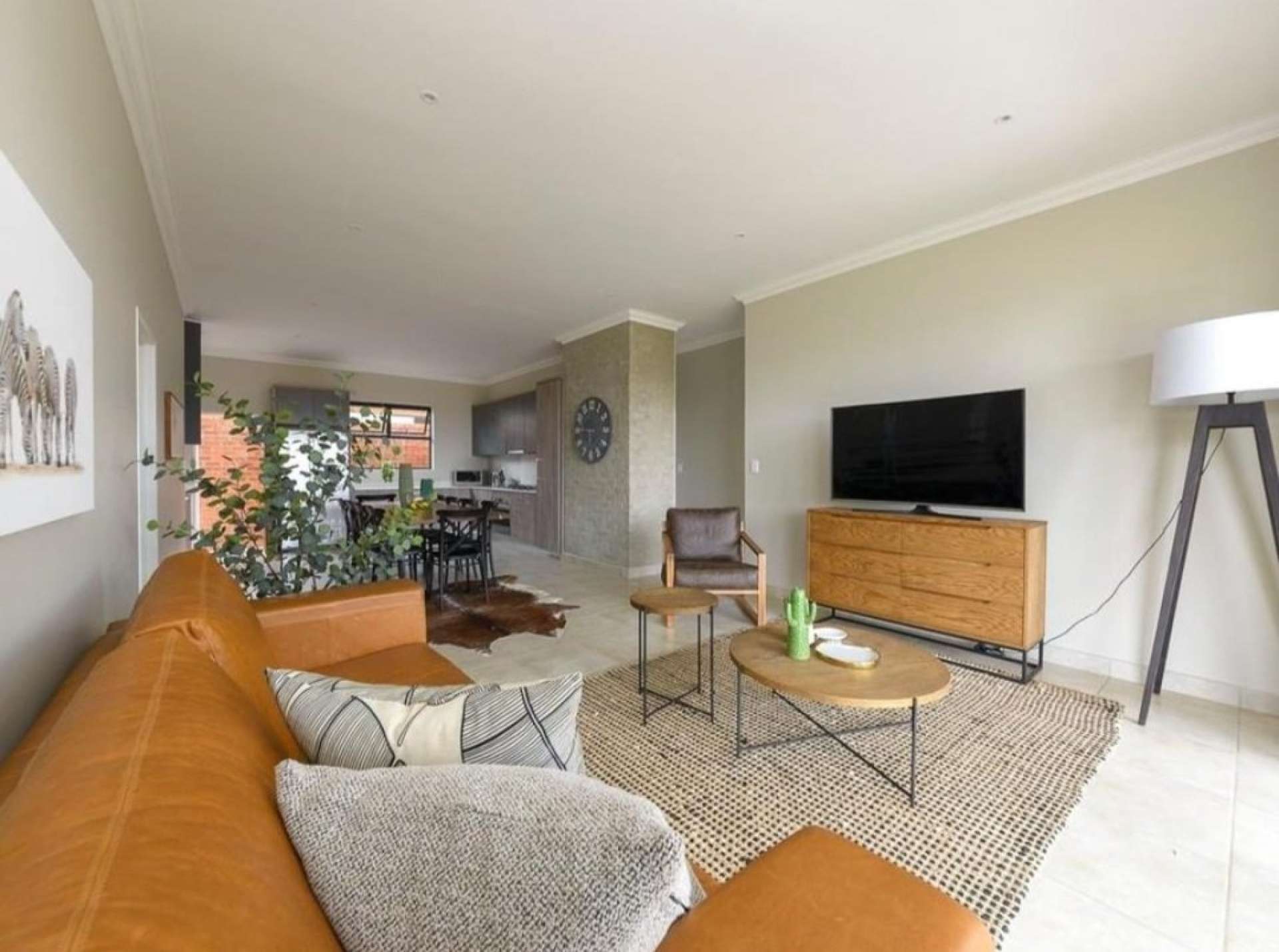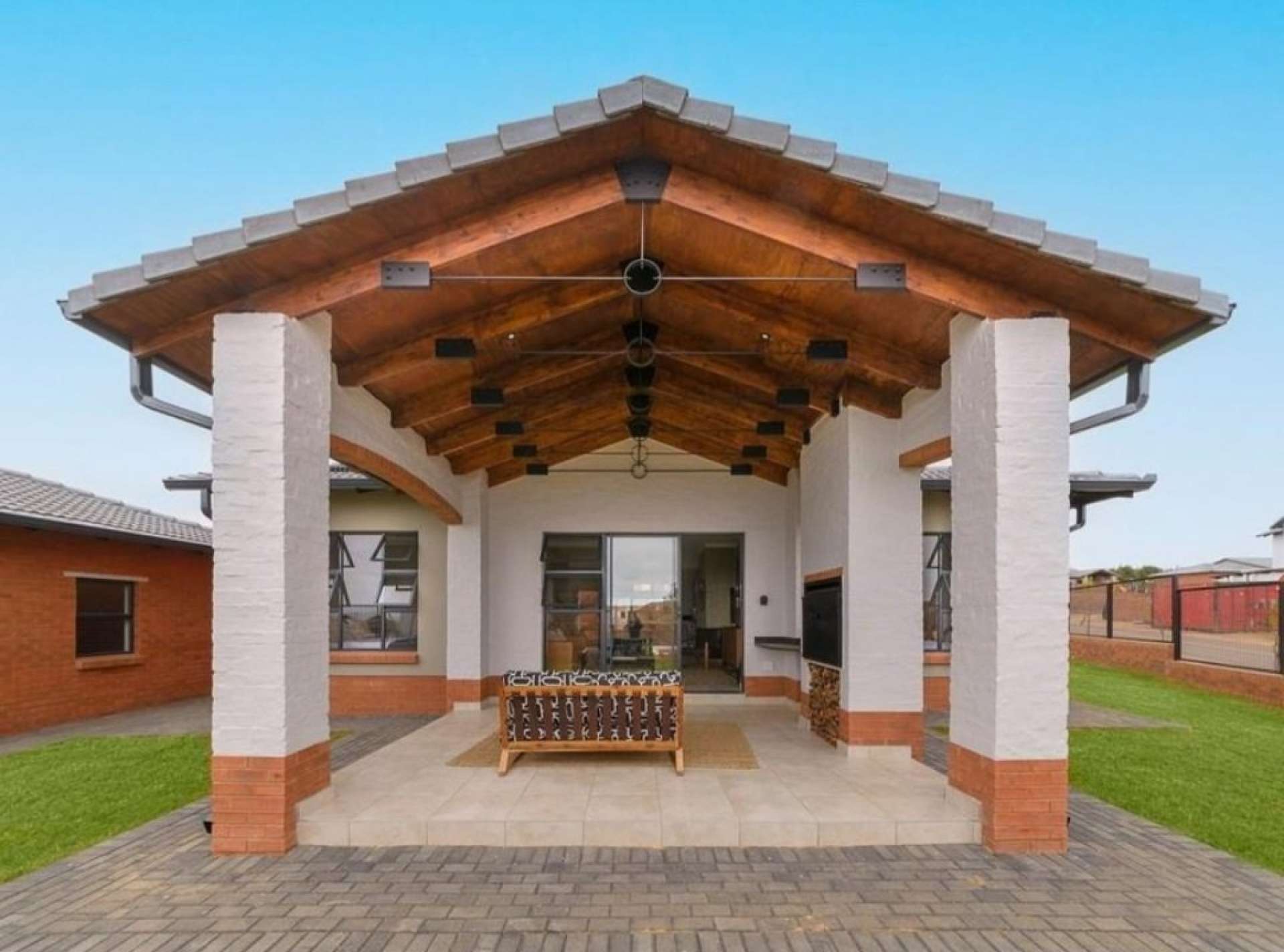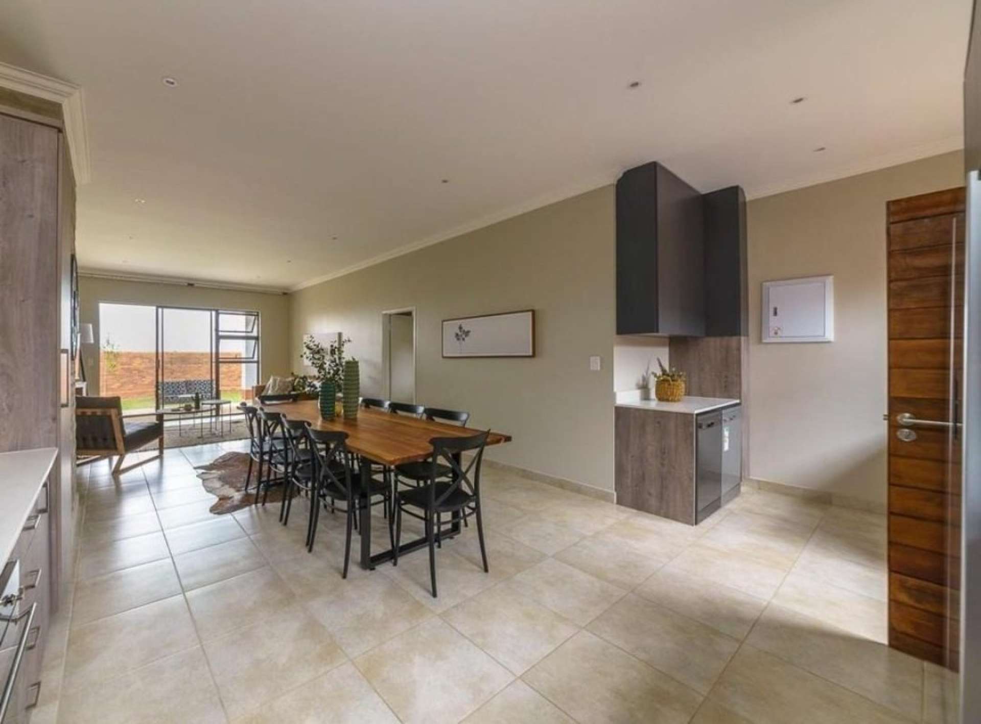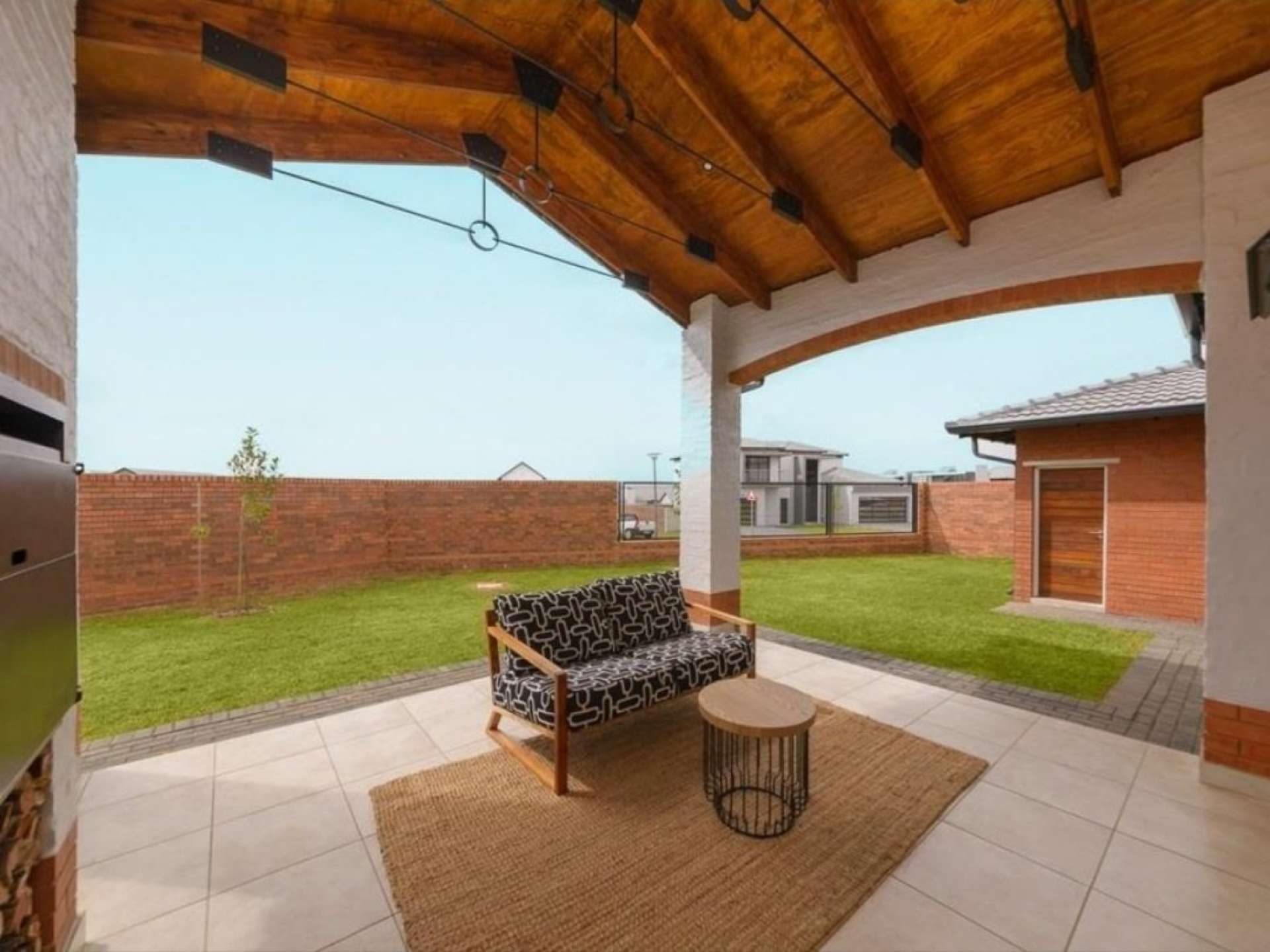 - A generously proportioned open-plan lounge and dining room that seamlessly extends to a spacious patio area, complete with a built-in braai, providing the ideal setting for relaxation and stylish entertaining.