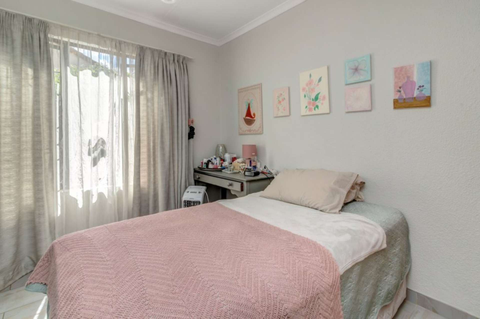Two sunny bedrooms: spare comfortably fits a double, and the main fits a king.