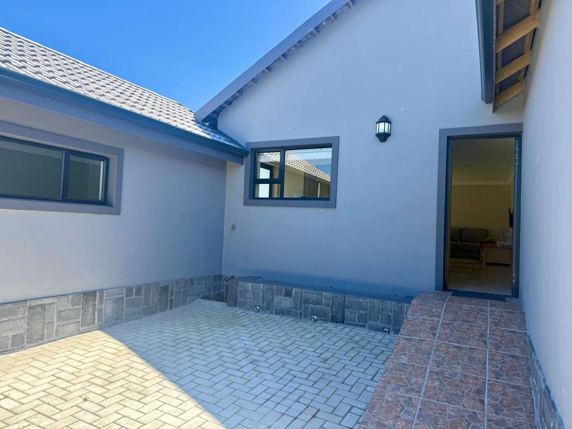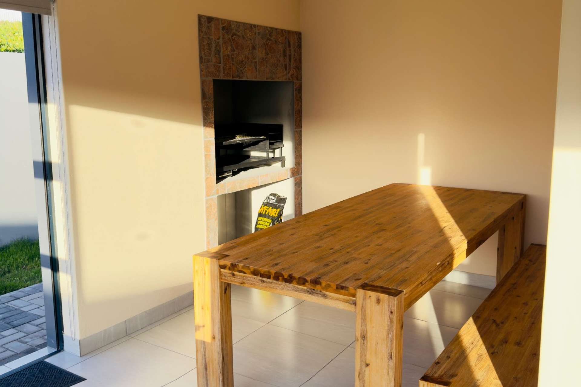 Enclosed entertainment area with built-in braai
